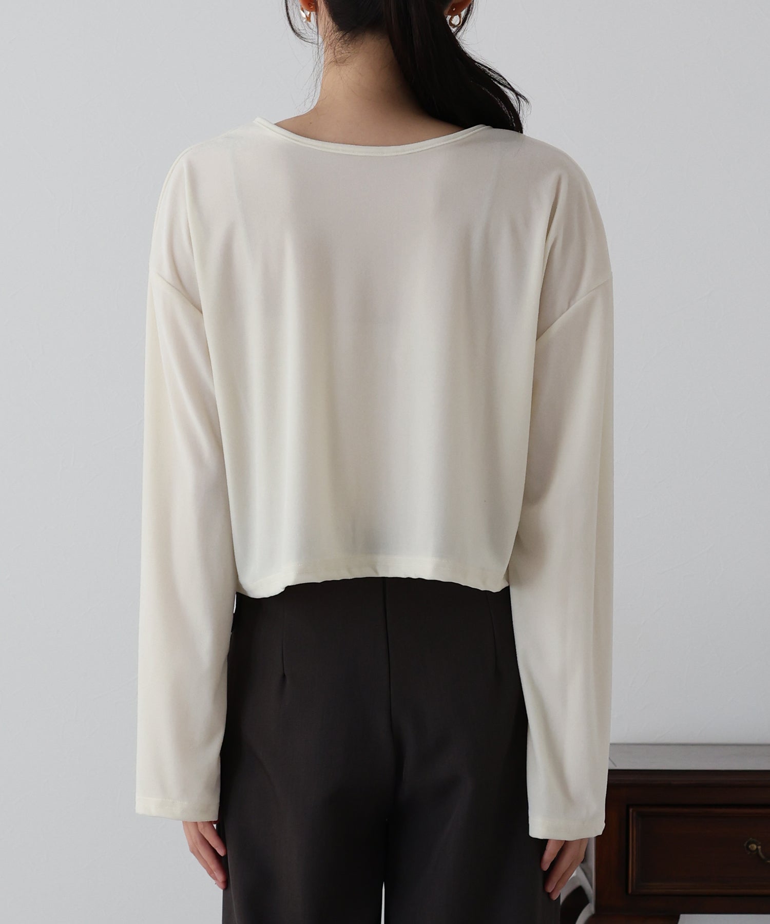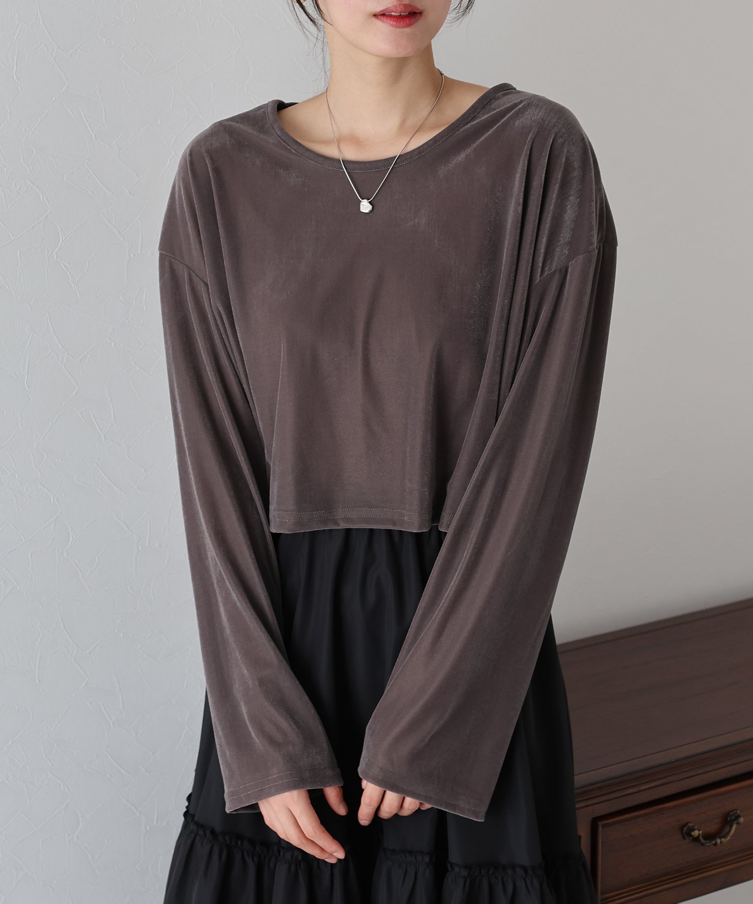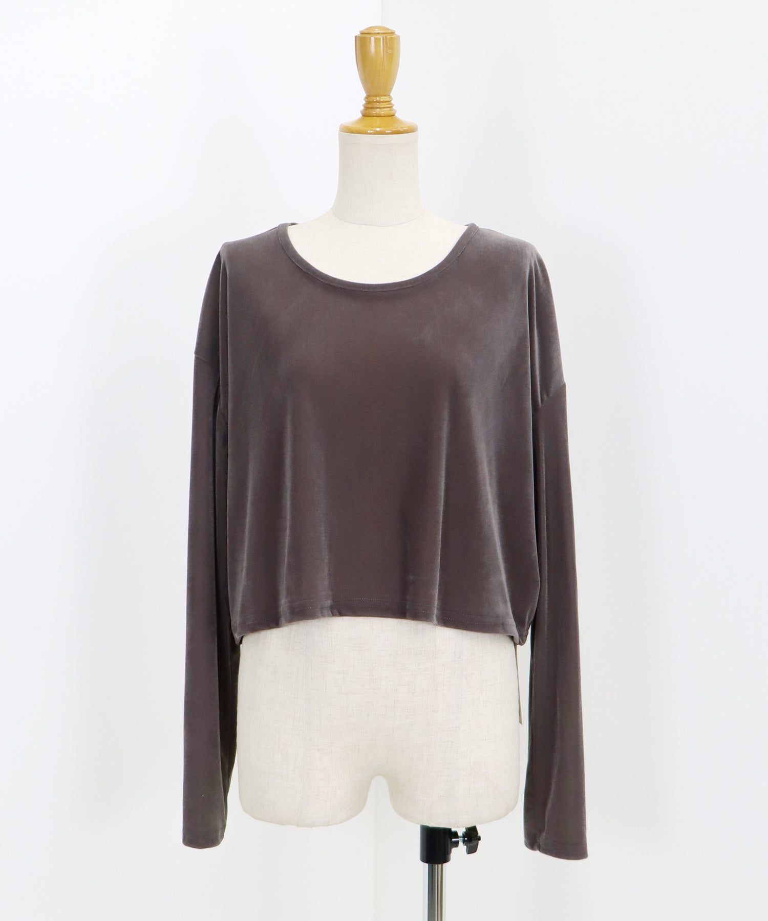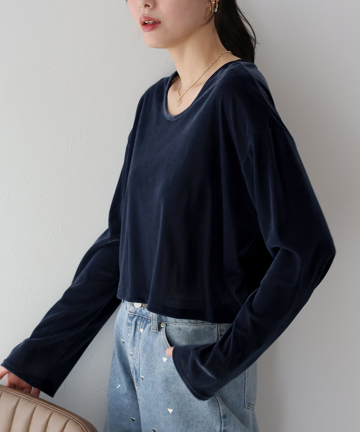 上品な光沢感のベロア素材を使用した短丈シアーロングTシャツ