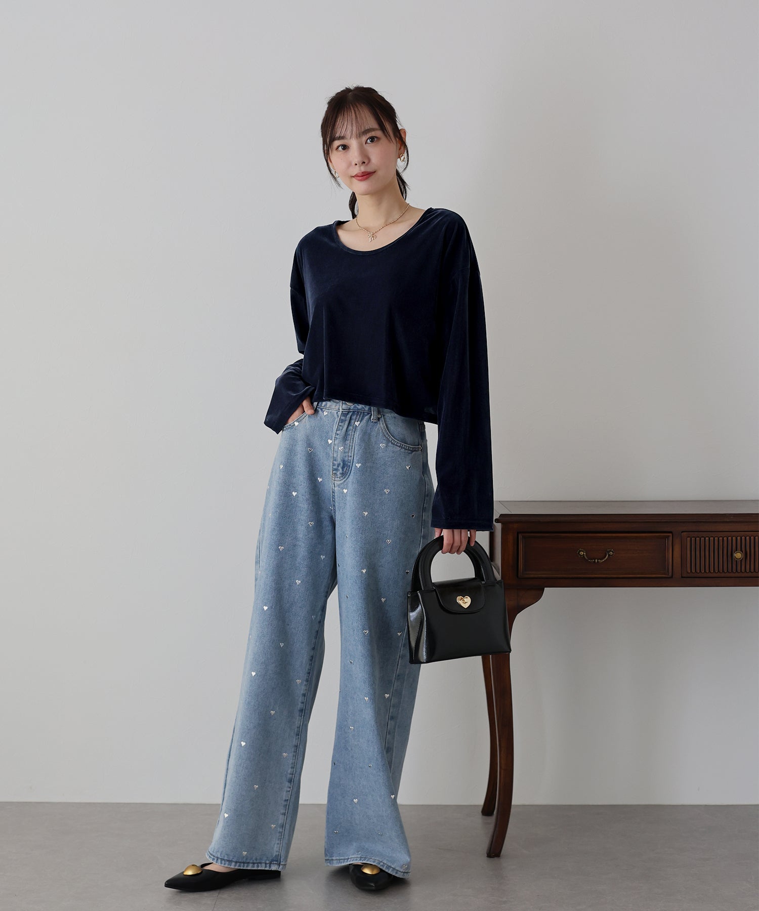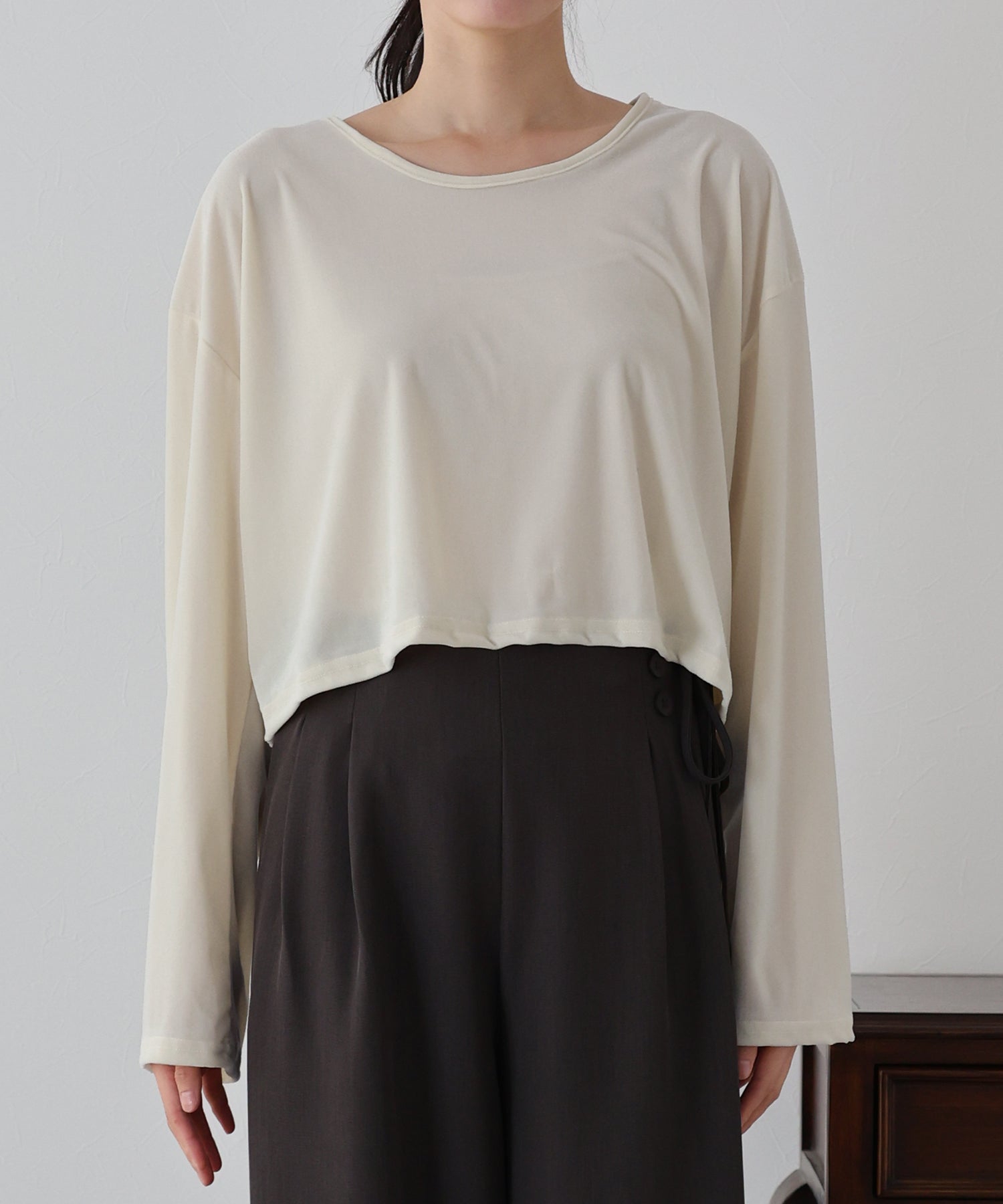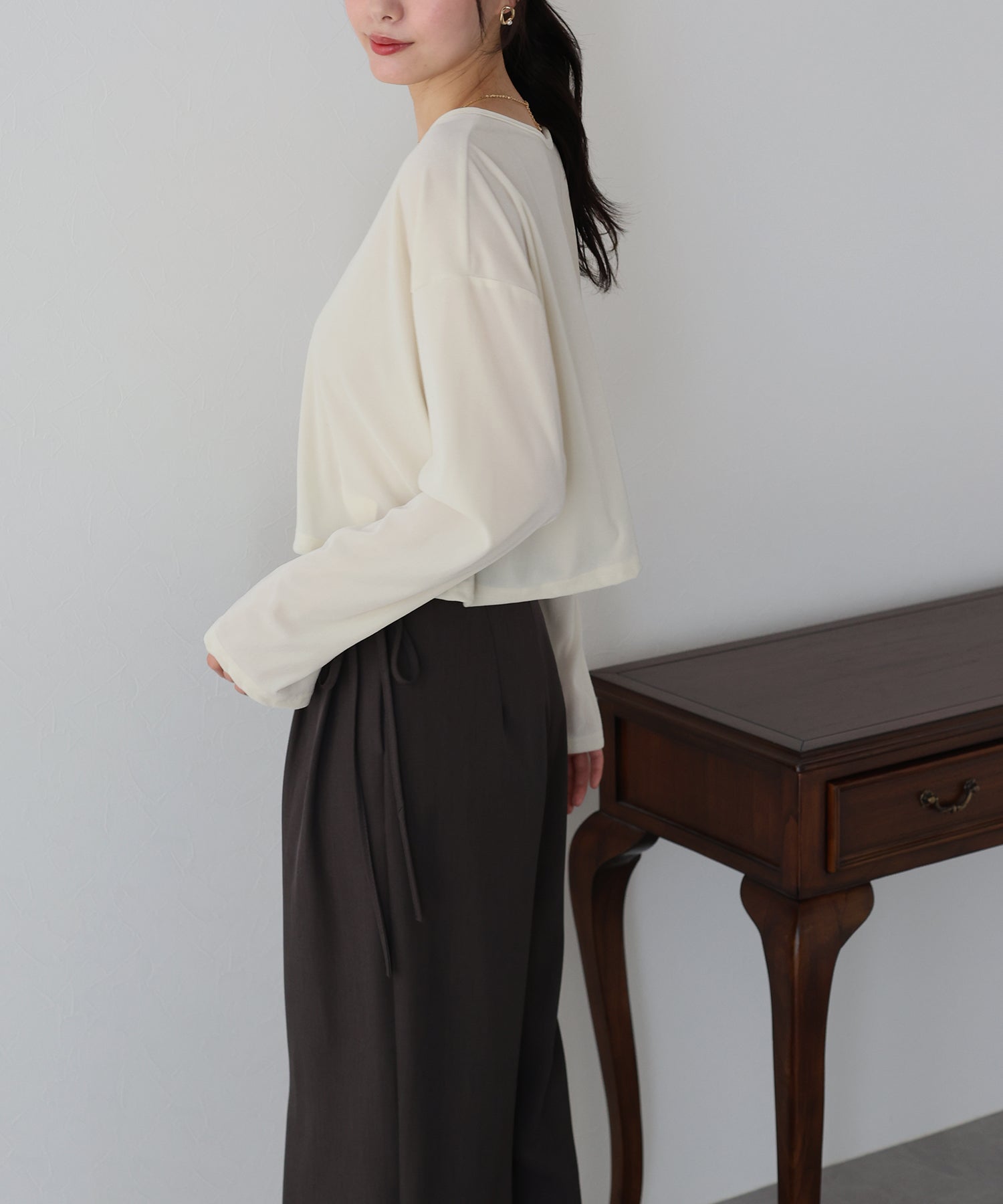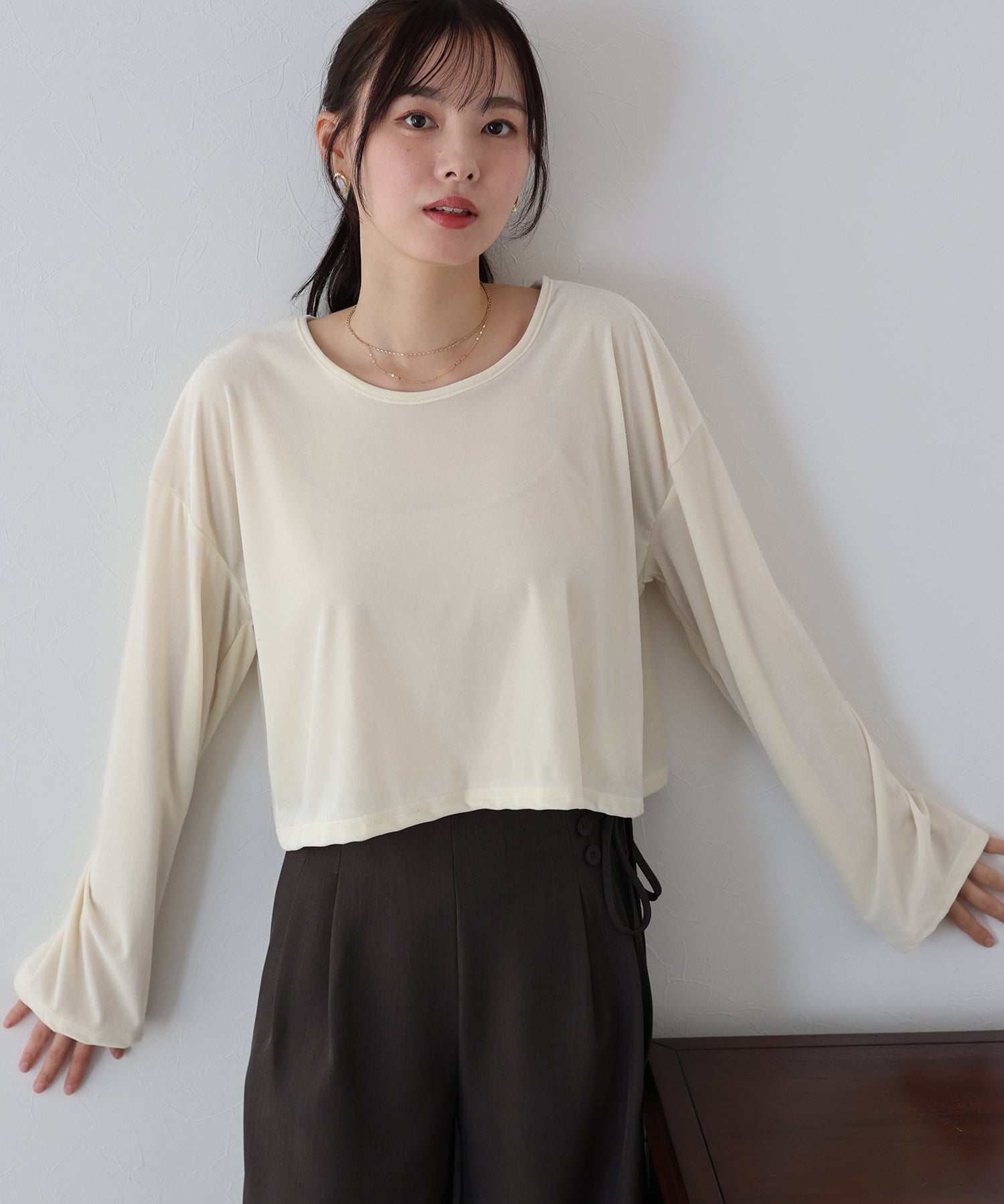 上品な光沢感のベロア素材を使用した短丈シアーロングTシャツ