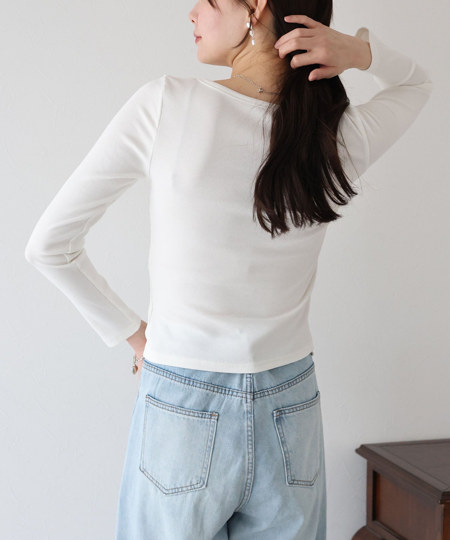 ワンオフショルダーギャザーリボンTシャツ[ J by blue ]【ネコポス】
