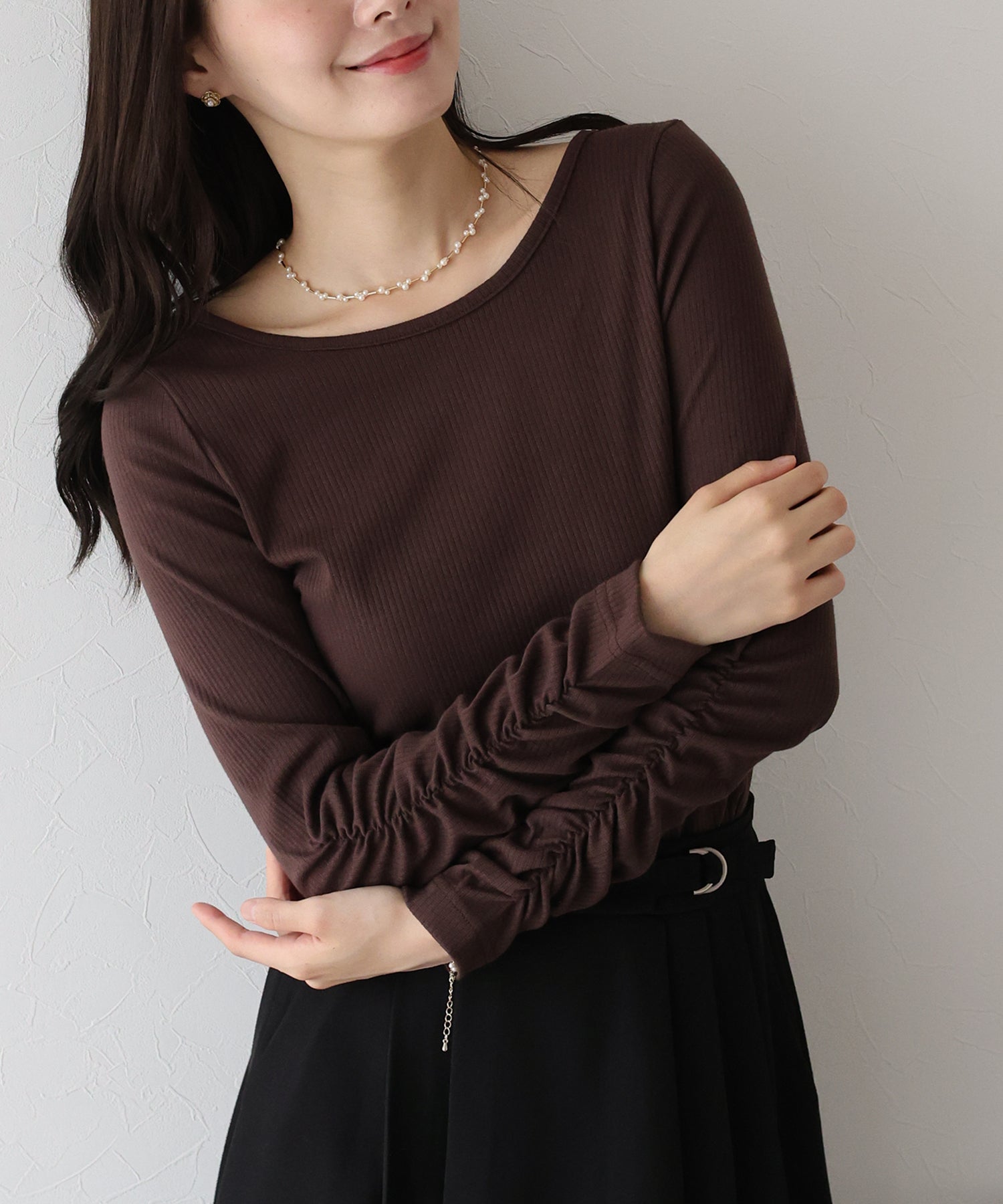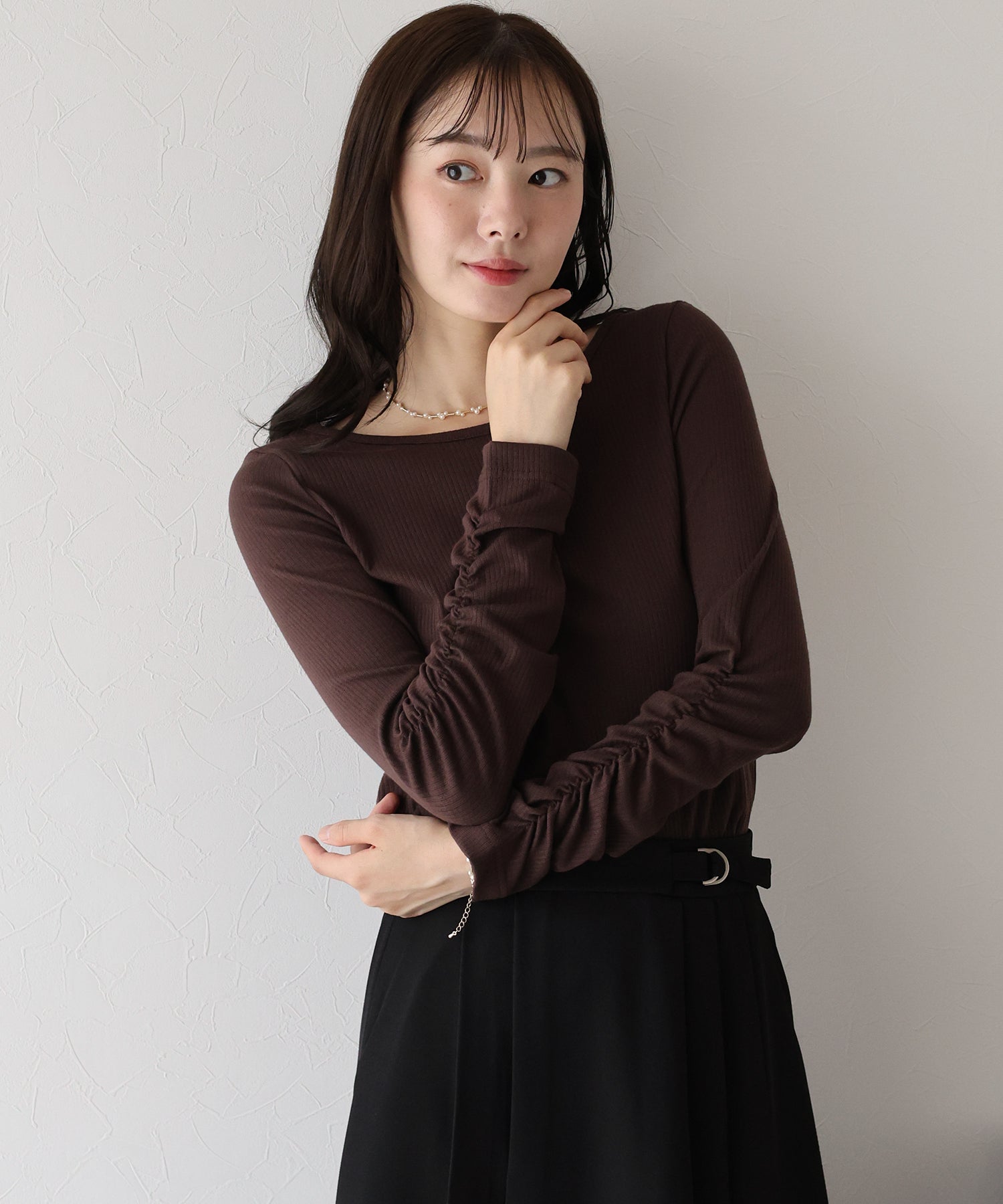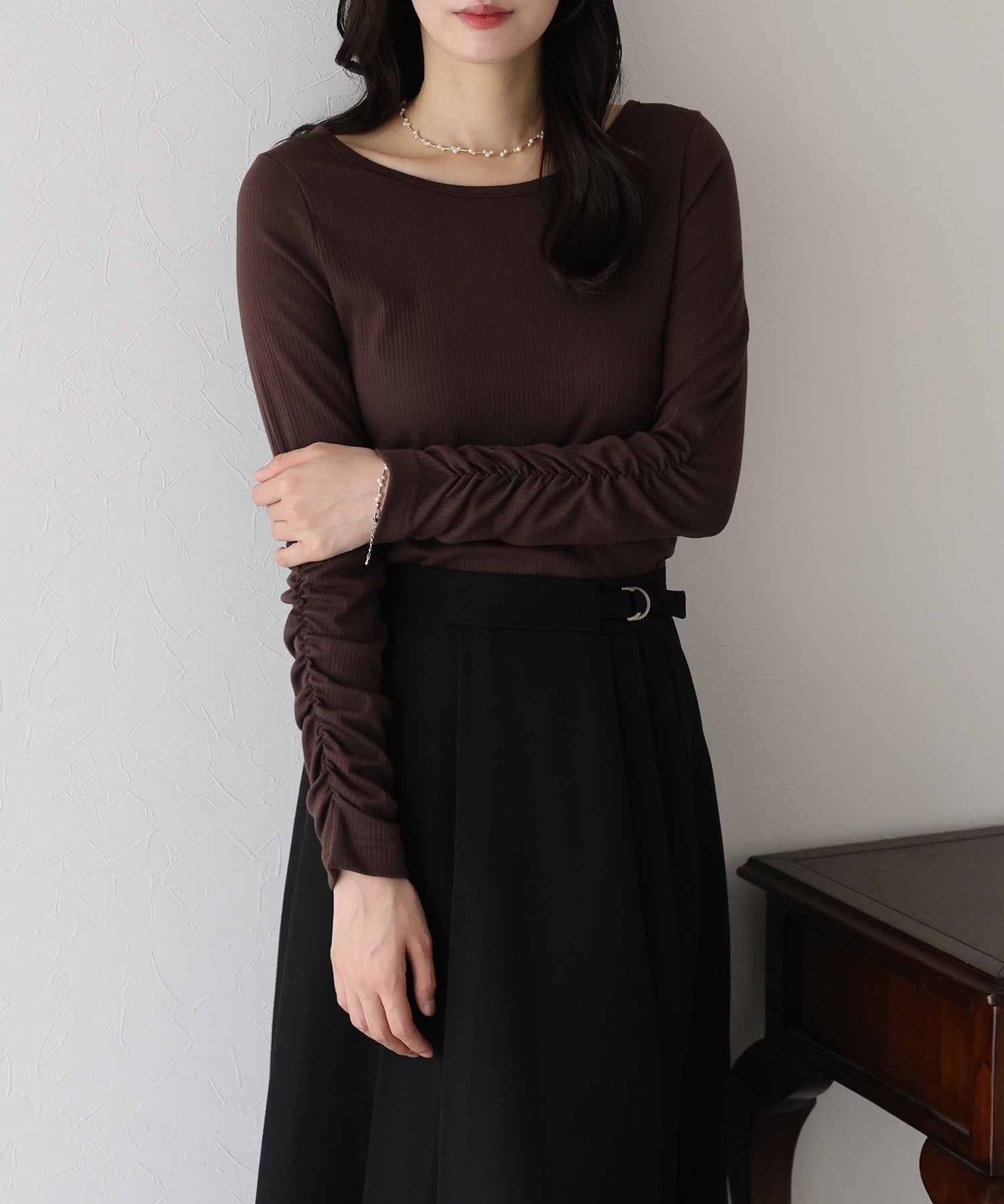 袖に施されたシャーリングデザインで、フェミニン&立体的なシルエットを演出。