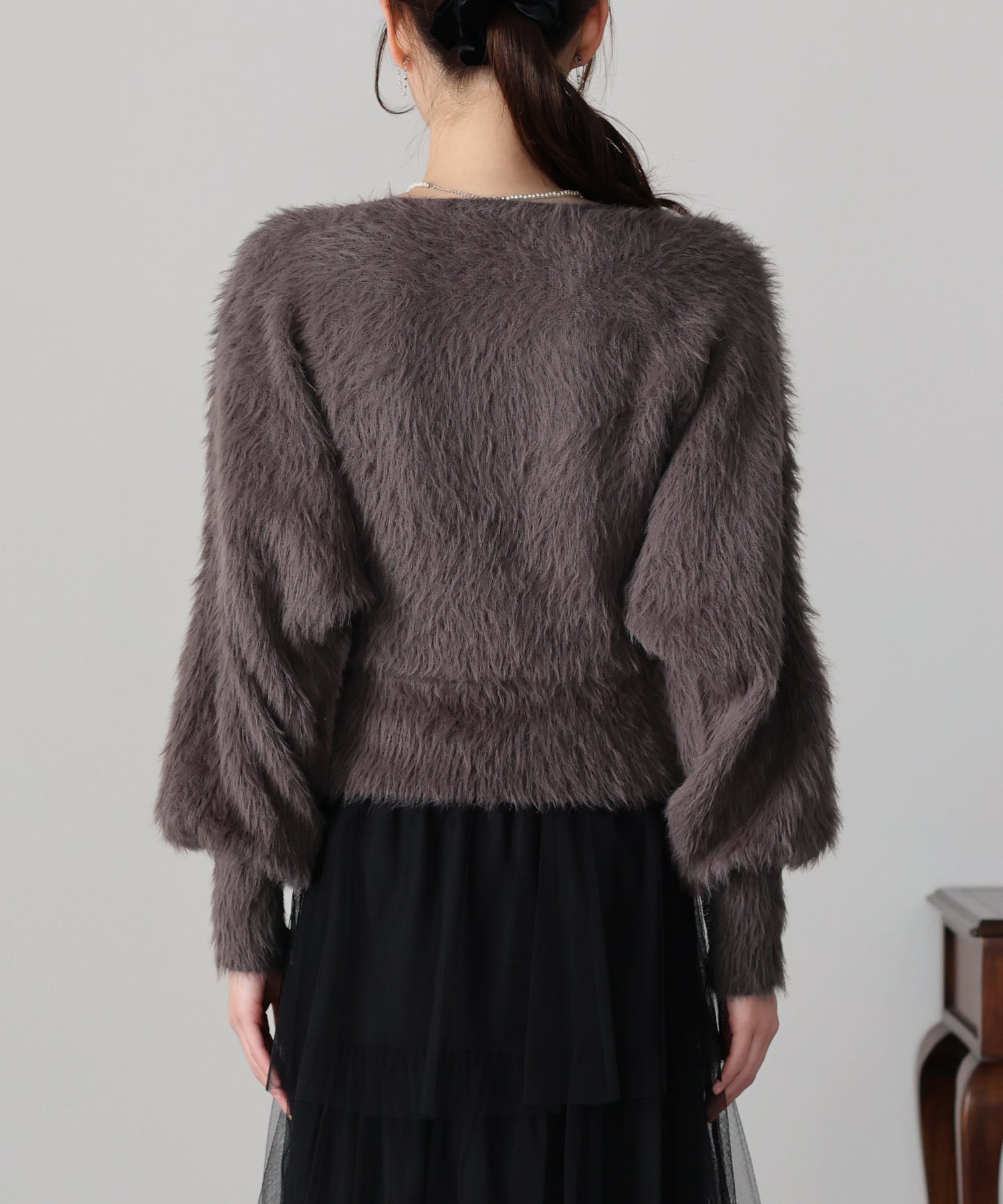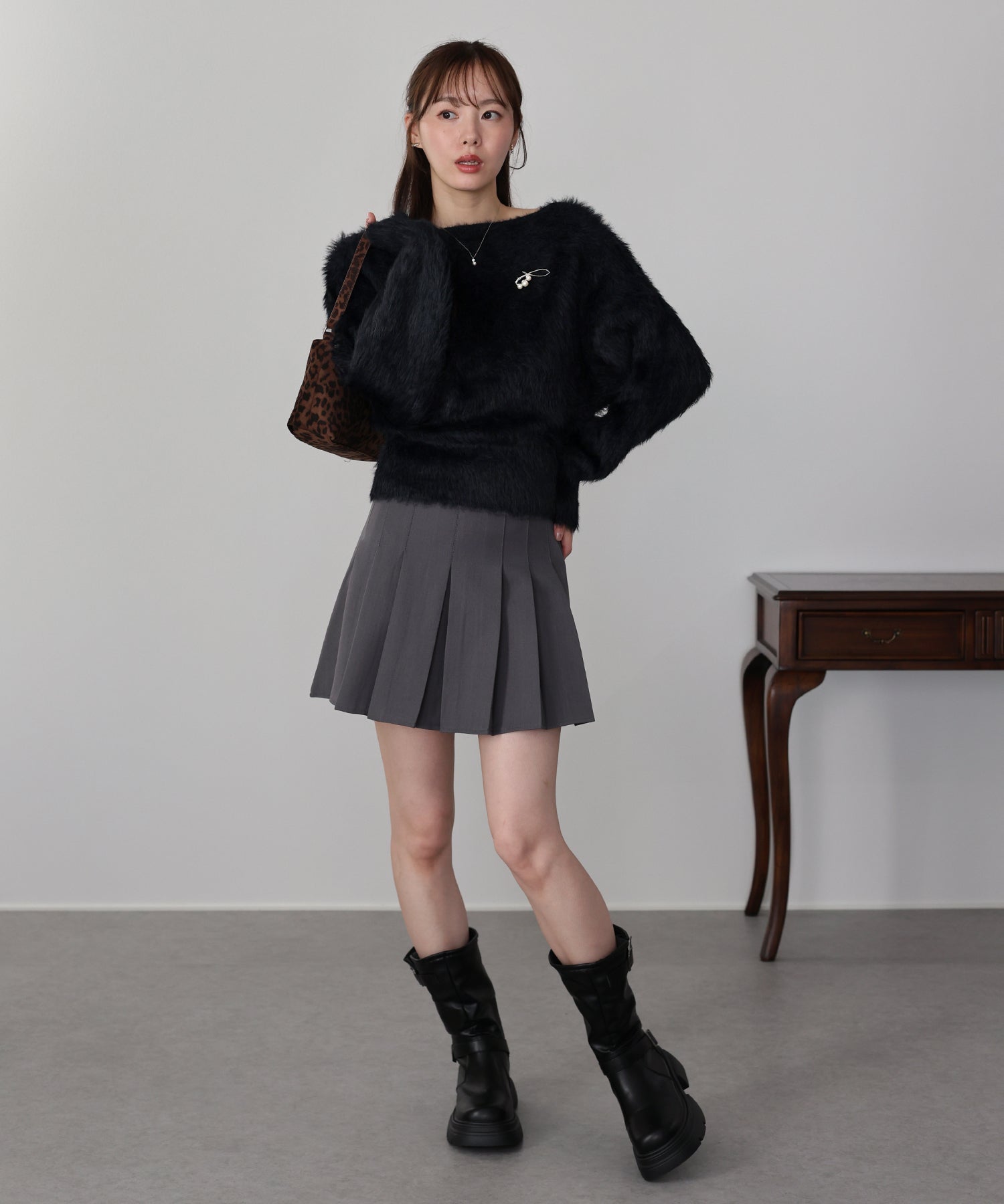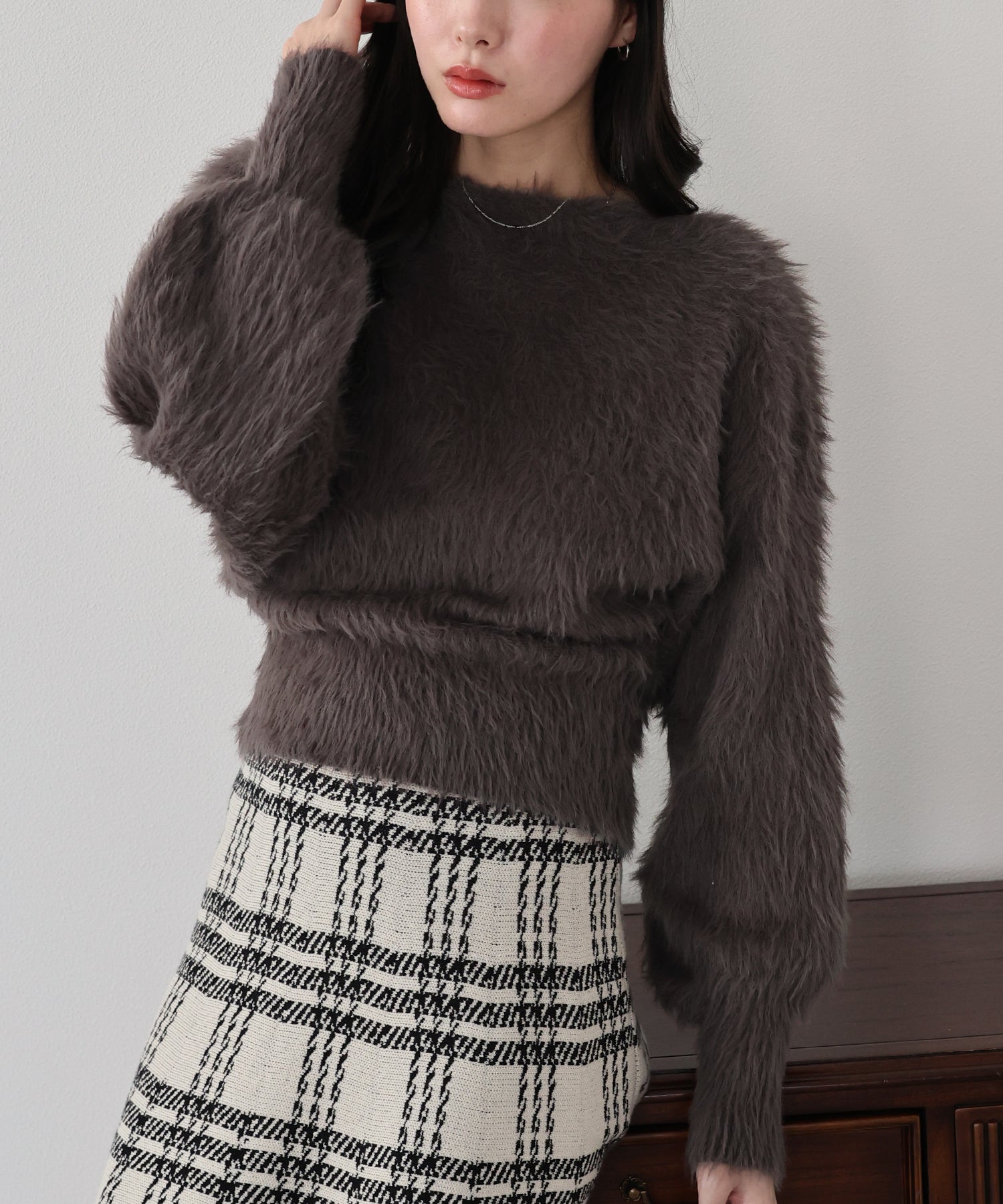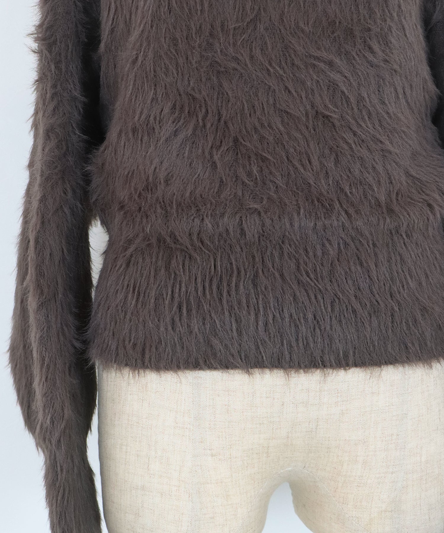 ふんわりとした起毛感が冬らしいオフショルダーシャギーニット。
