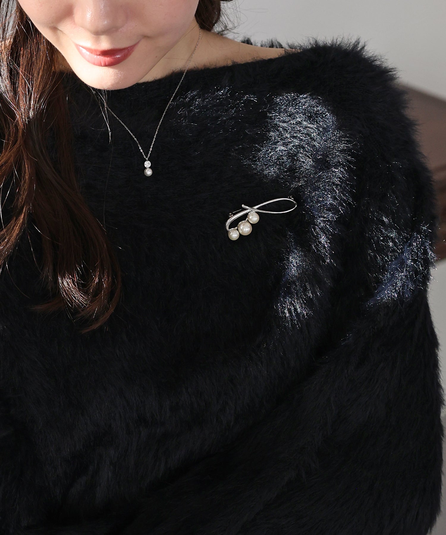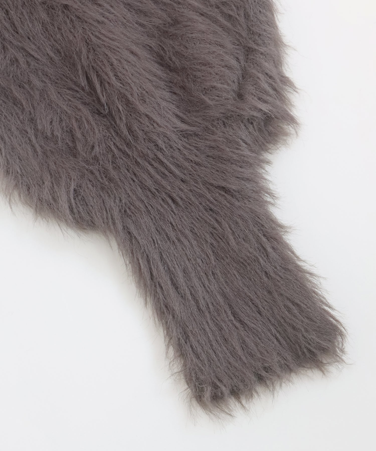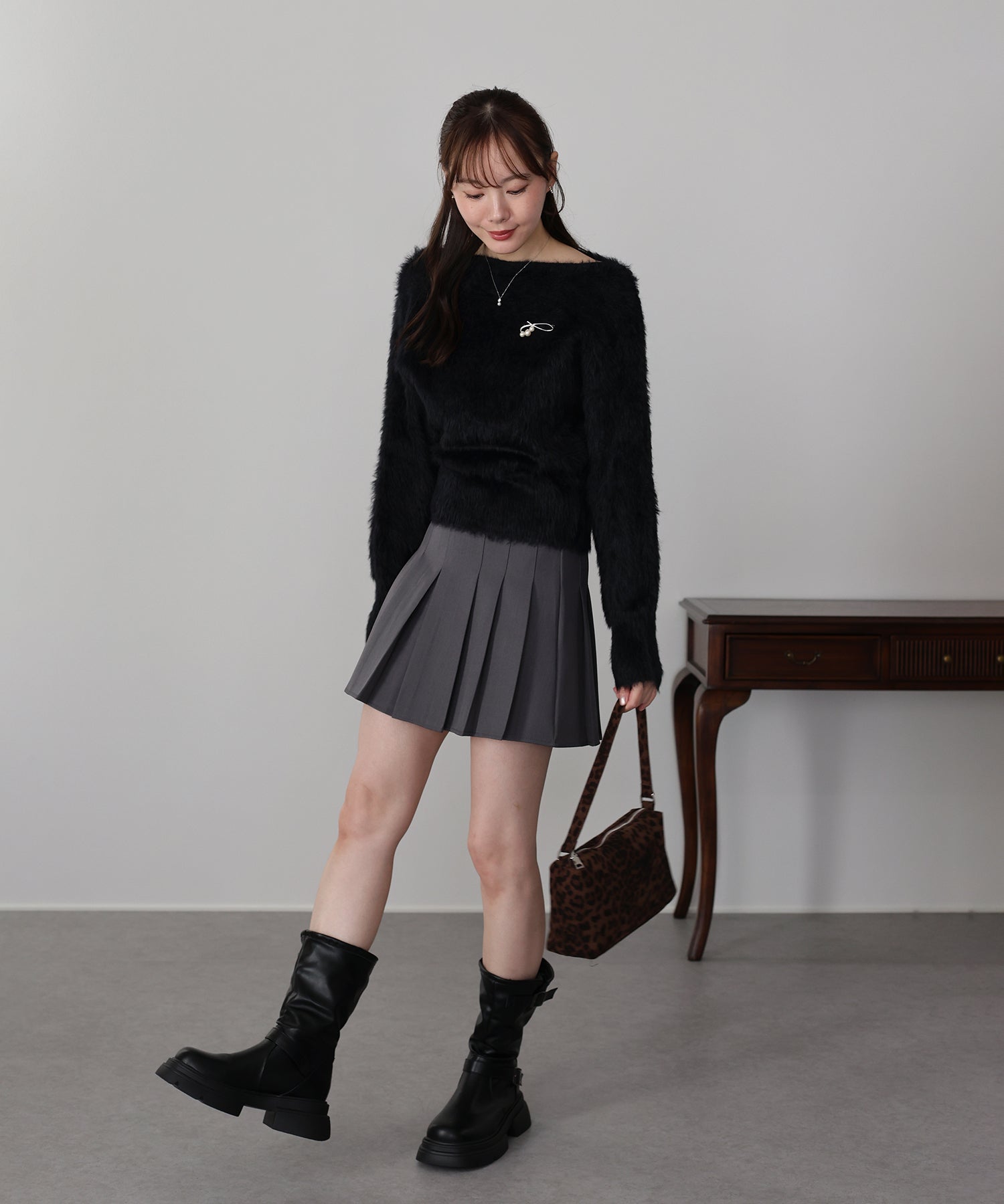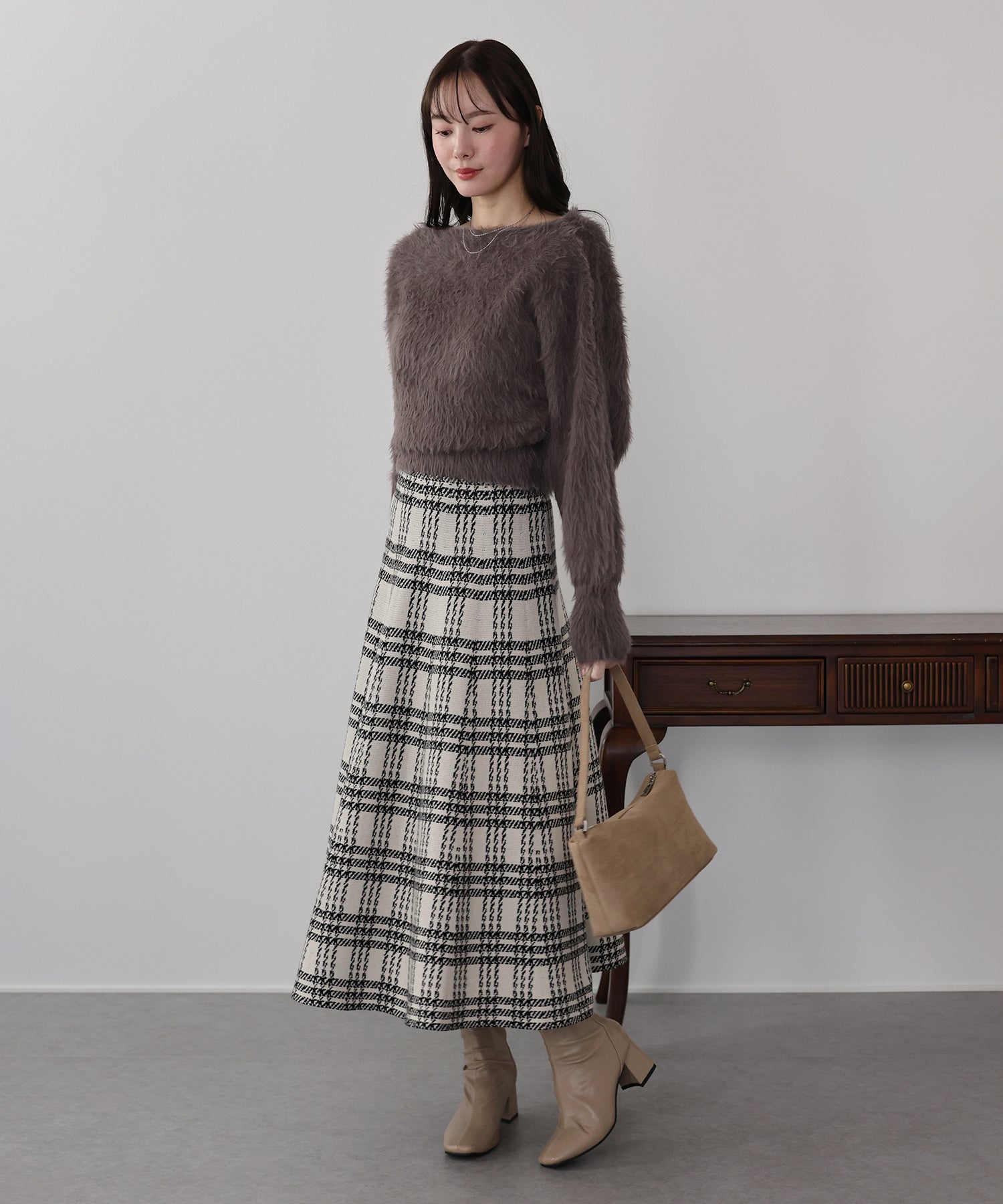 ふんわりとした起毛感が冬らしいオフショルダーシャギーニット。