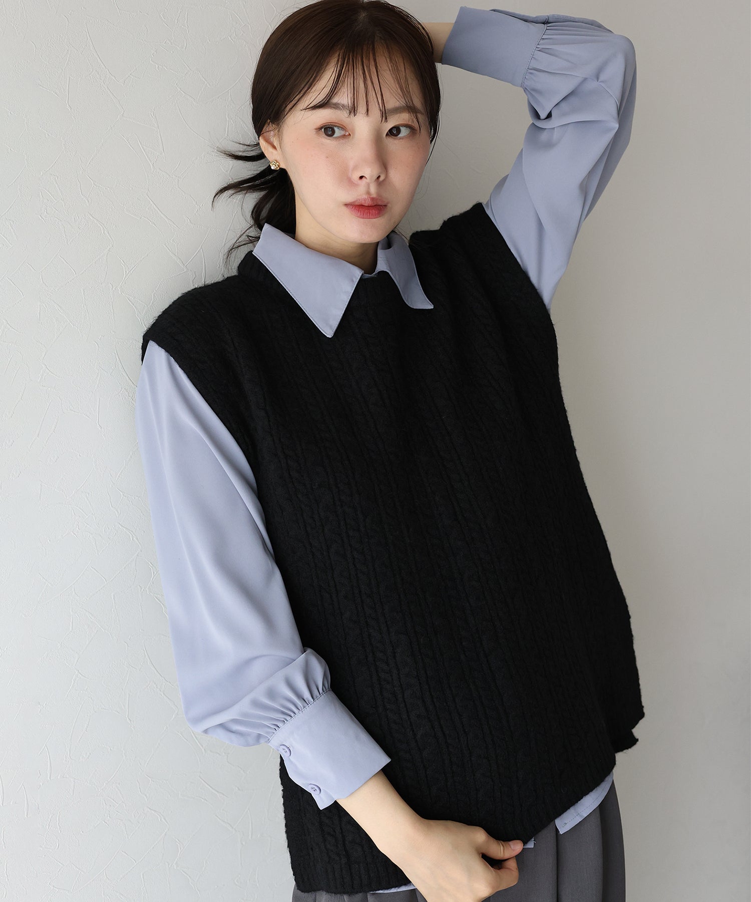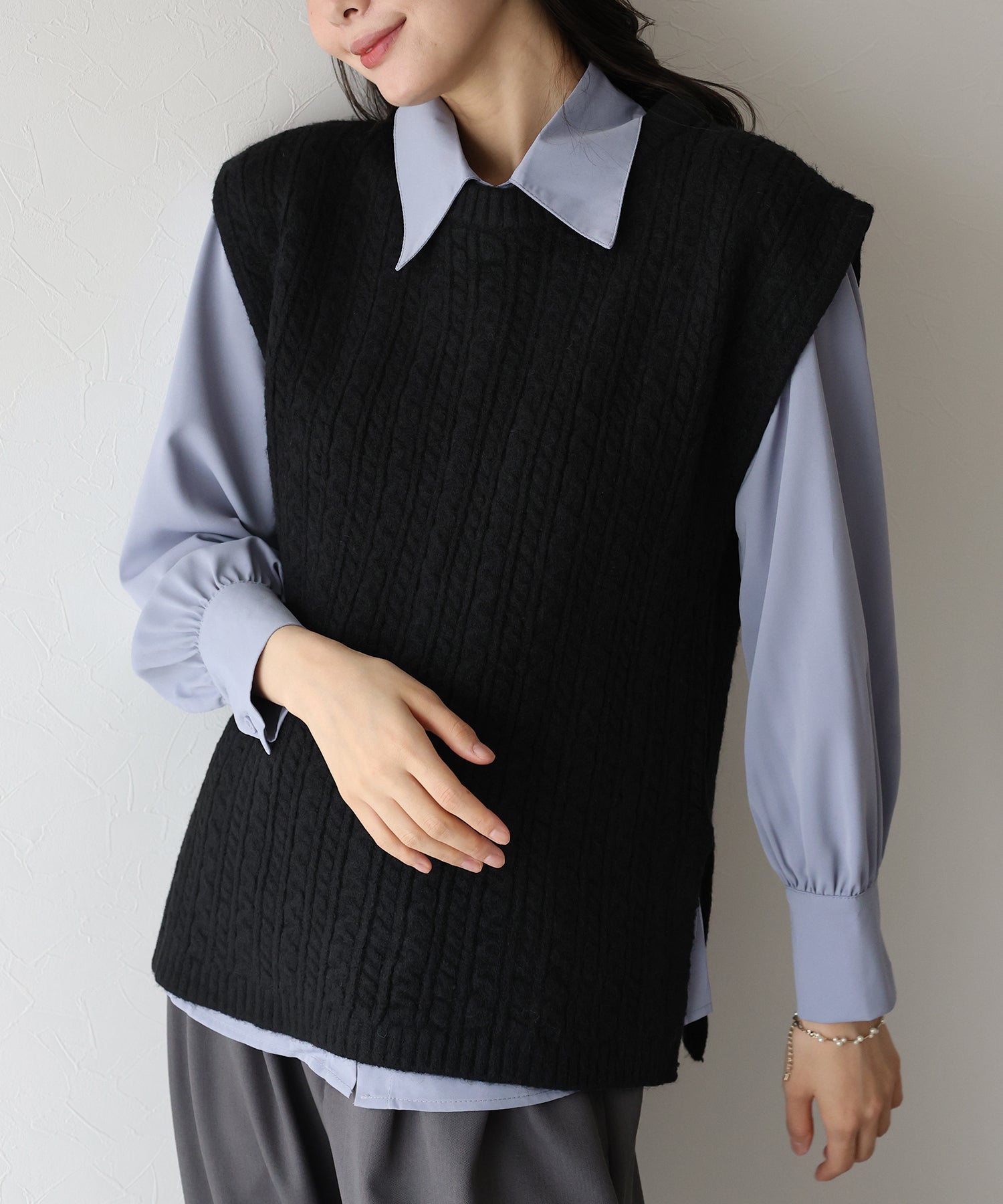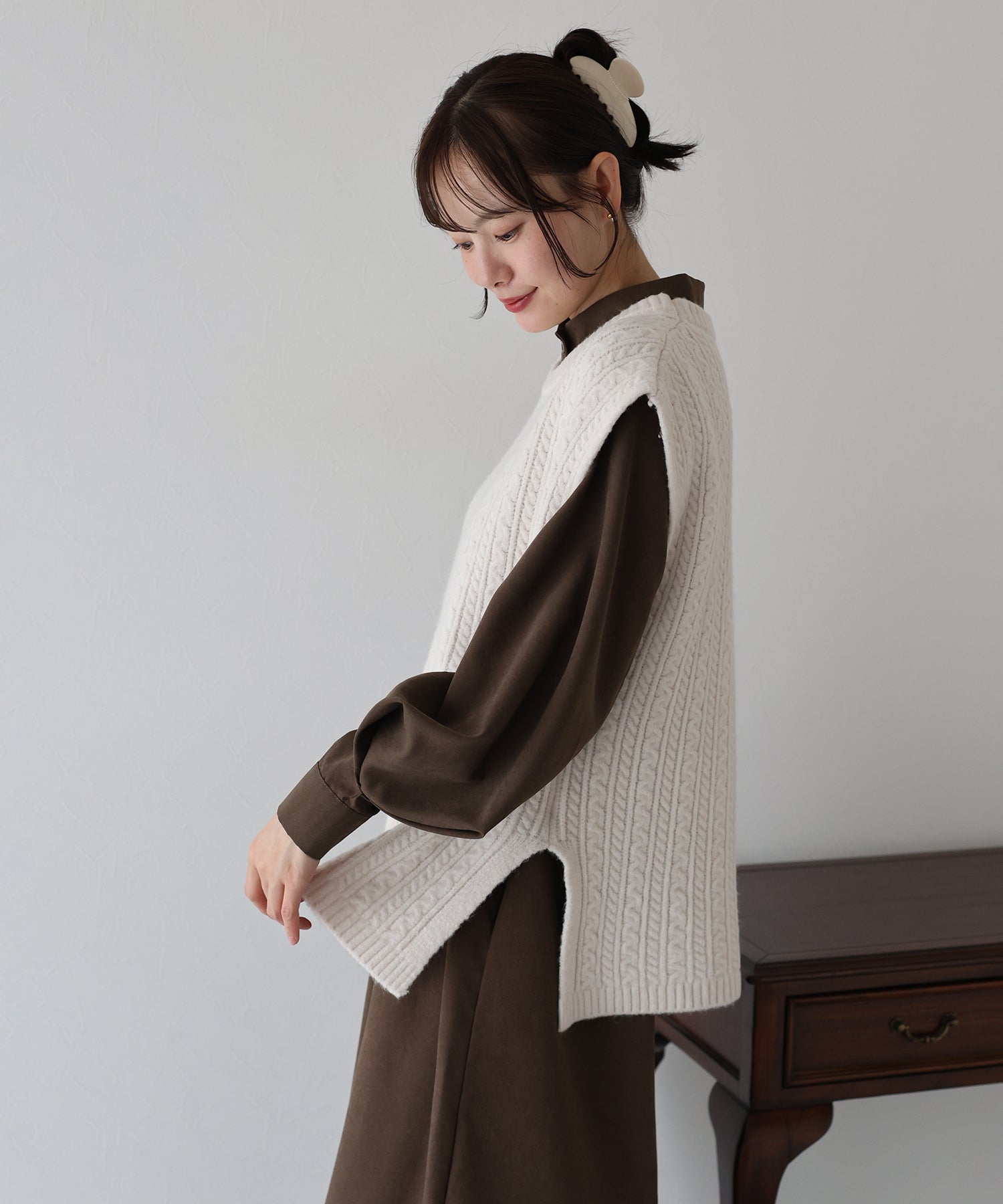 【TIME SALE】選べる2丈・吸湿発熱・リボンケープニットベスト&リブニットワンピース