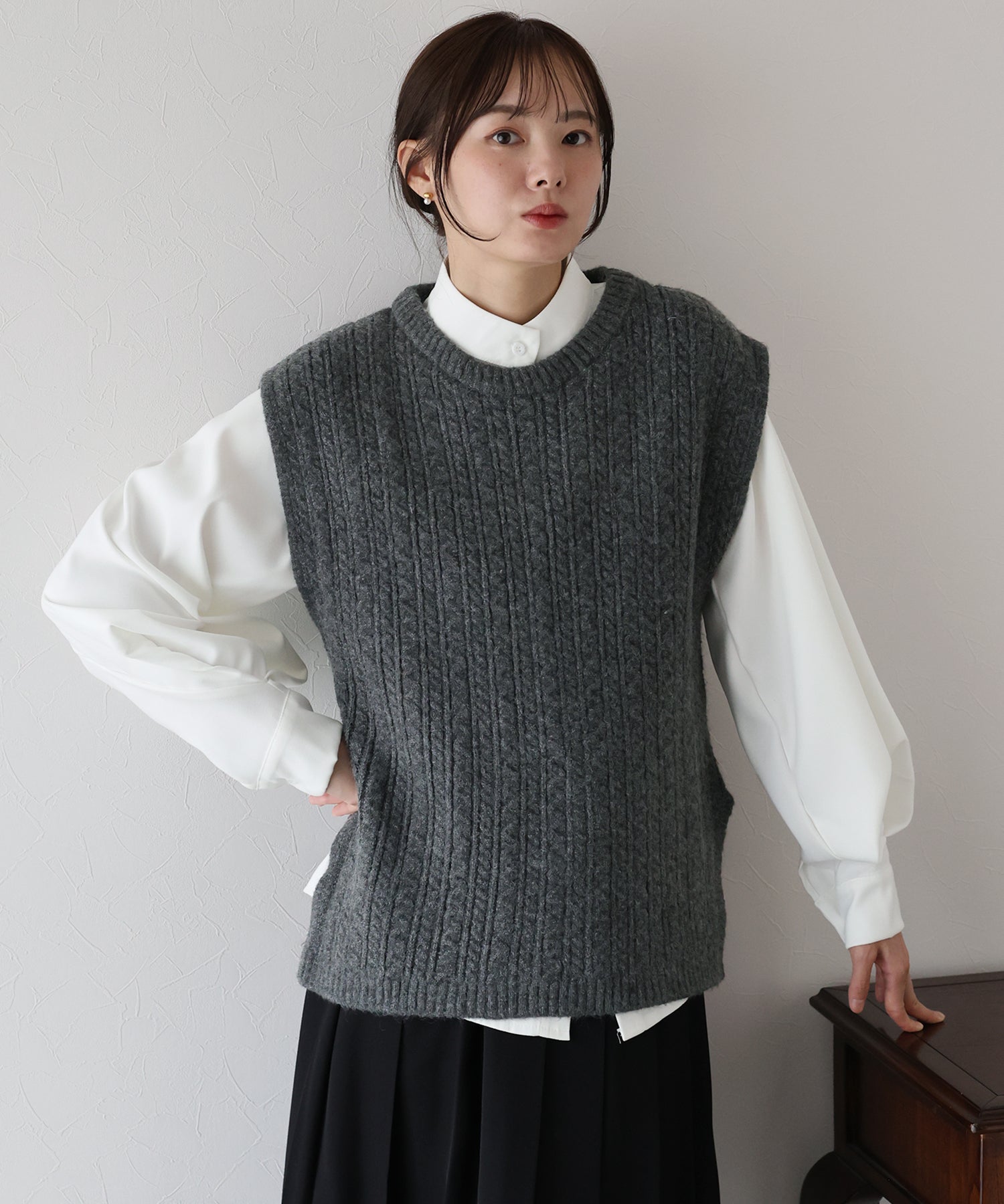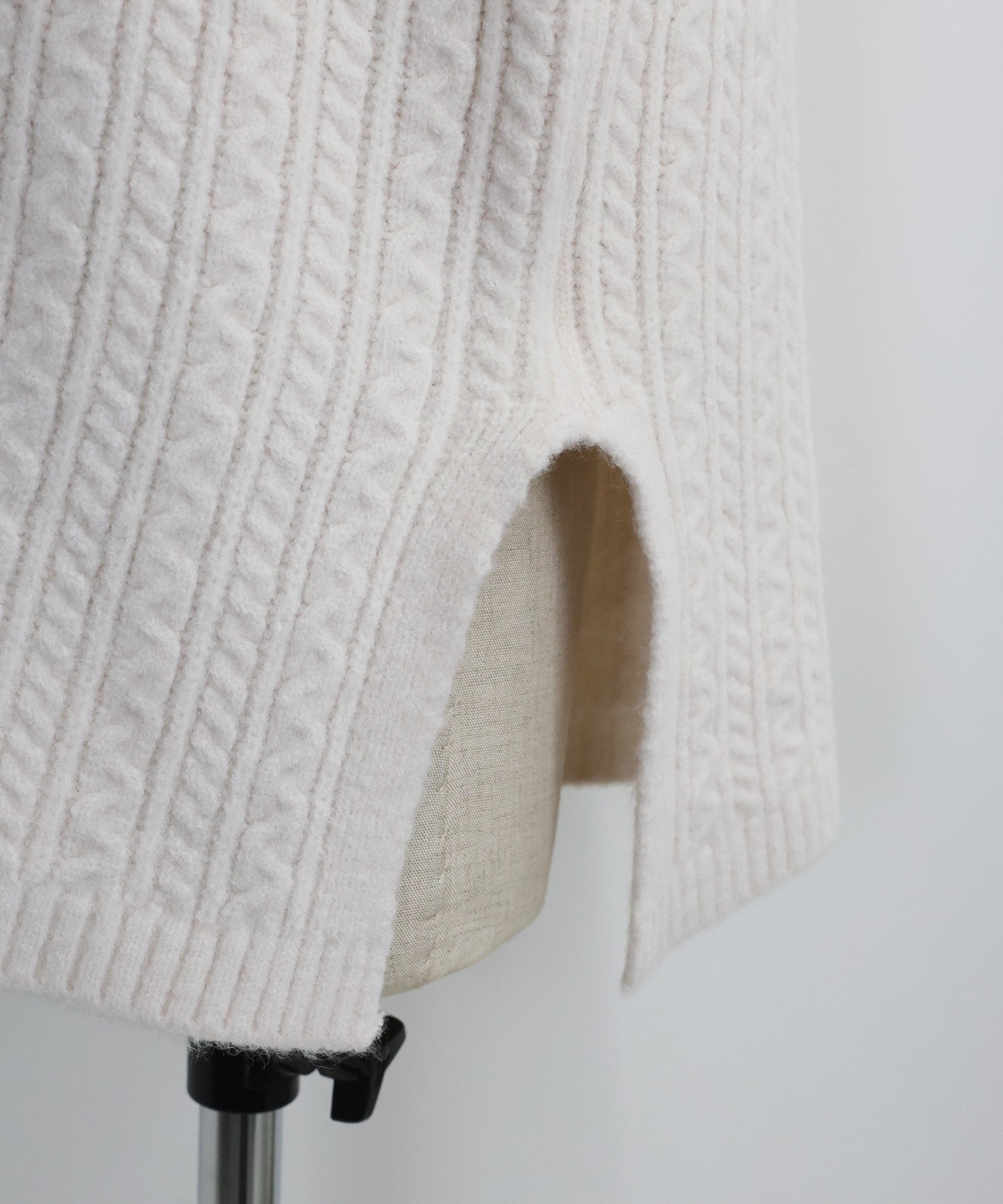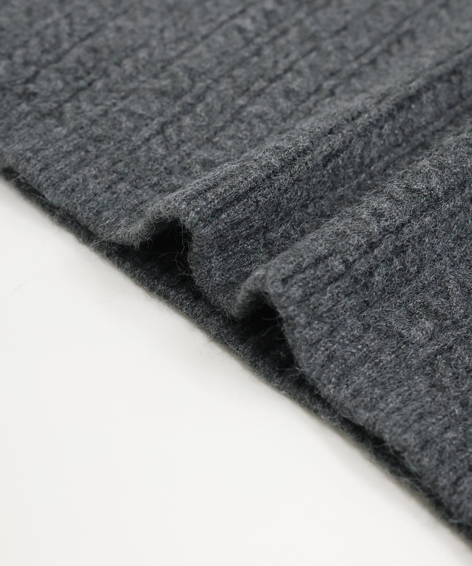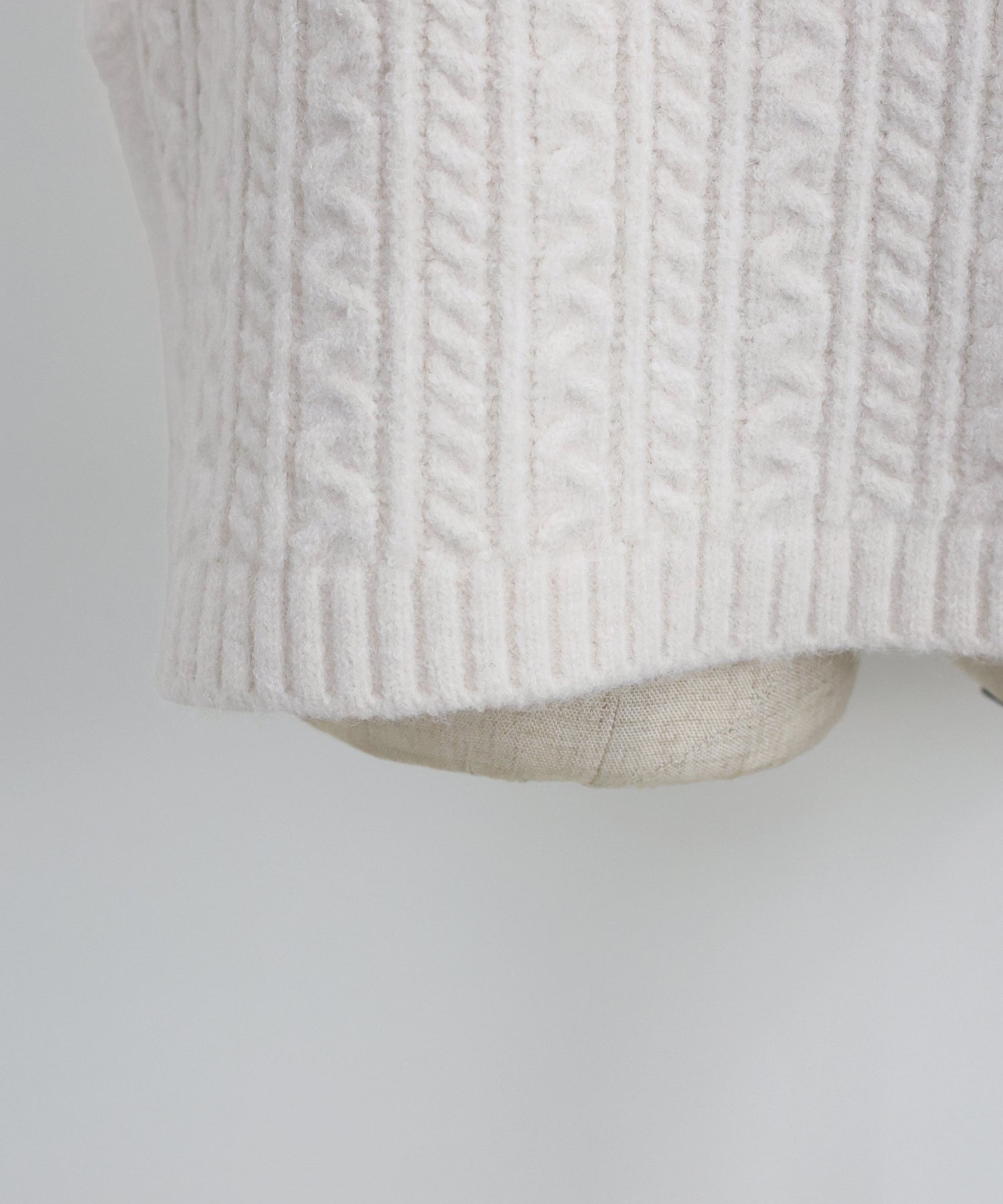 ふわふわした素材感と立体感のあるケーブル編み&ポコポコ編みで季節感を演出し、