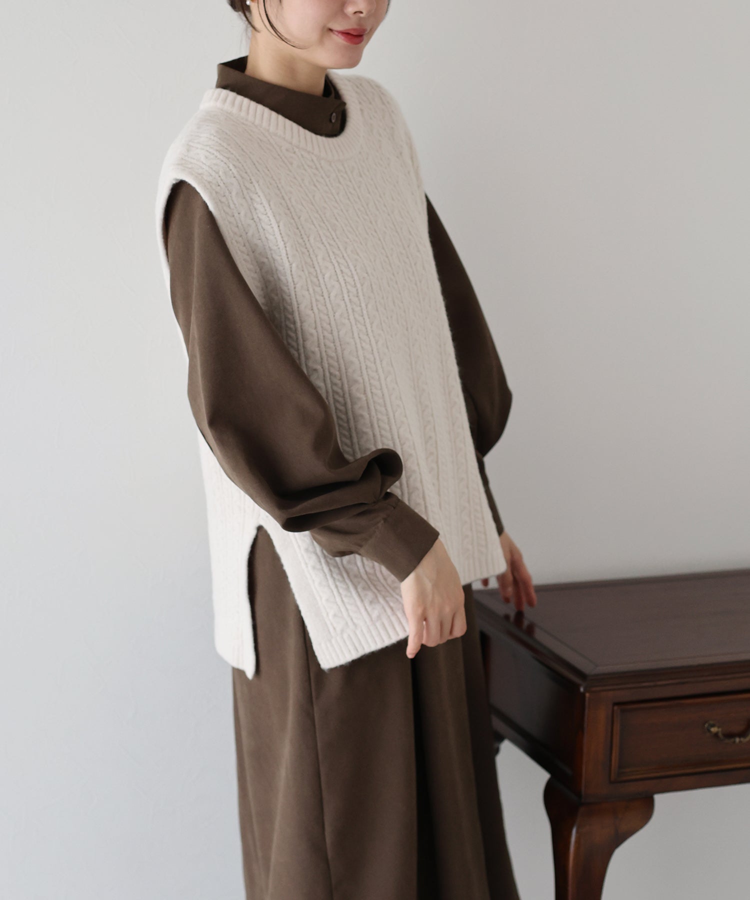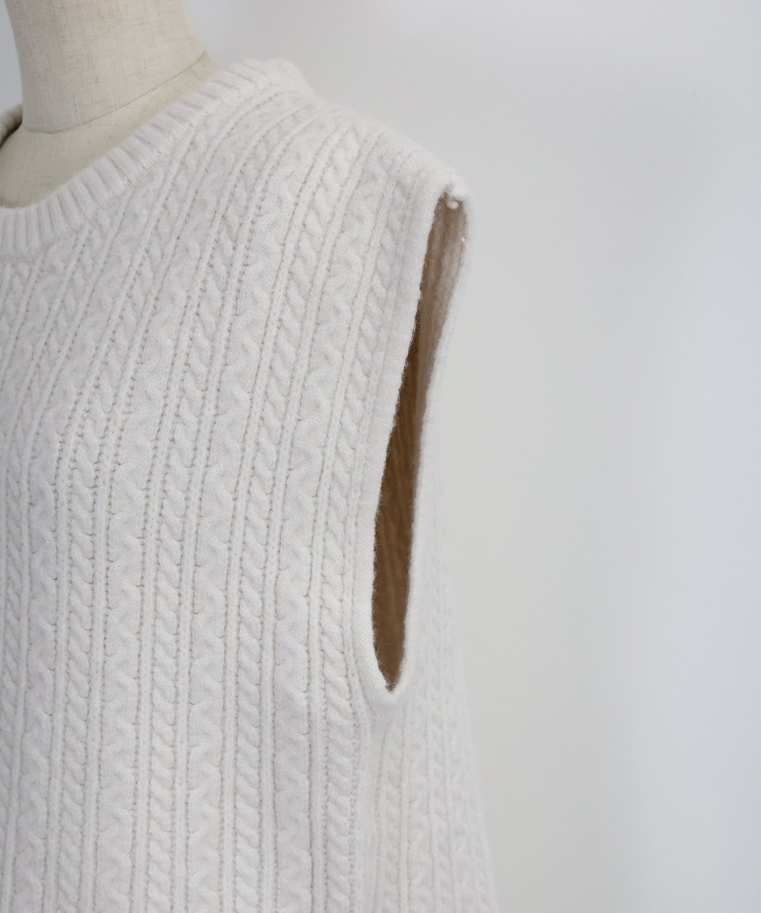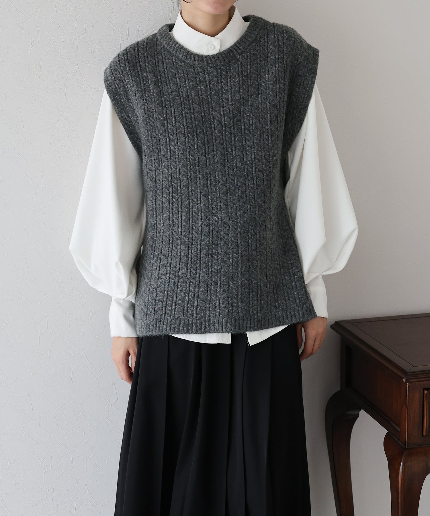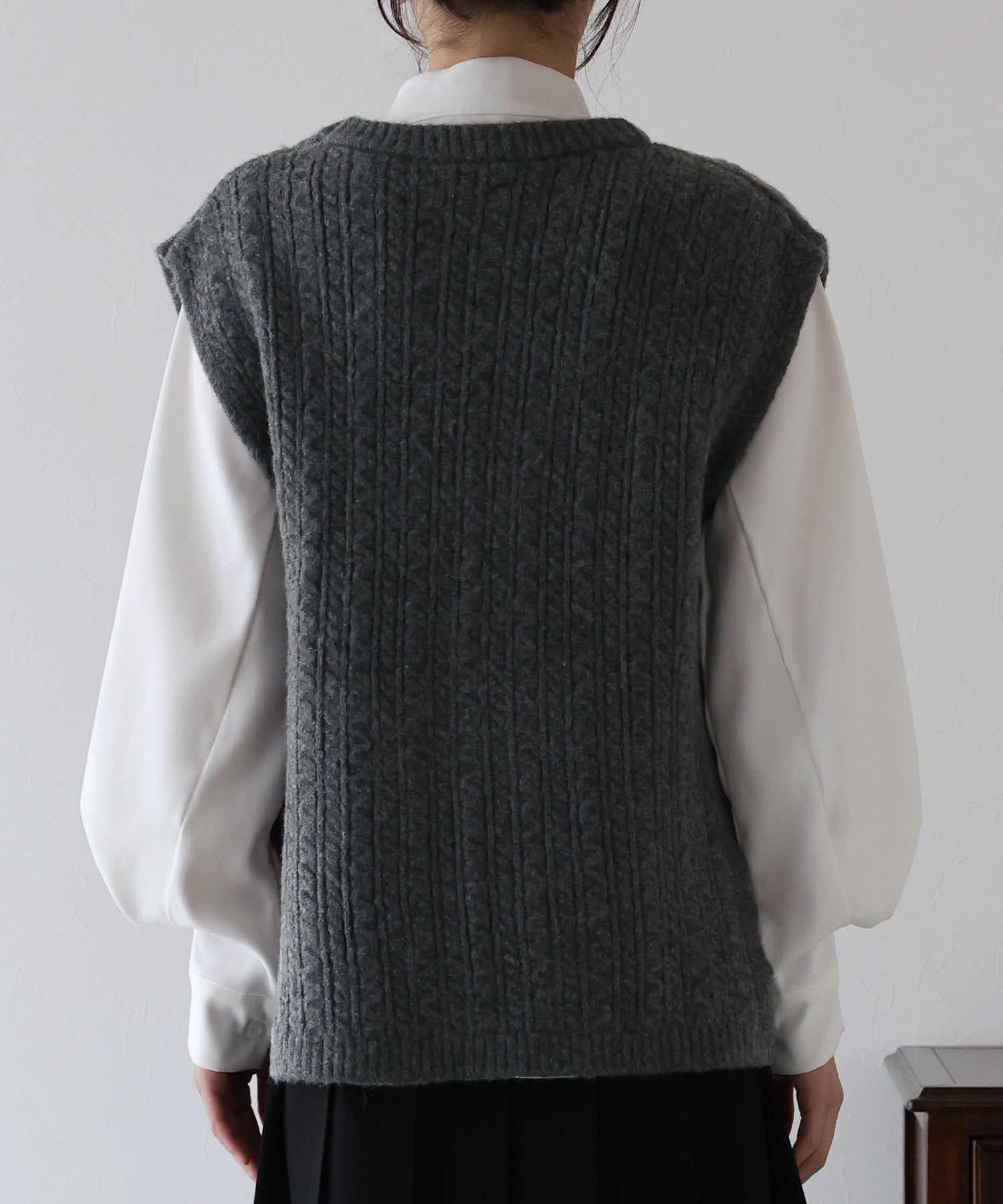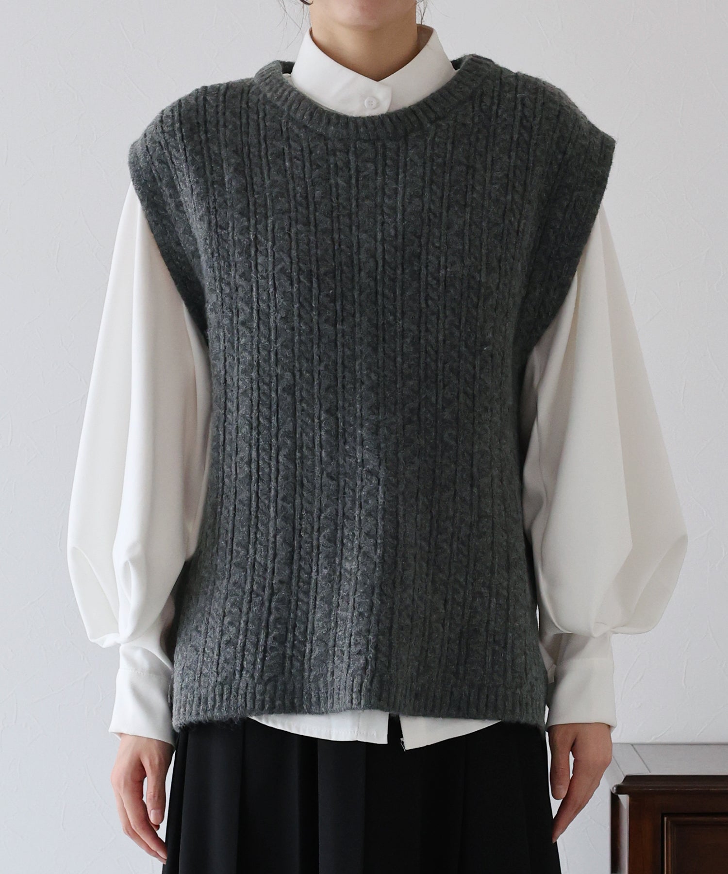 ふわふわした素材感と立体感のあるケーブル編み&ポコポコ編みで季節感を演出し、