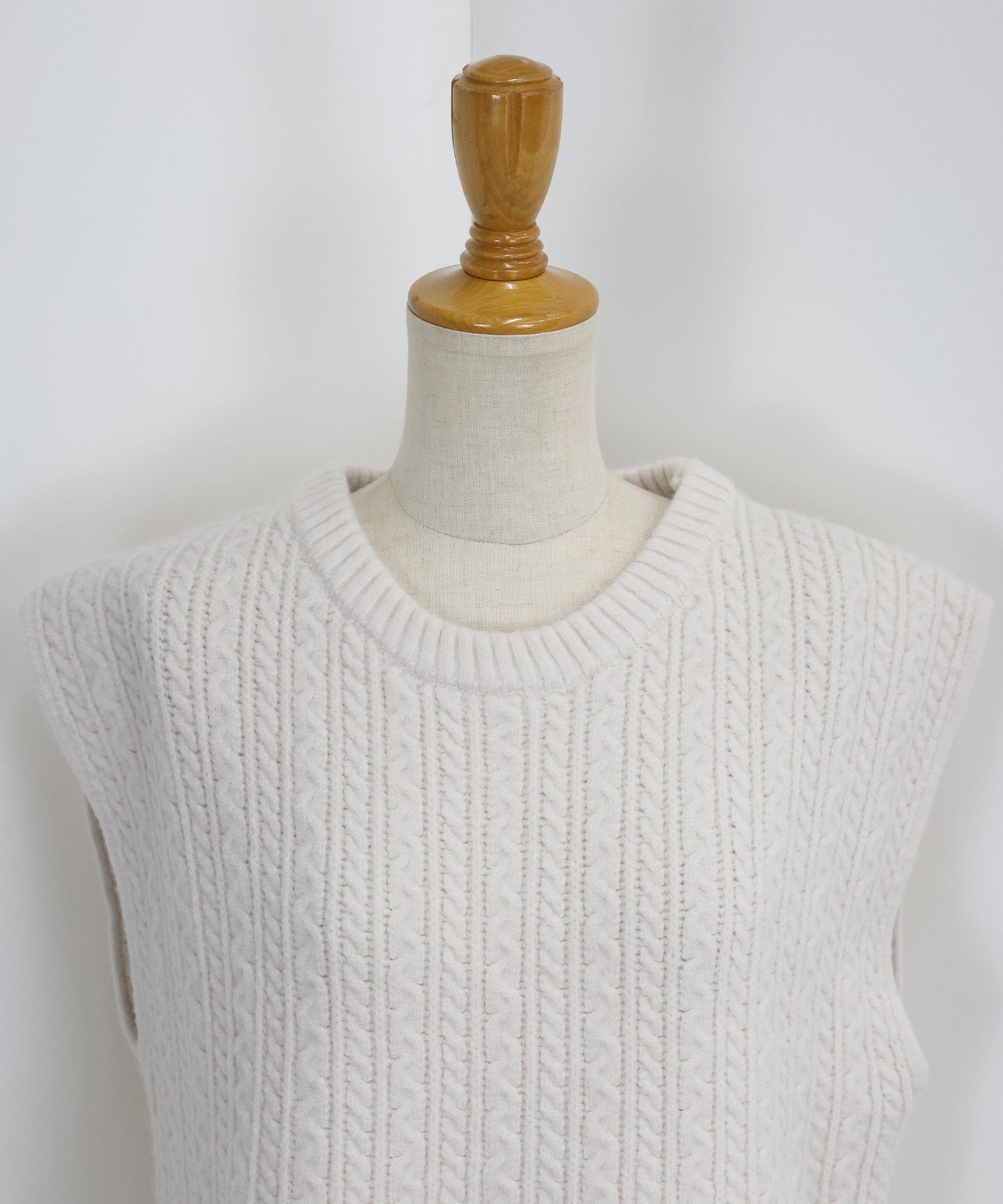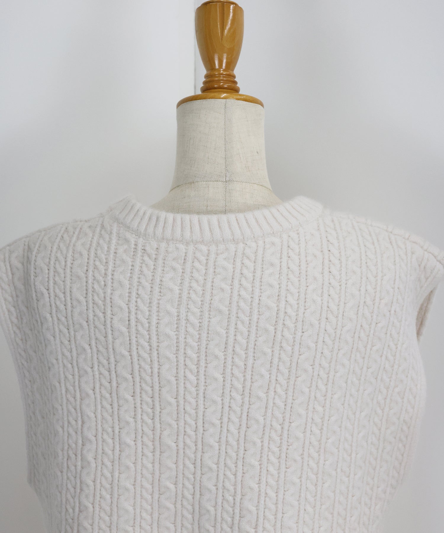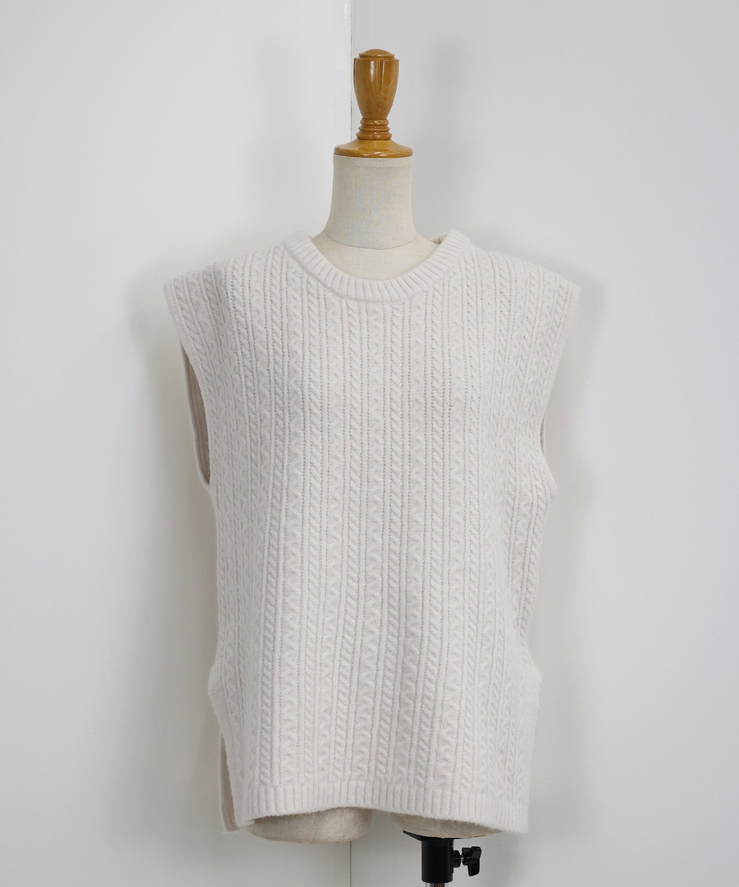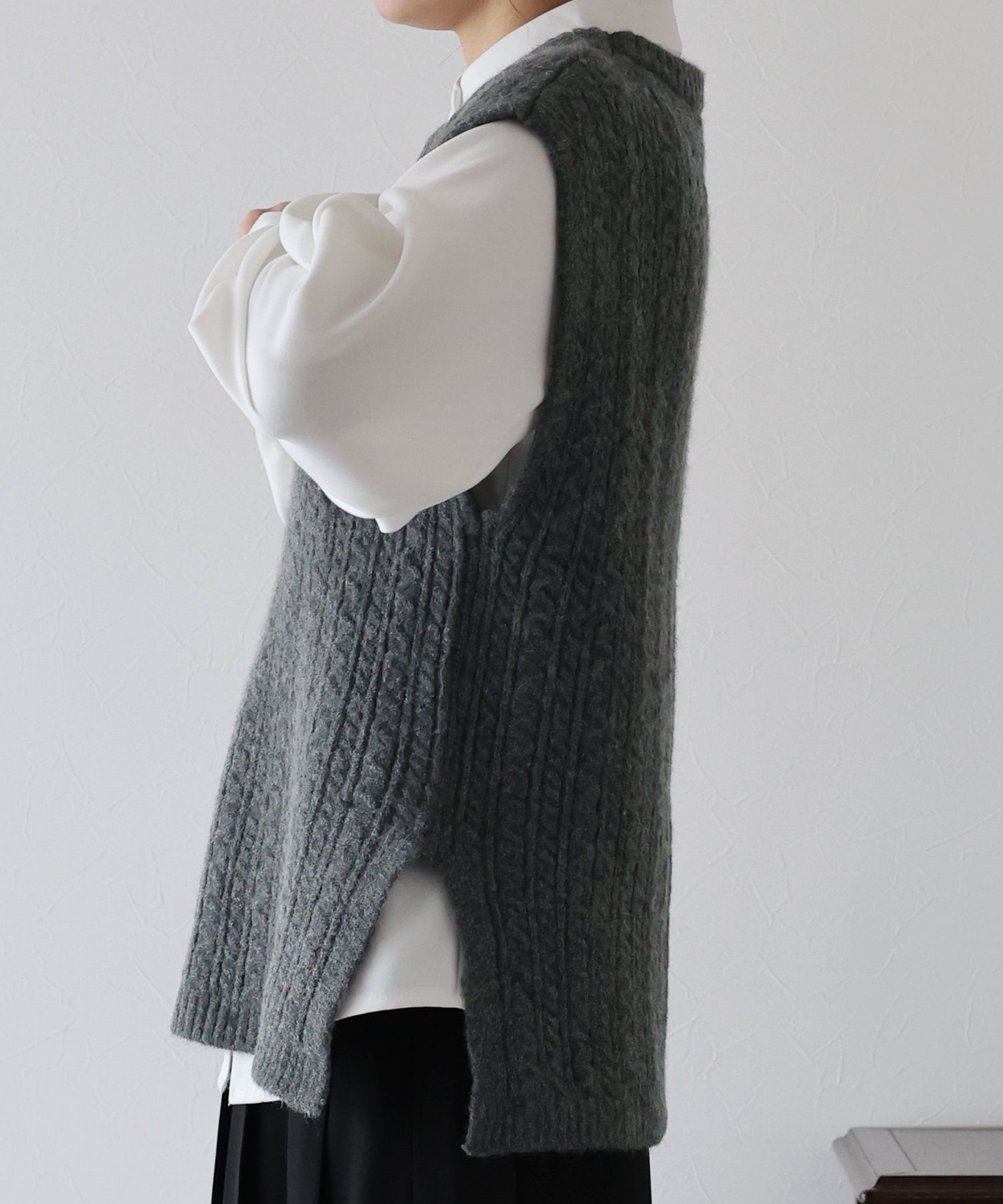 ふわふわした素材感と立体感のあるケーブル編み&ポコポコ編みで季節感を演出し、