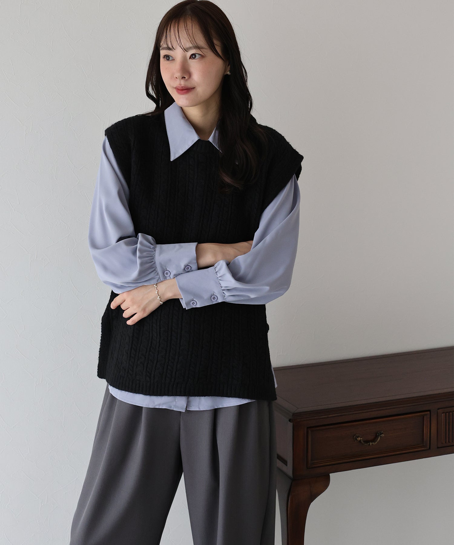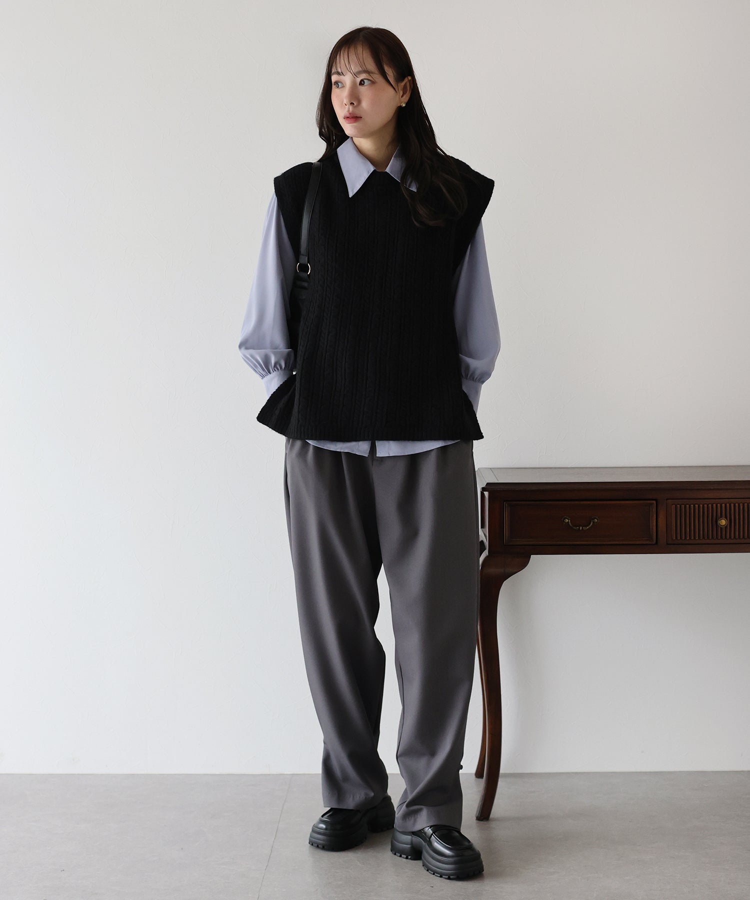 カットソーやシャツ、ブラウスなど、合わせるアイテムによって