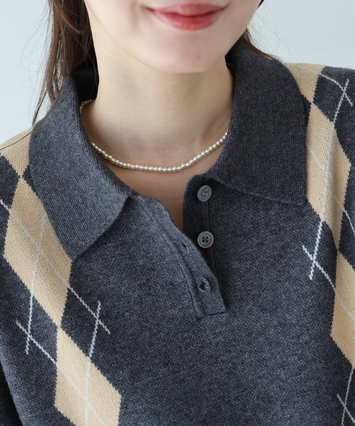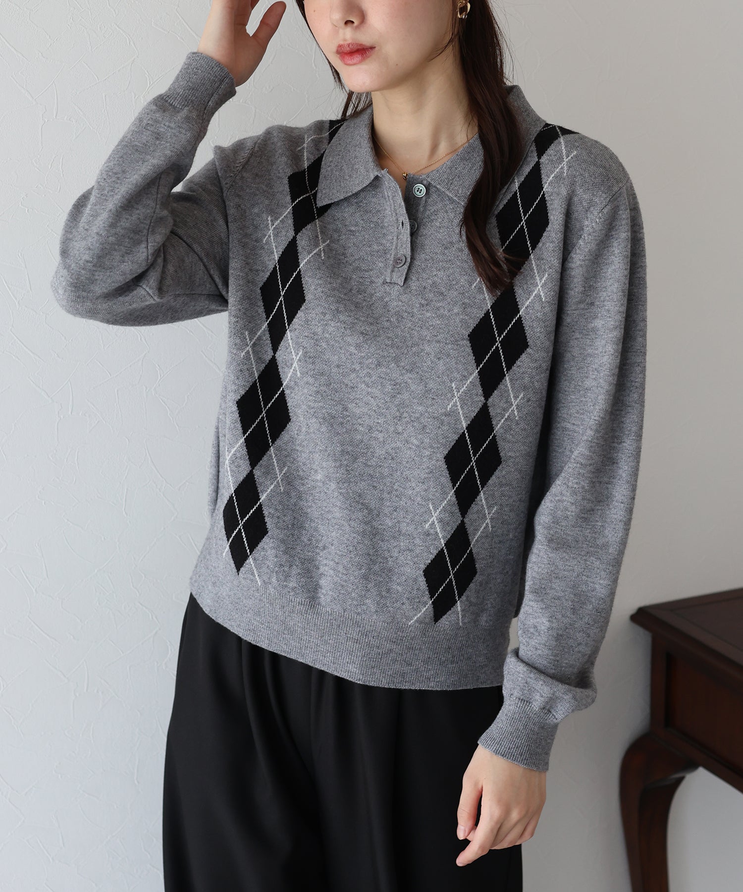 シーズンライクなアーガイル柄がクラシカルな印象のポロニット