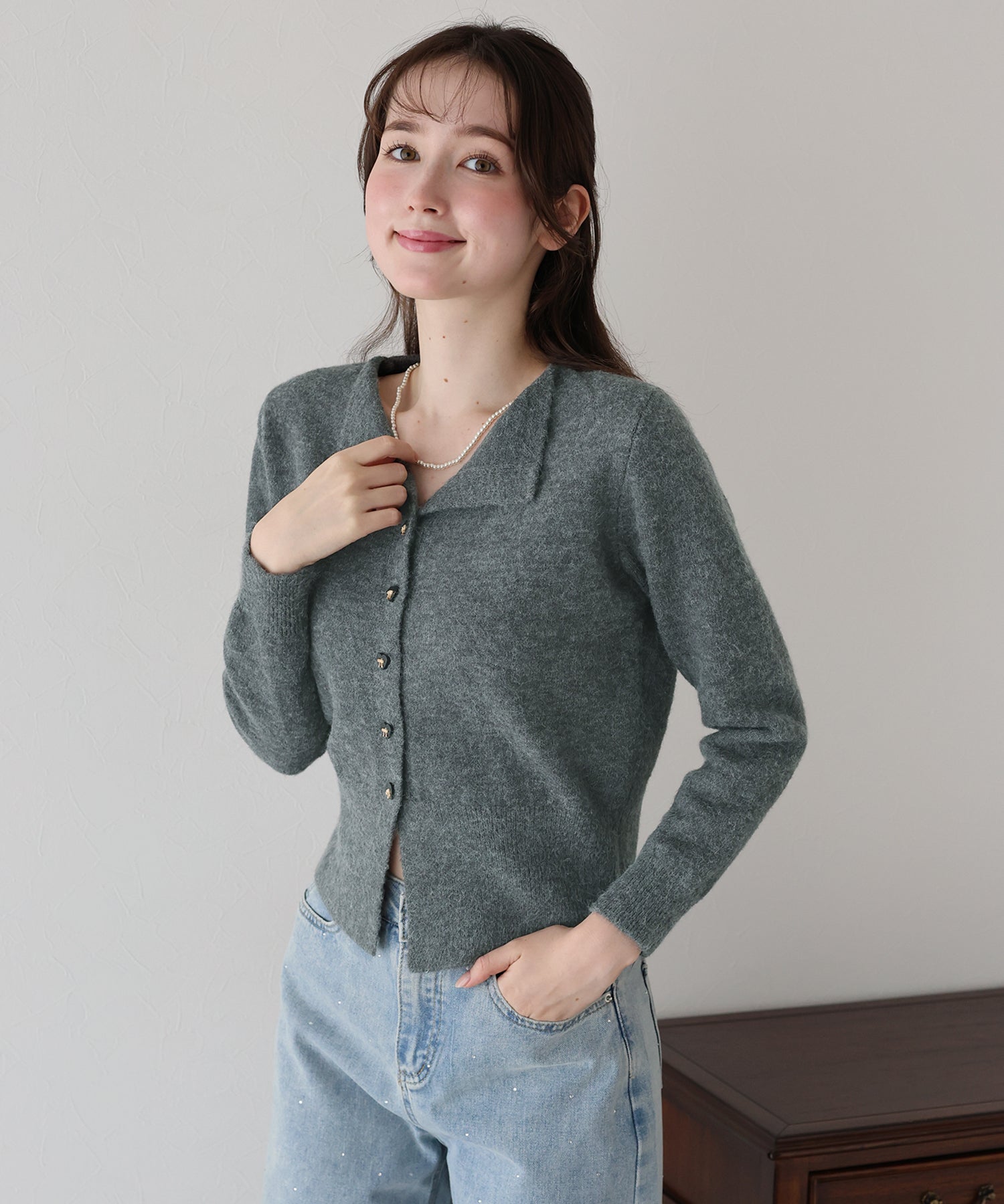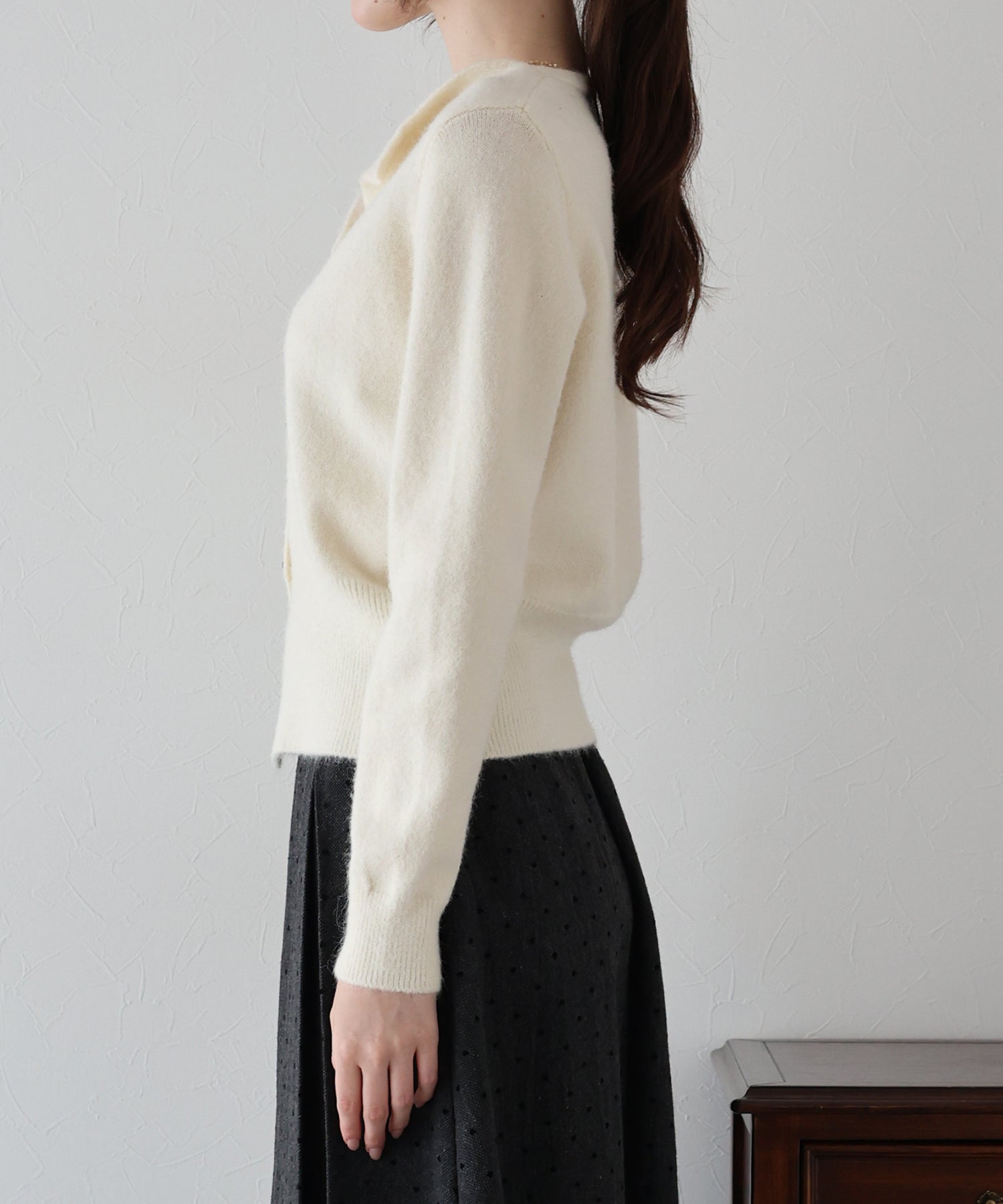 【早割5%OFF】ポロ襟ケーブルニットカーディガン