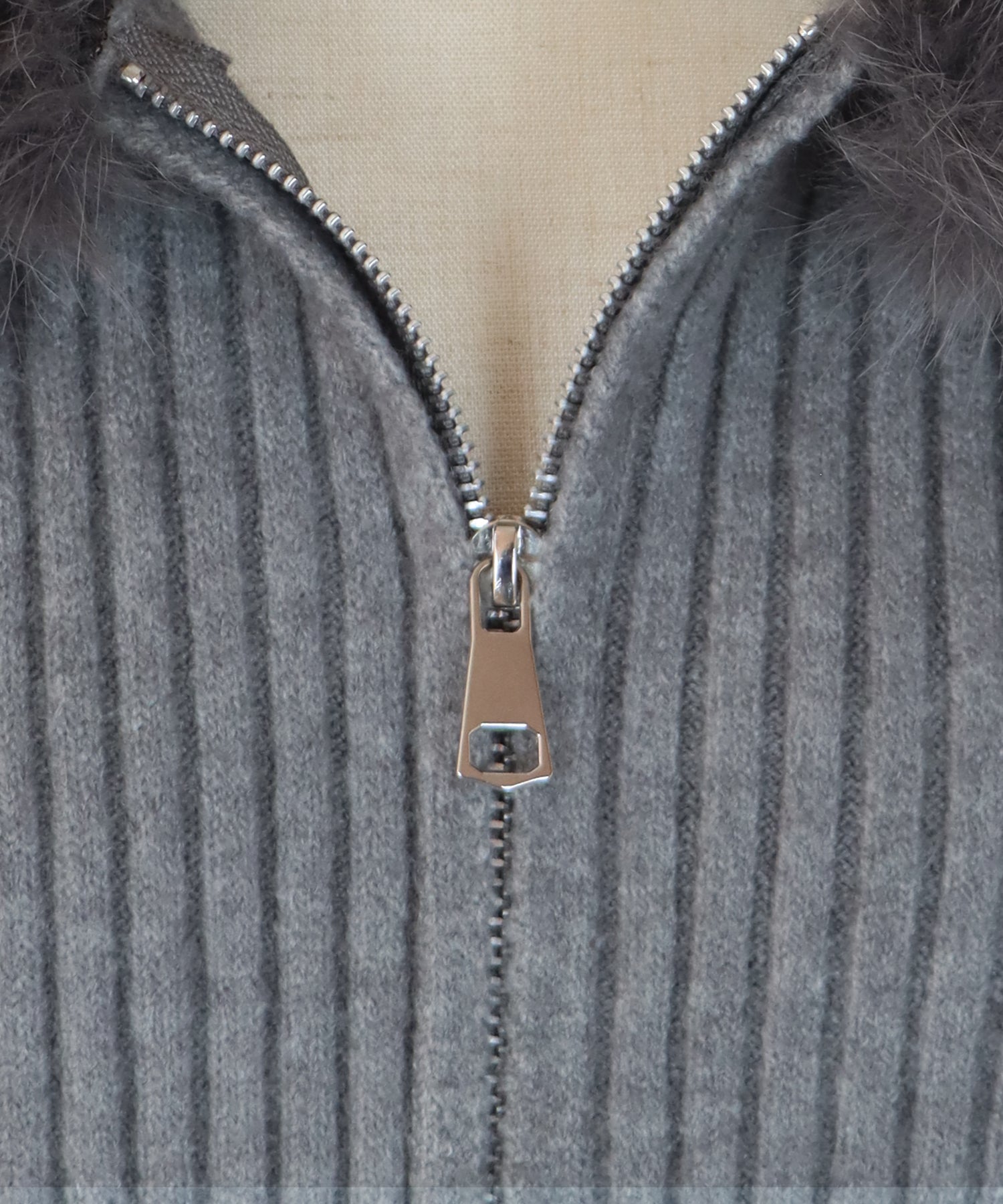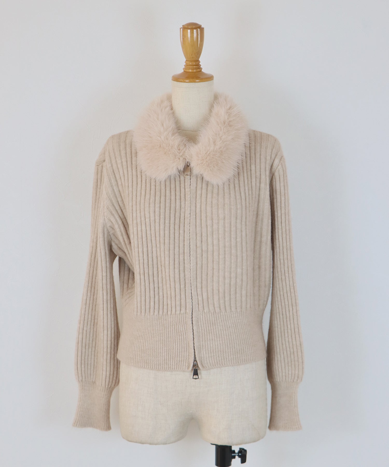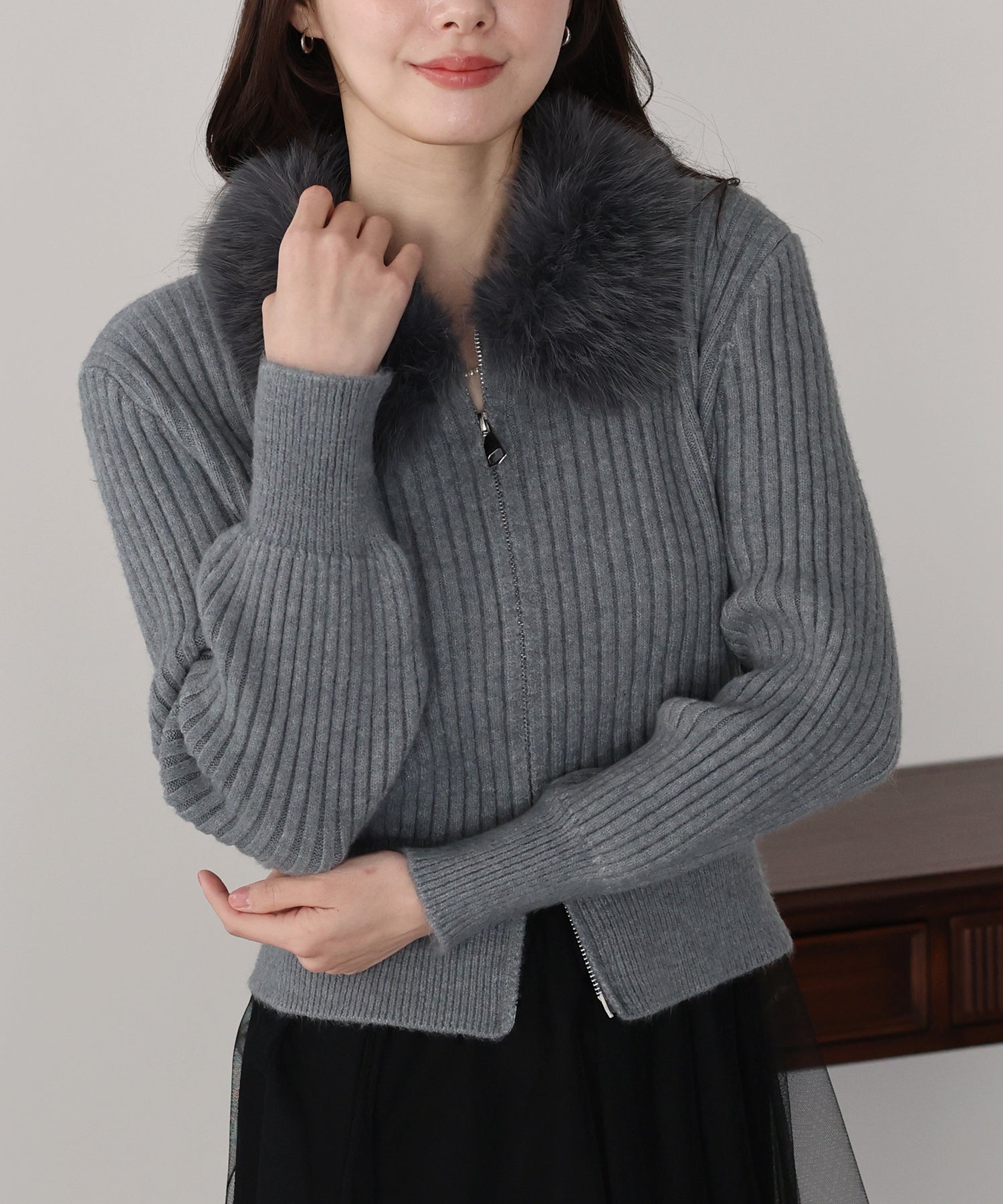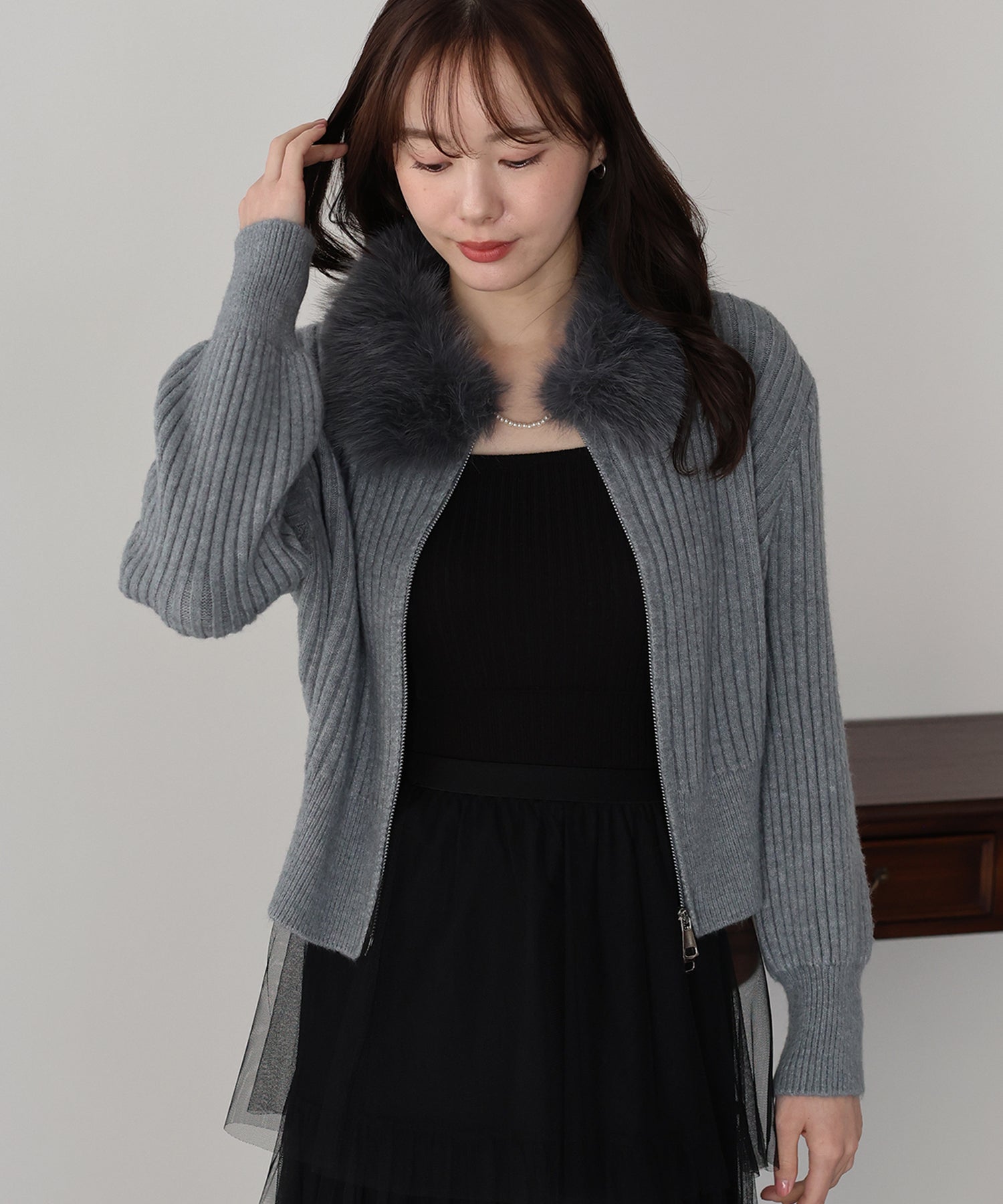 ボリューミーなファー襟が小顔見えを叶えるダブルジップニットカーディガン