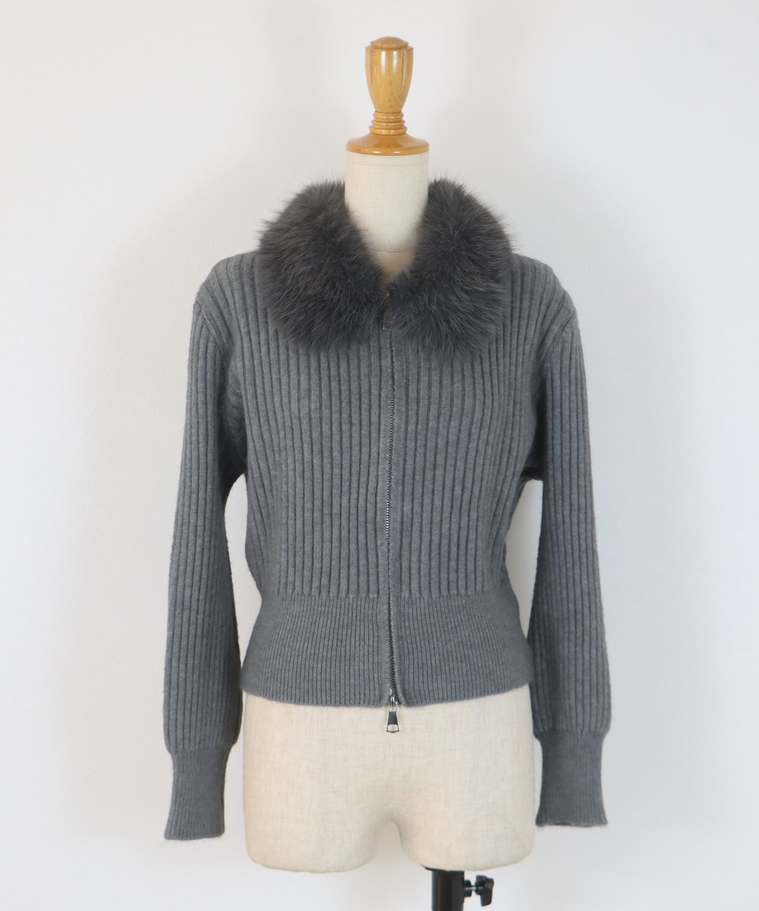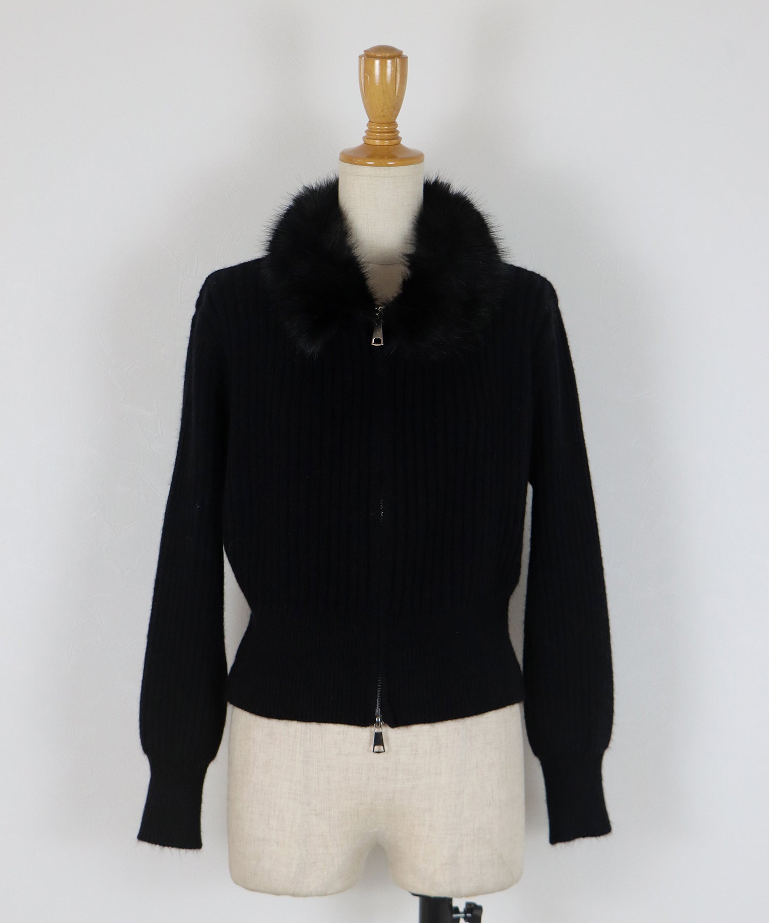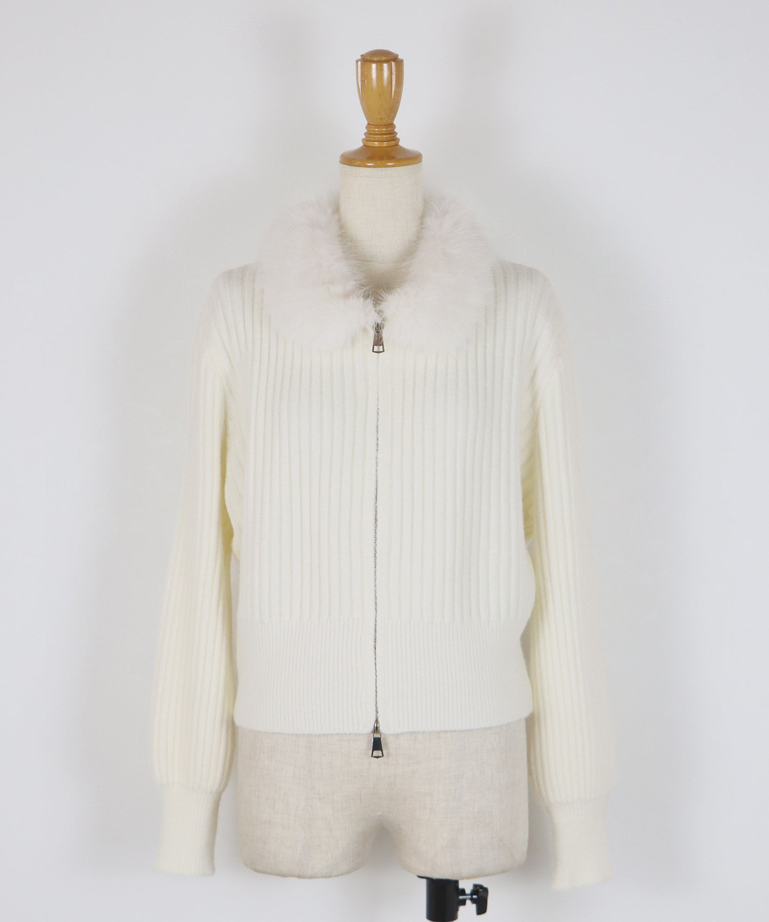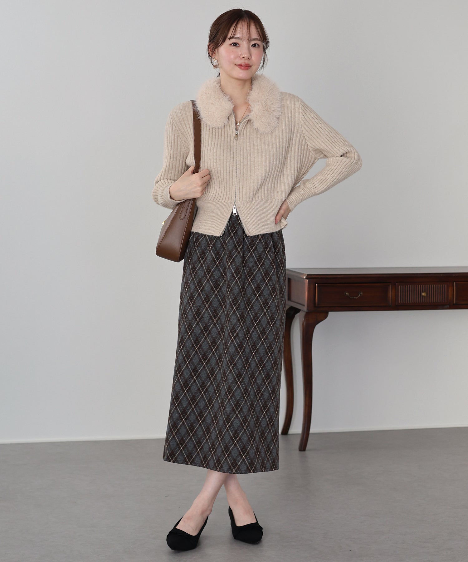 ボリューミーなファー襟が小顔見えを叶えるダブルジップニットカーディガン