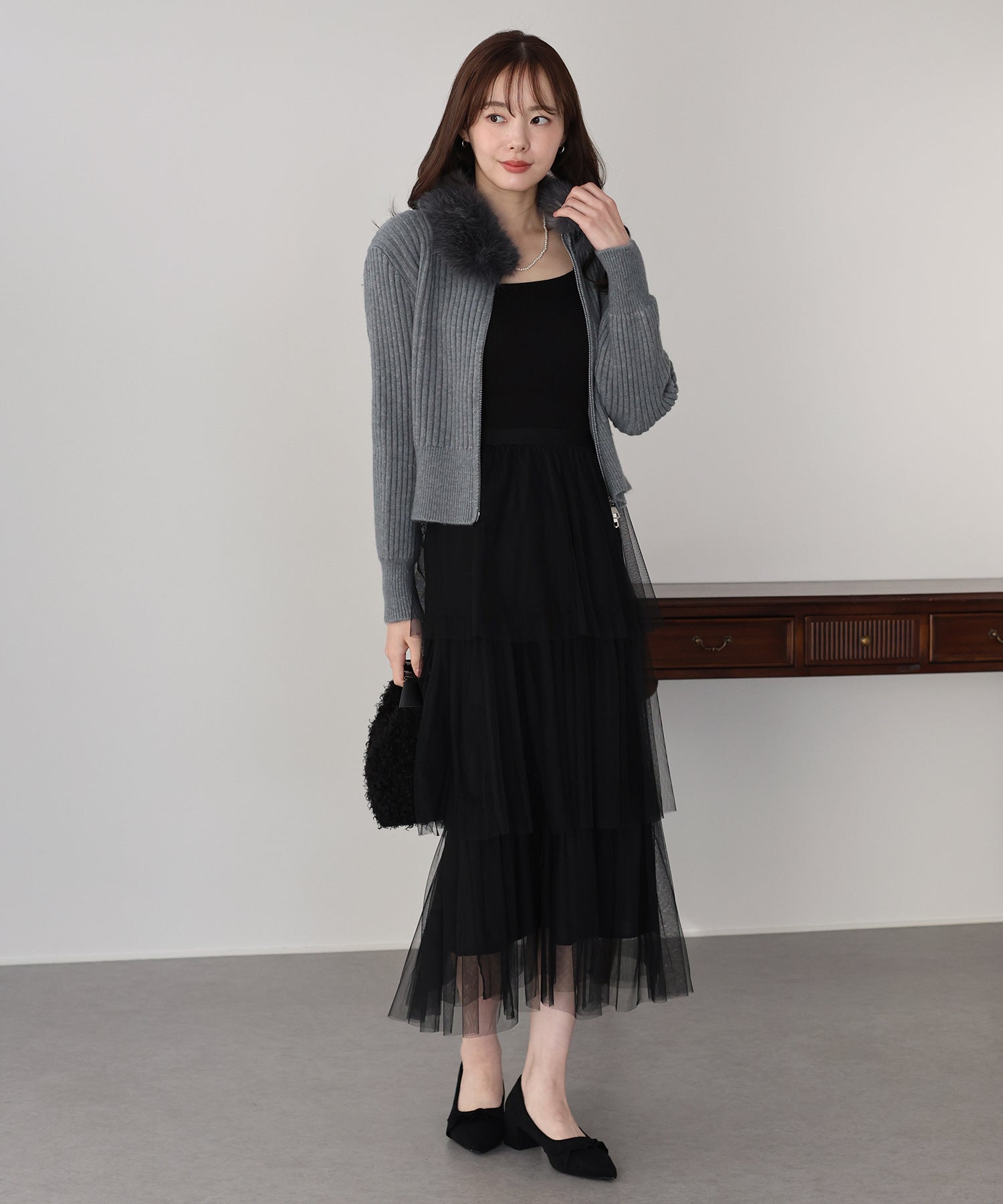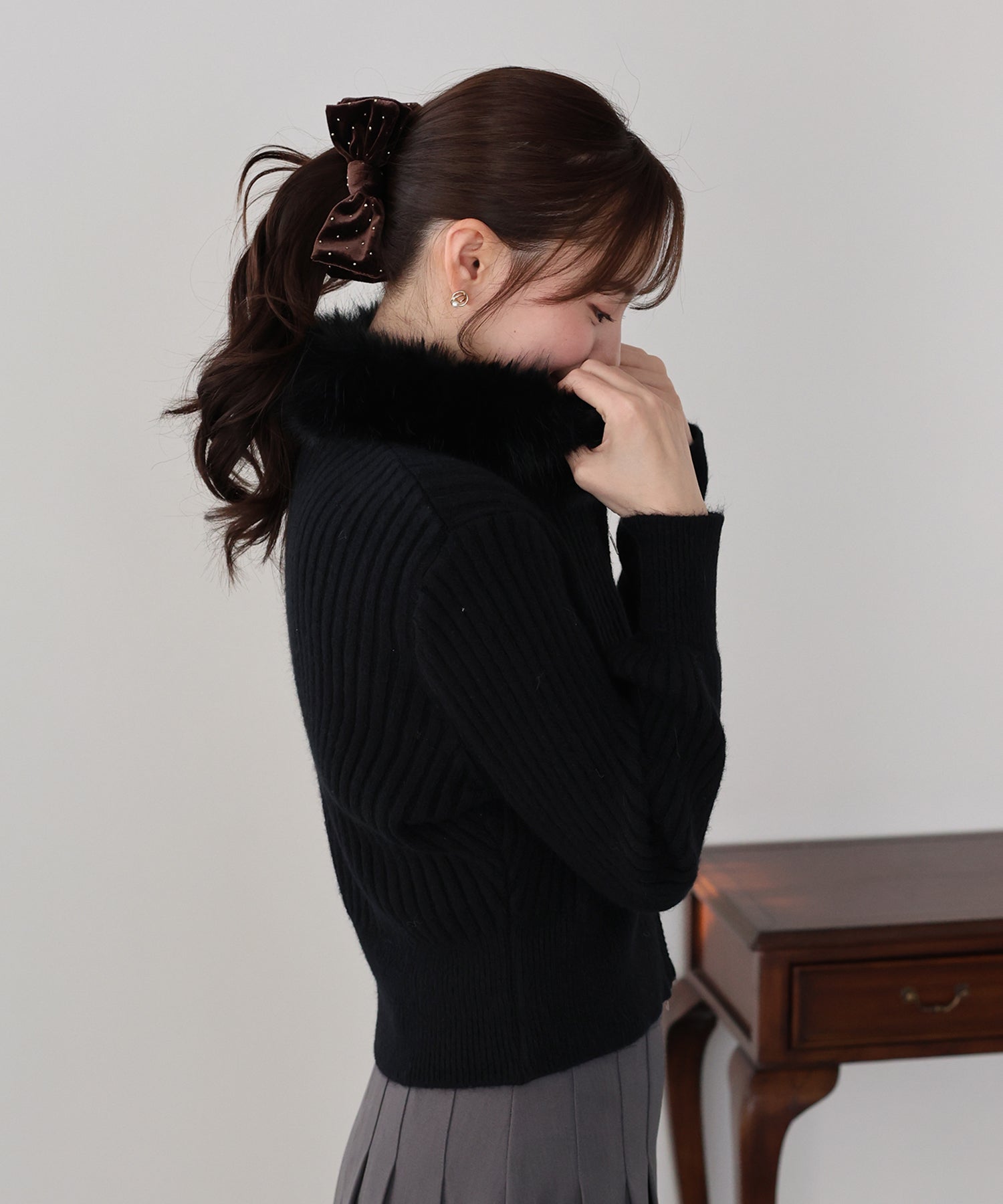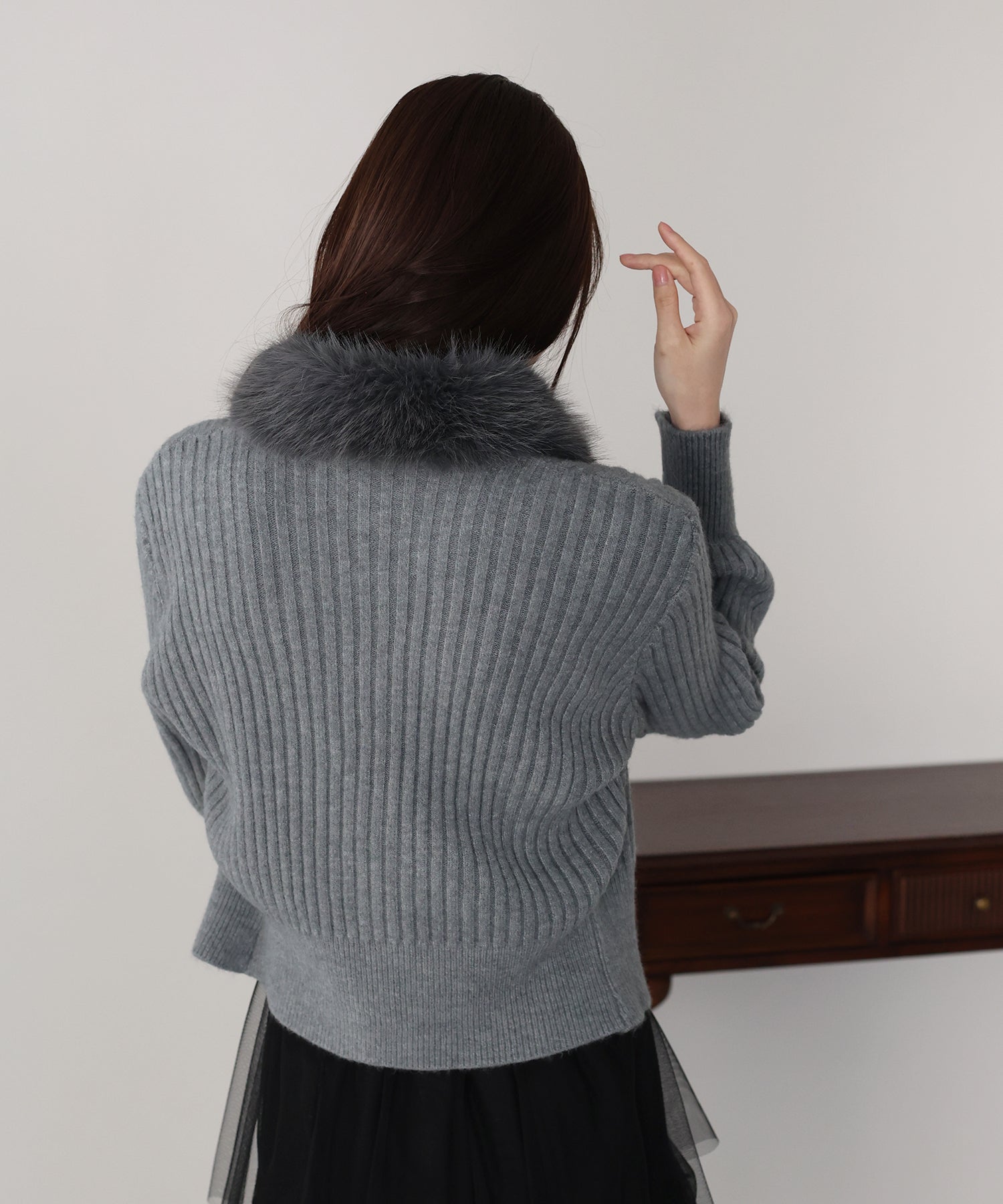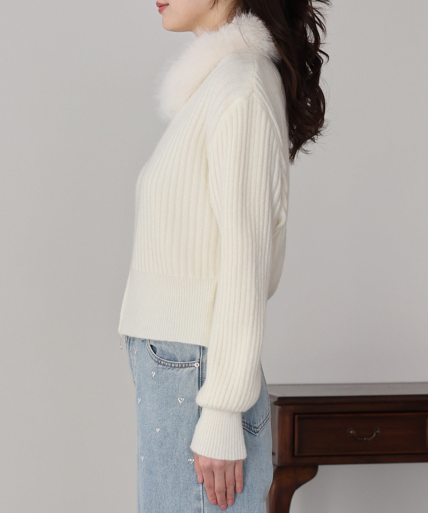 ふわふわのファー襟が目を惹く、季節感たっぷりのニットカーディガン。