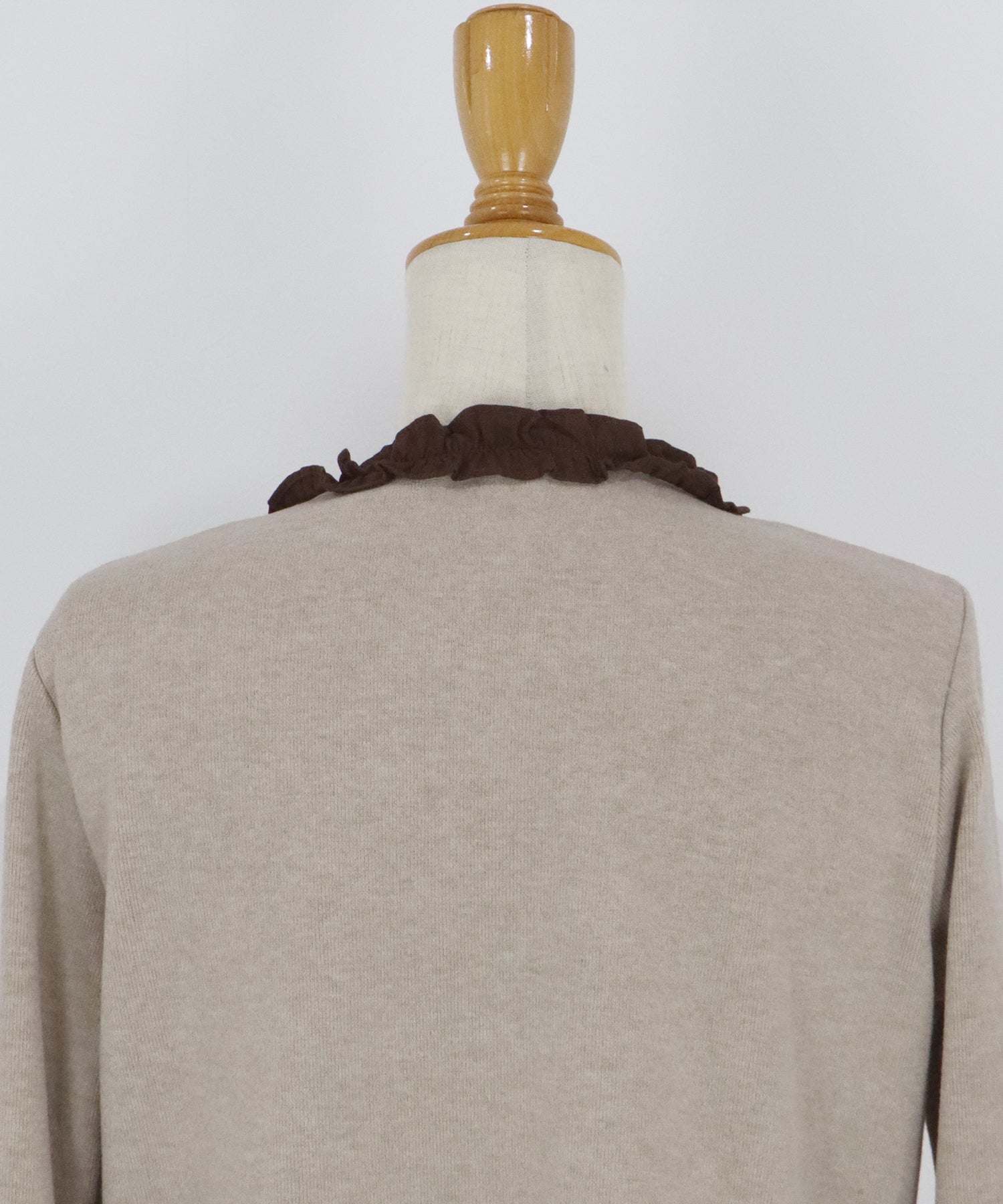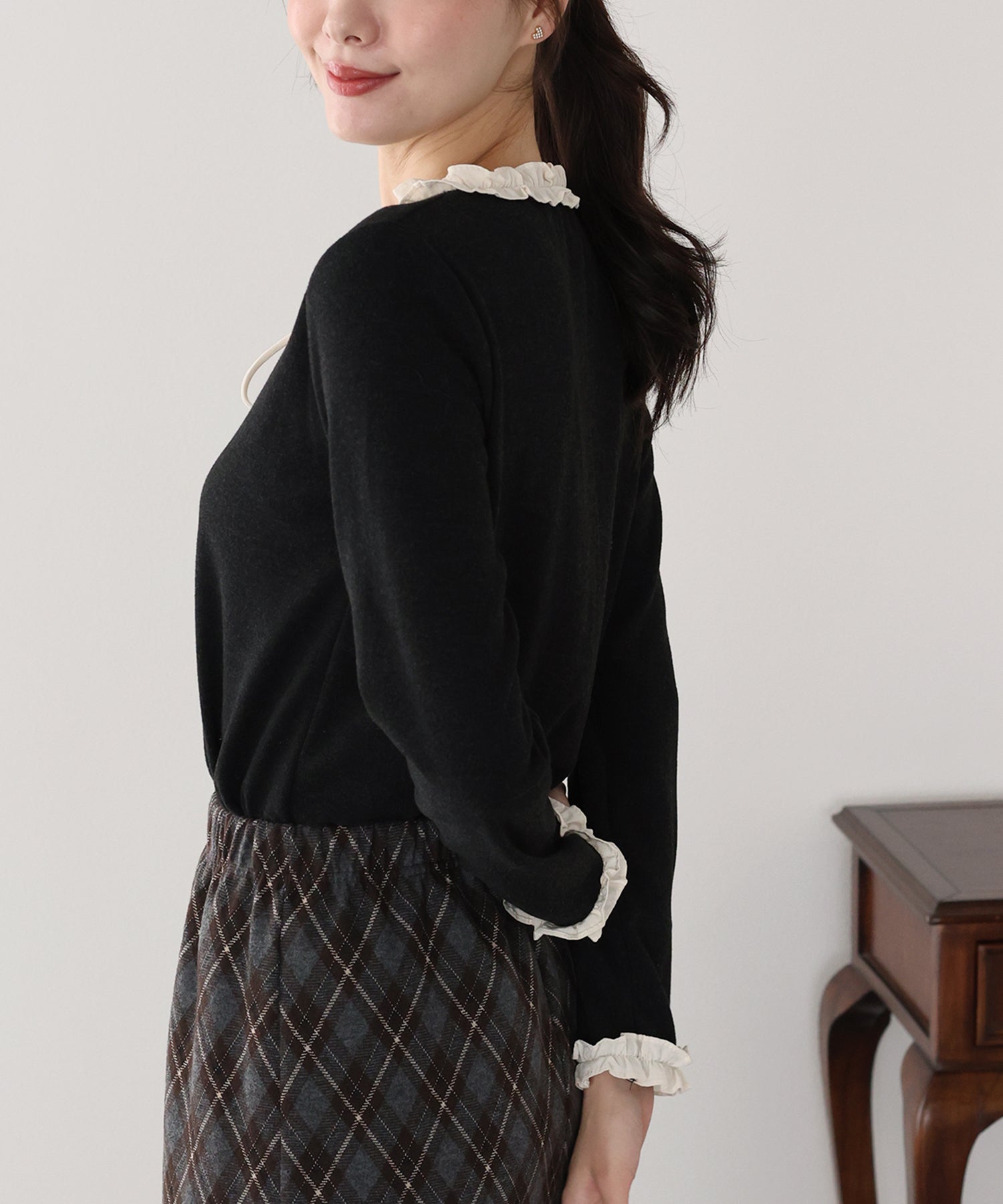 ニットとフリルのバイカラーが華やかで、1枚着るだけで可愛い印象に。