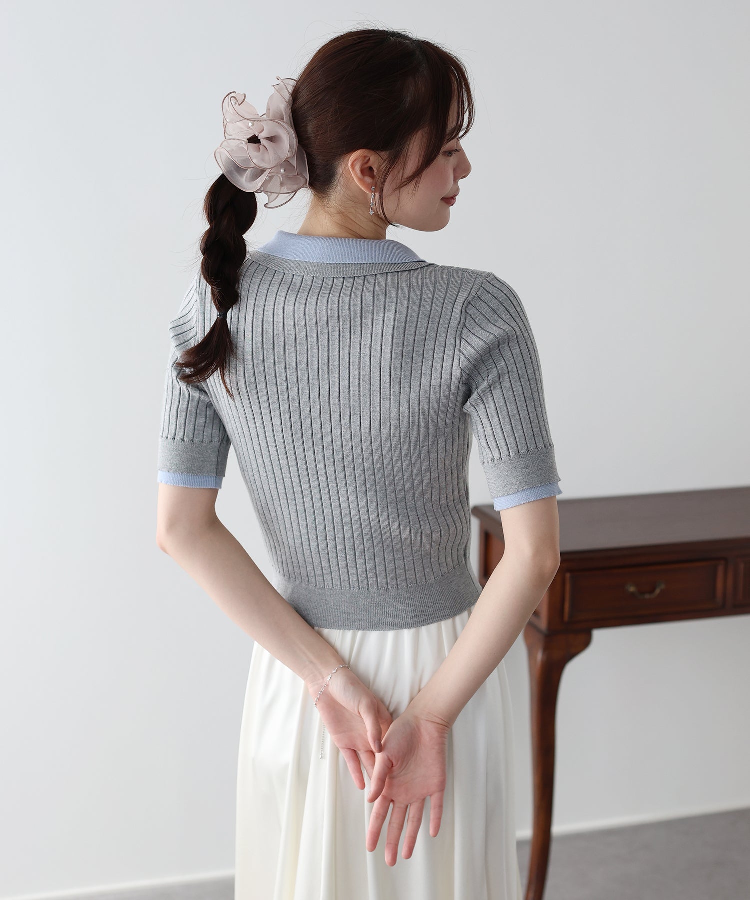 身体にフィットするシルエットと伸縮性のあるリブ編みで華奢見せ効果をプラス。
