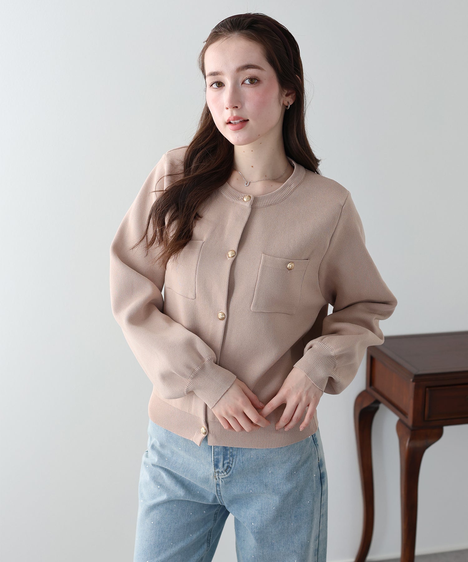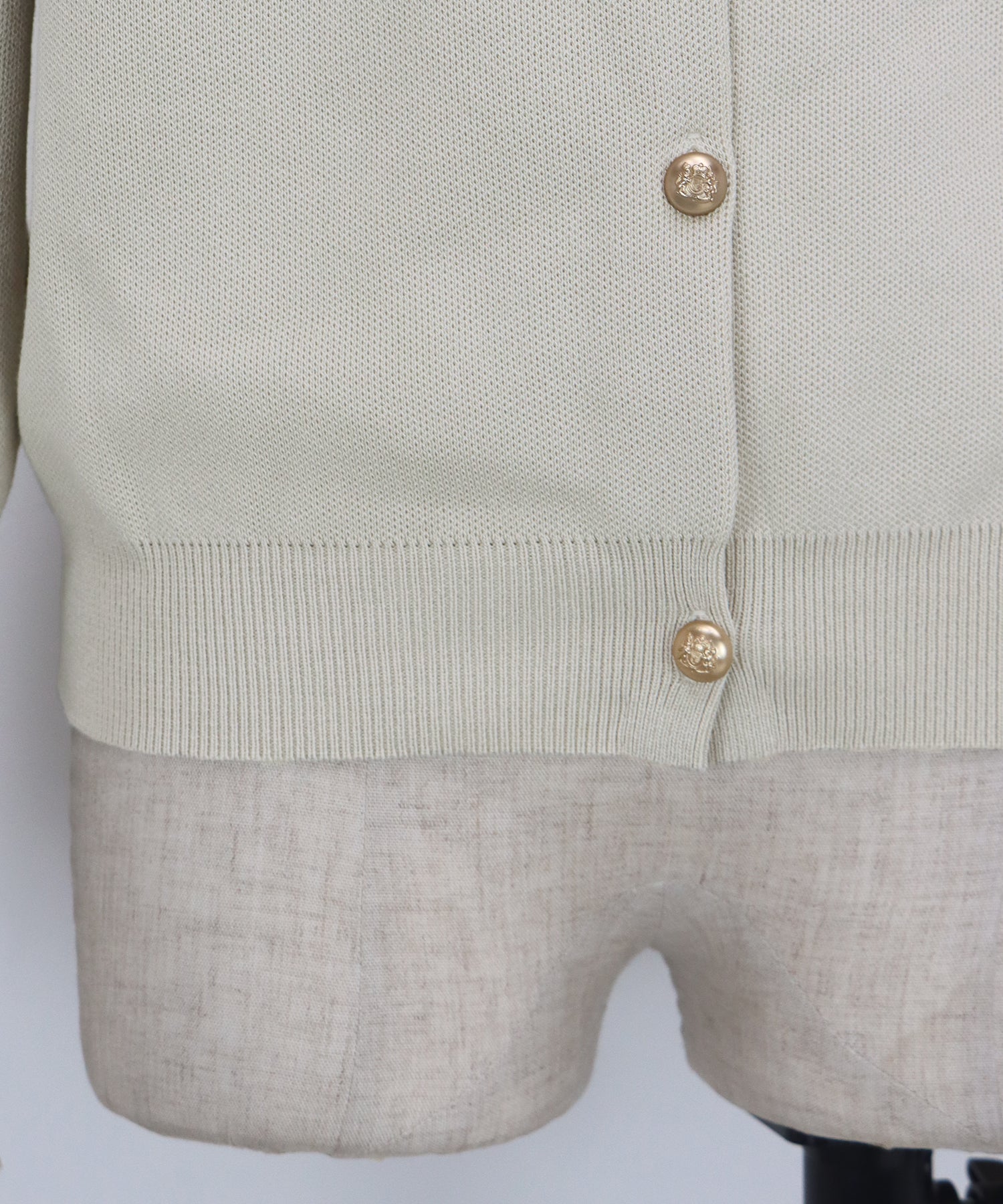 程よい肉厚感のあるニット素材とクラシカルなゴールドボタンの輝きが、デイリースタイルにリッチな品の良さをプラス。