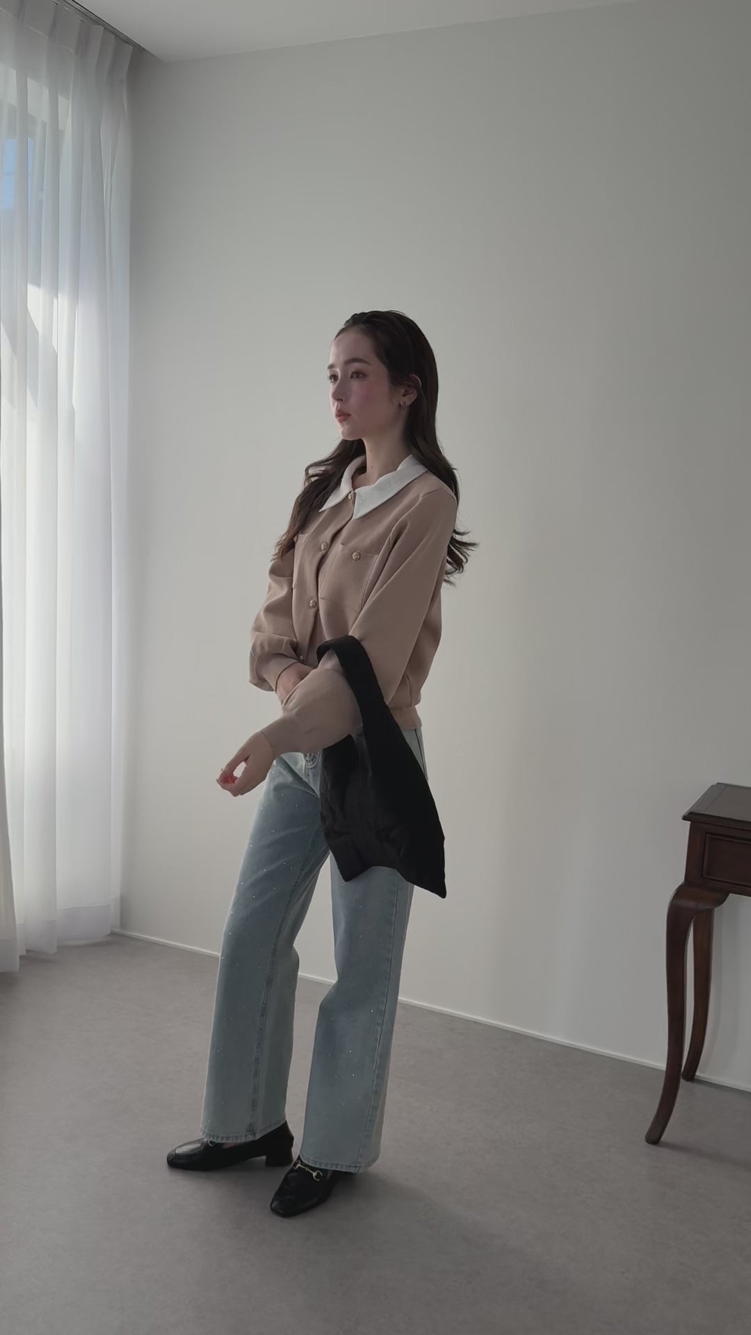 デニム合わせでカジュアルダウンさせてデイリースタイルにもおすすめ。
