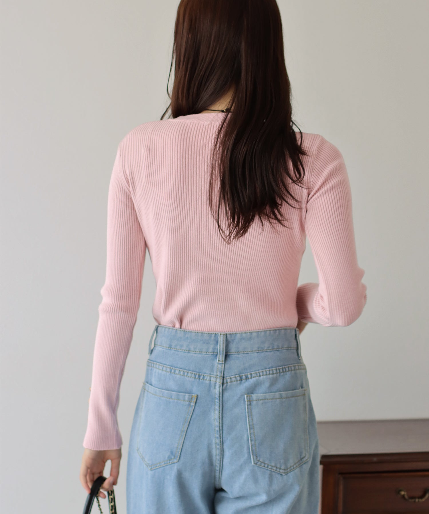 秋冬のワードローブに欠かせない、ベーシックなリブニットトップス。