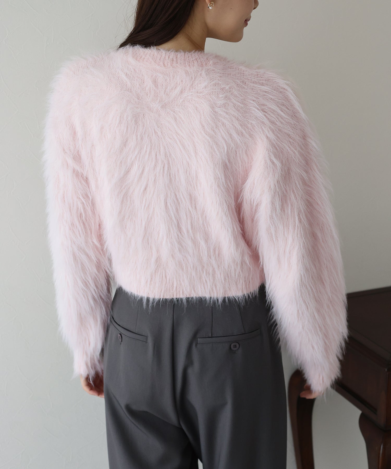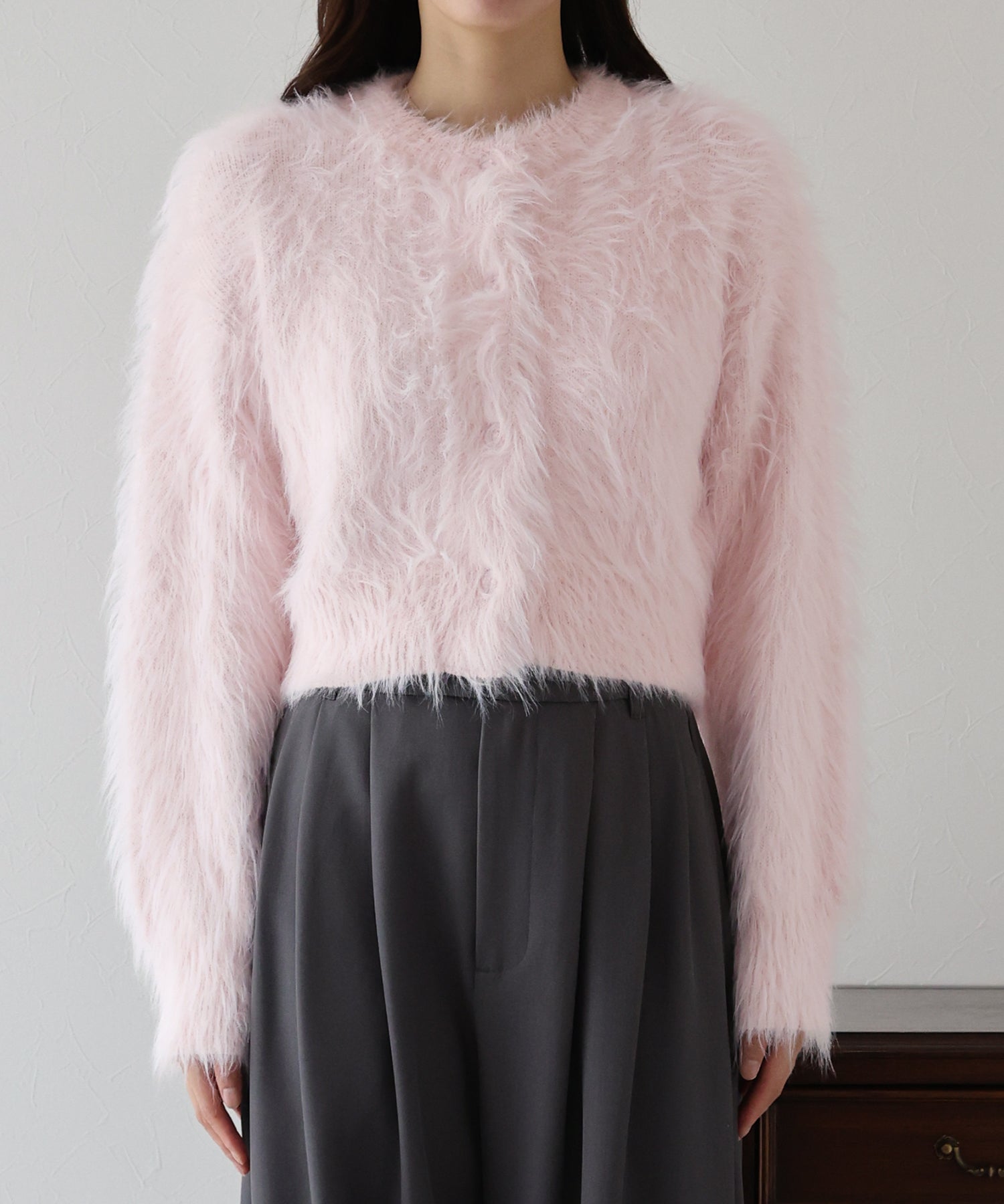 | 生地 | 毛足の長いシャギーニット素材 厚さ:普通 透け感:なし 伸縮性:あり |