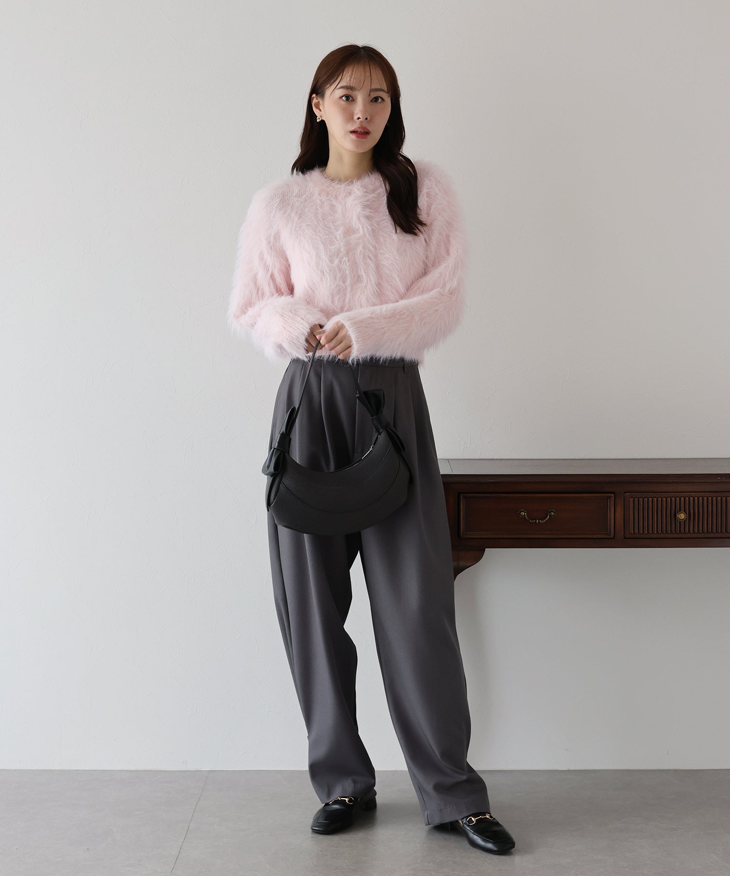 長めの毛並みで存在感が出るシャギーニットなのでシンプルなボトムスと合わせるとバランスの取れたコーデに◎