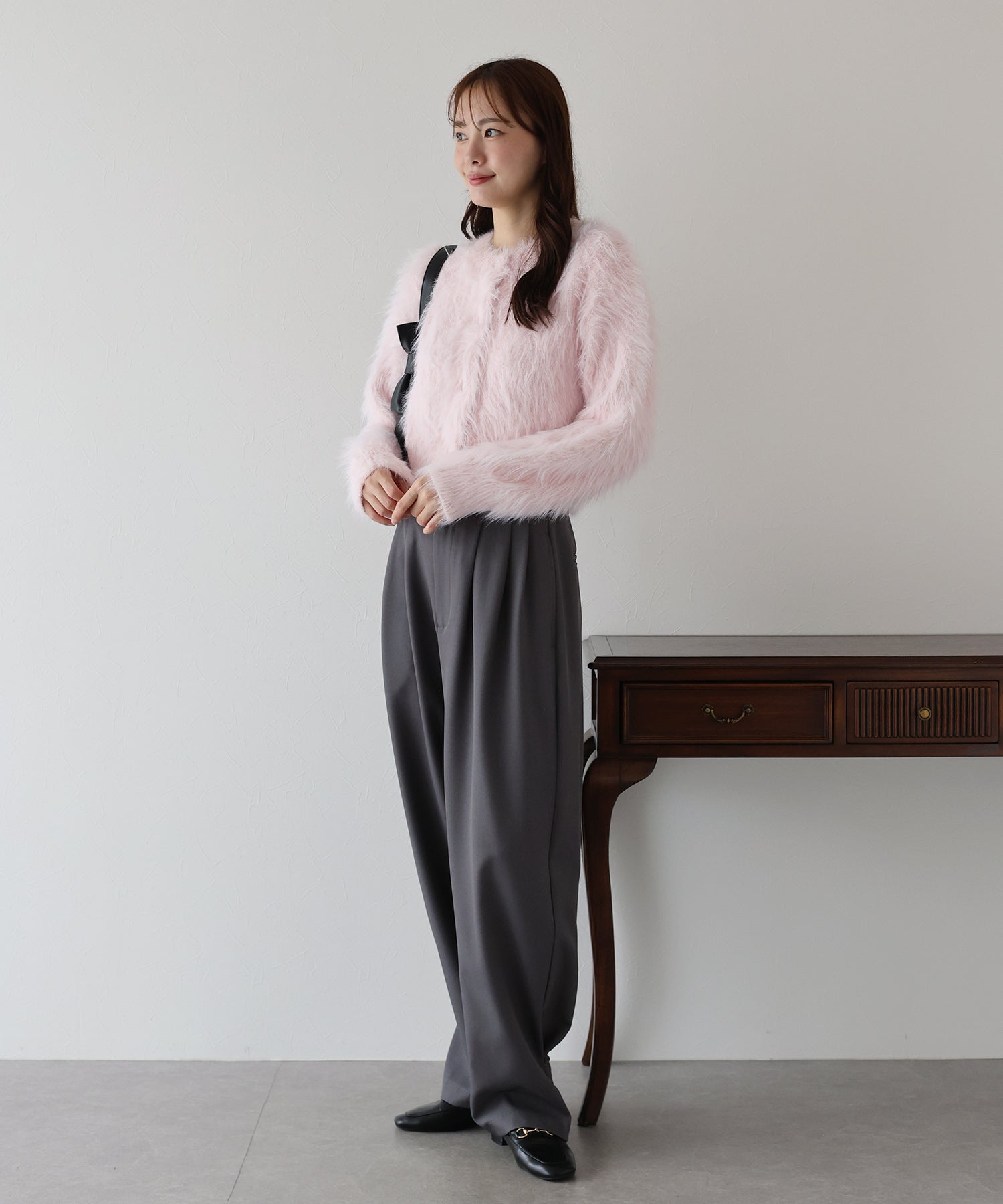 生地 | 毛足の長いシャギーニット素材 厚さ:普通 透け感:なし 伸縮性:あり |
