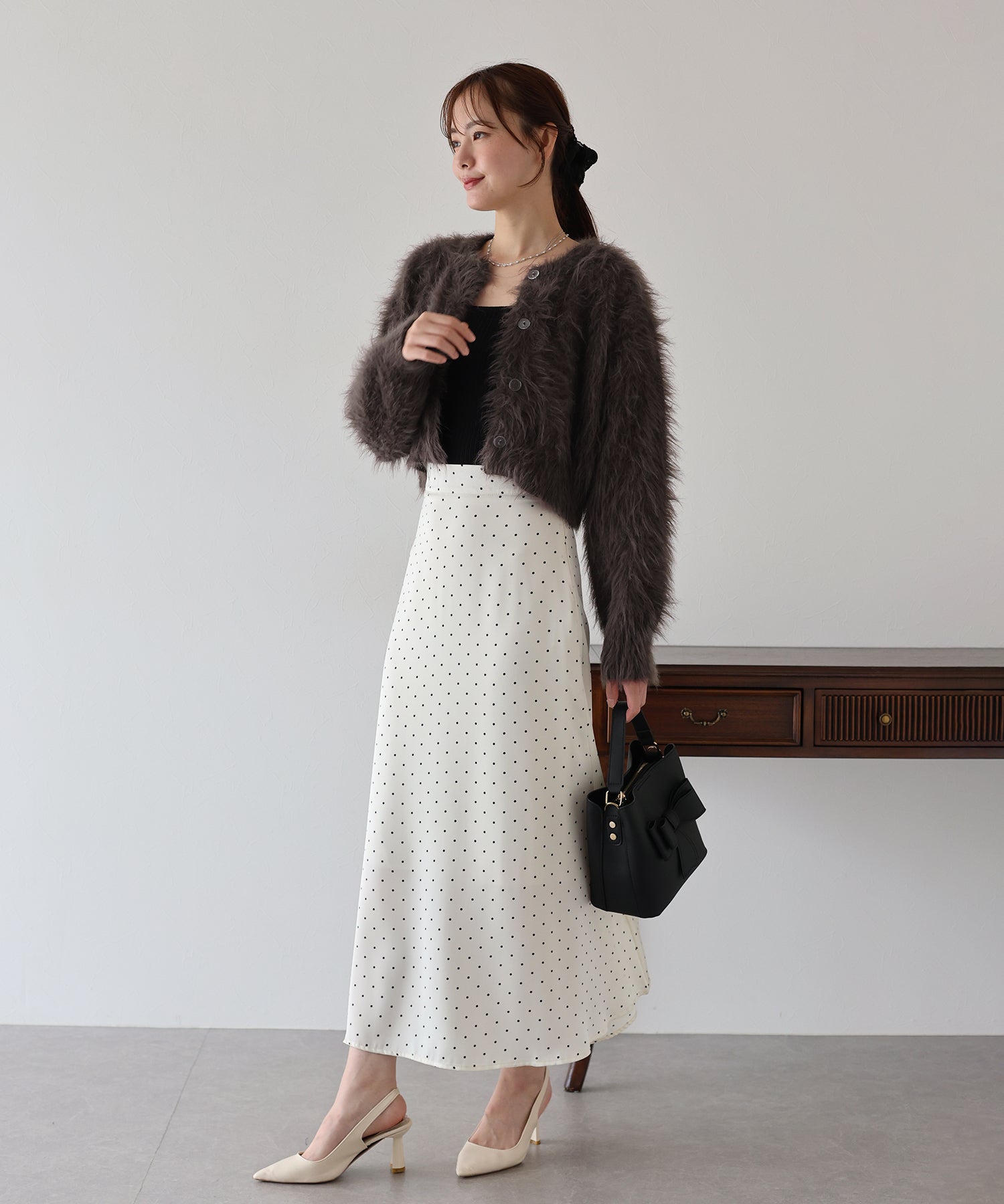 ふんわりとした長めの毛足が、コーデを上品かつ華やかに魅せてくれるアイテム。