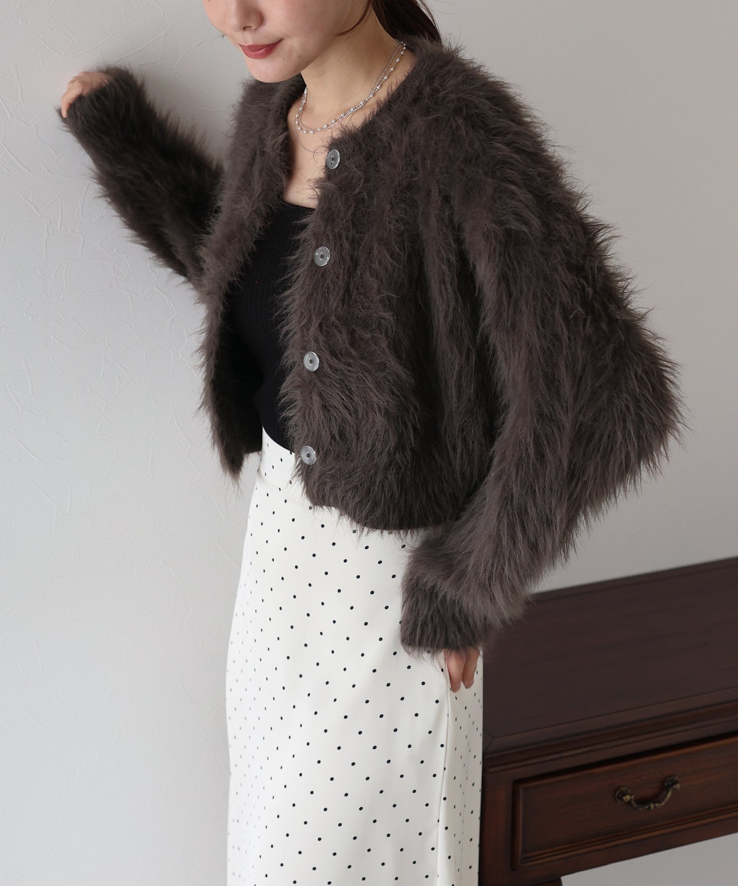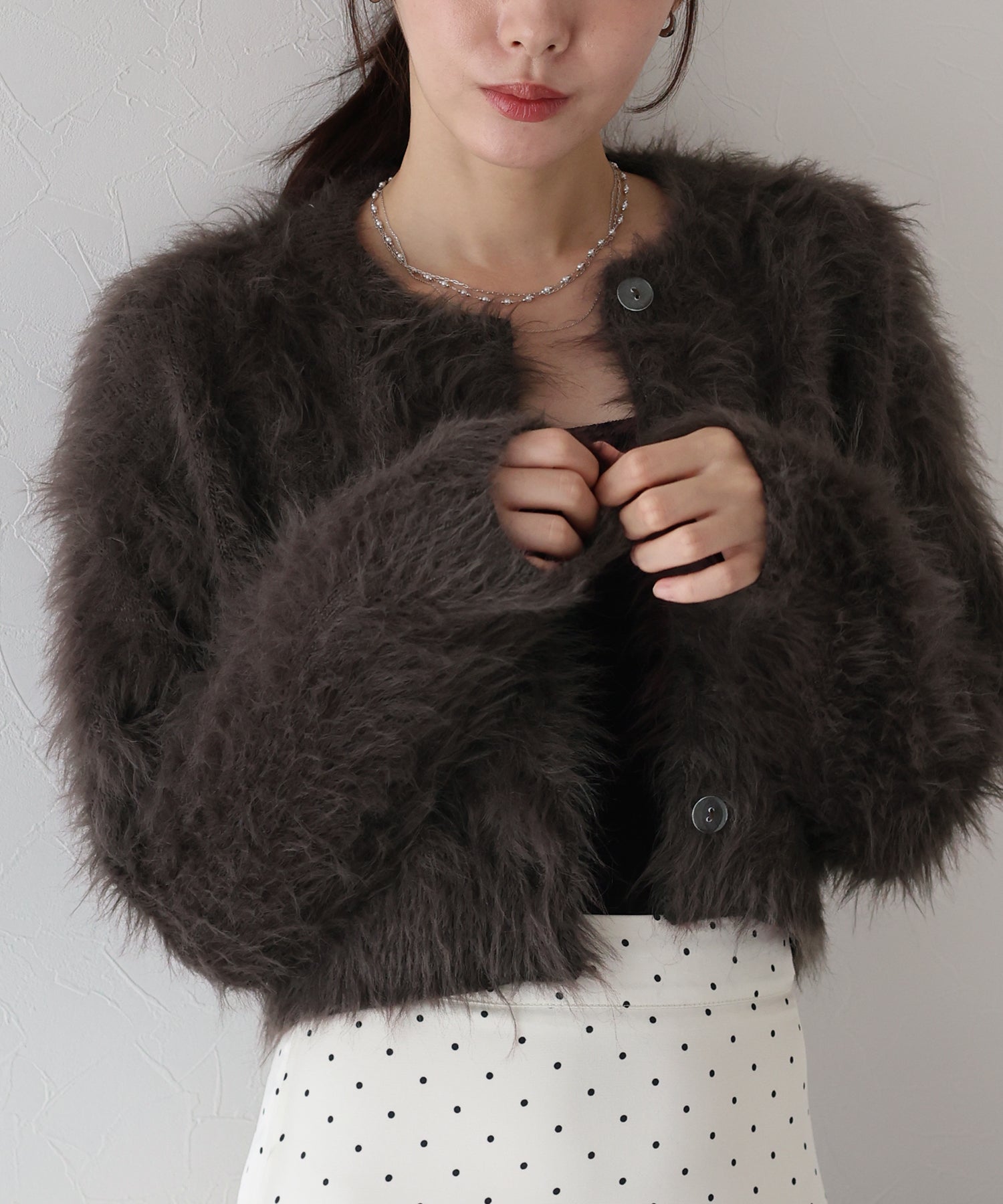 着るだけでシーズンムードを高めてくれるシャギーカーディガン