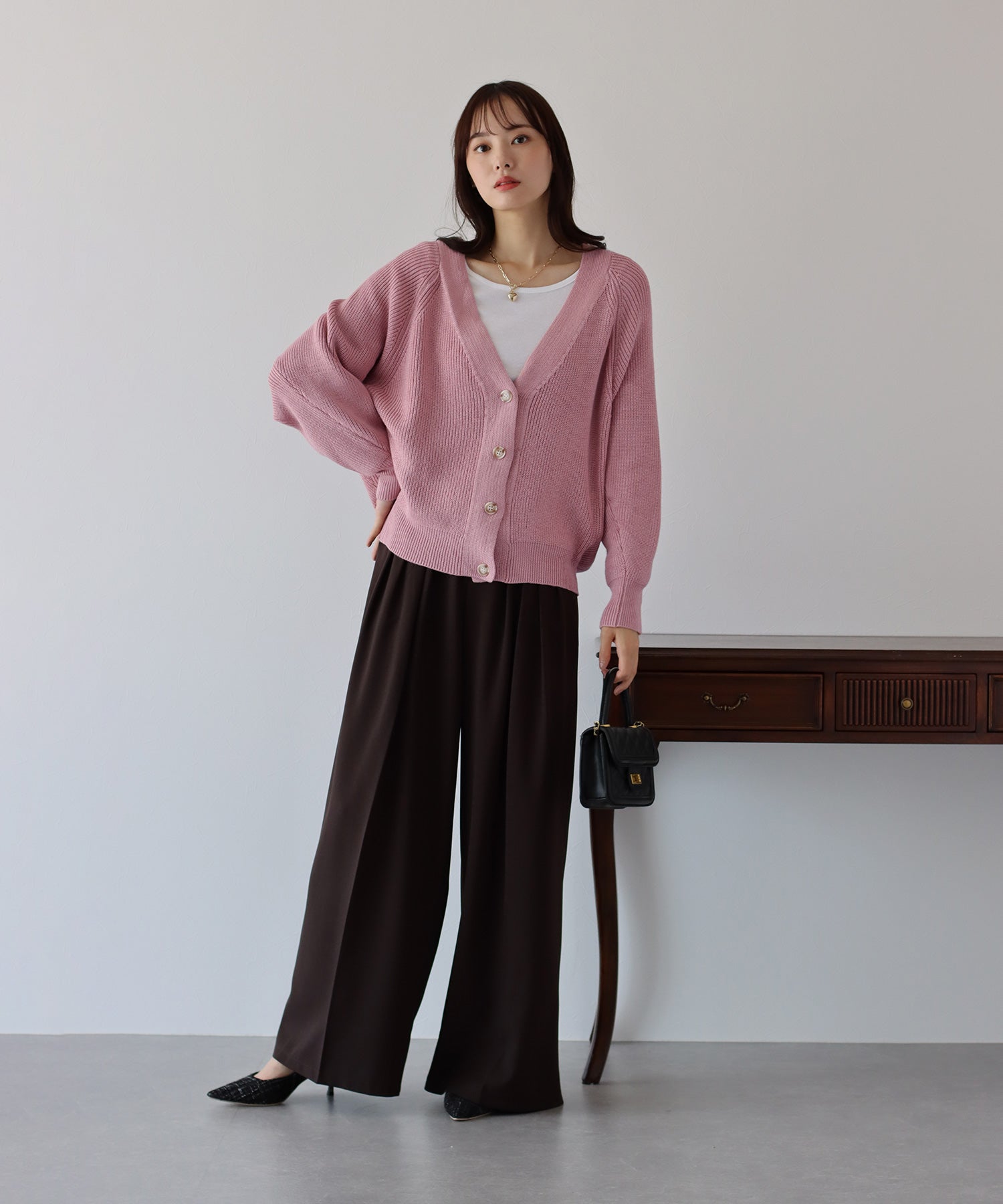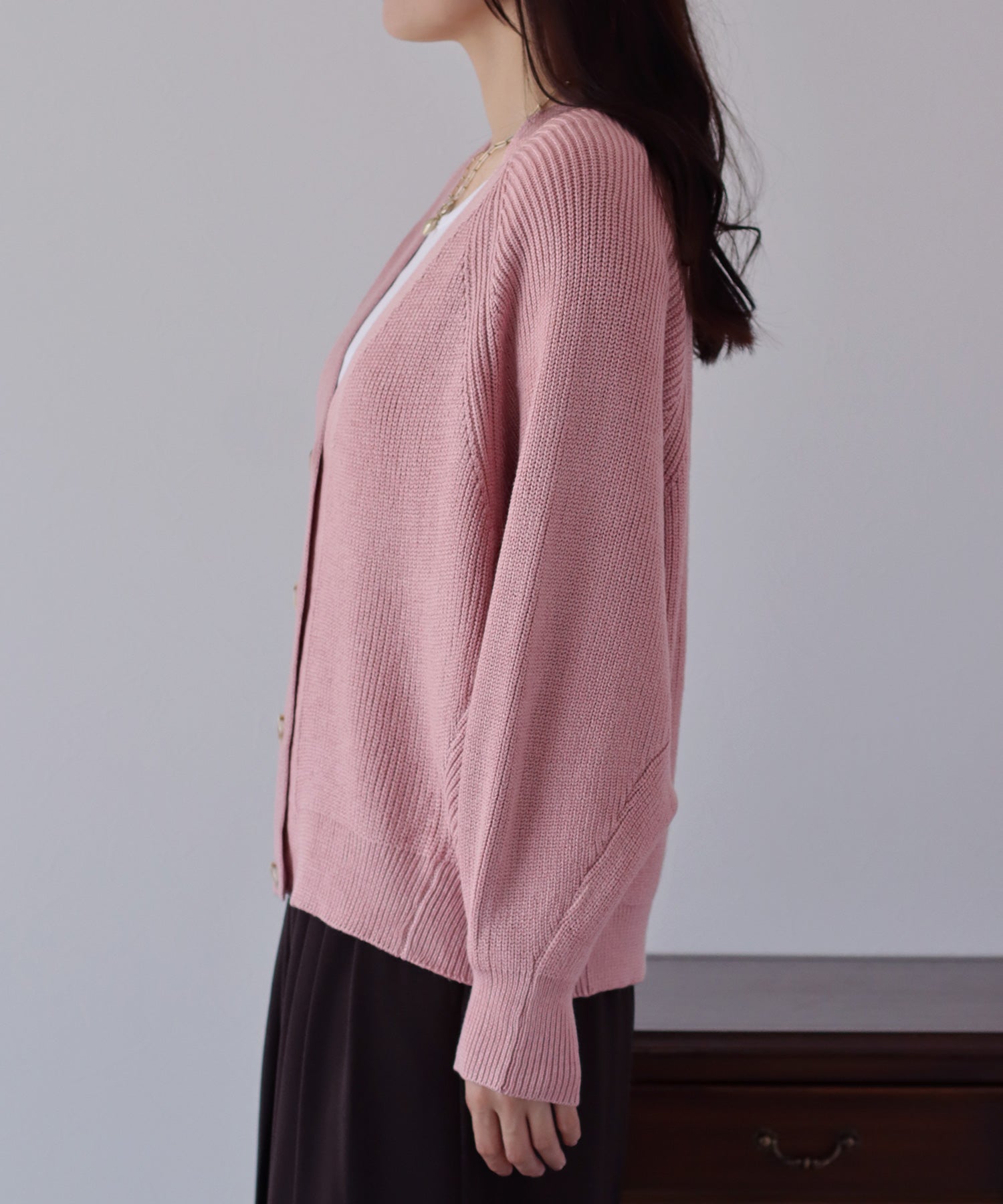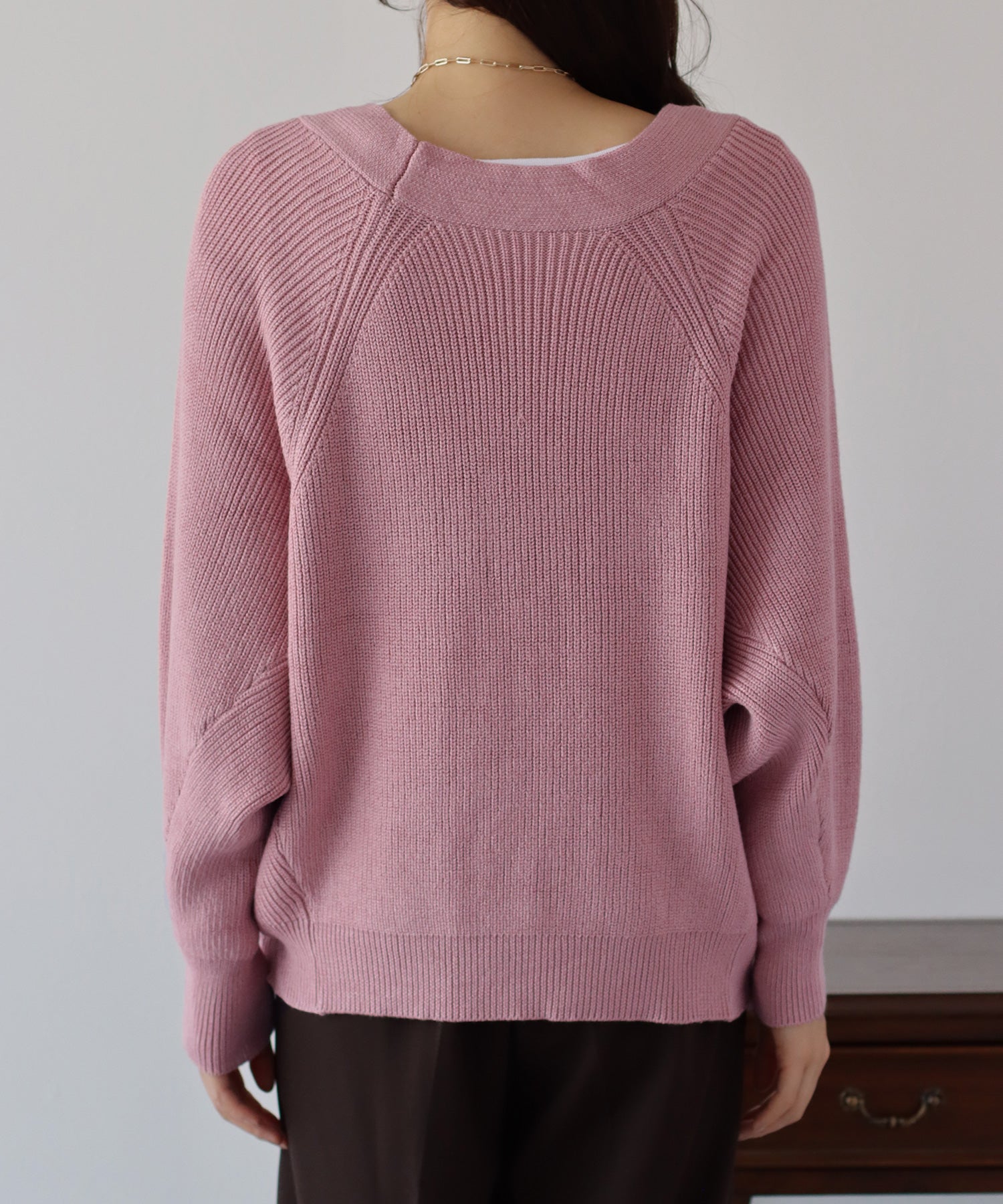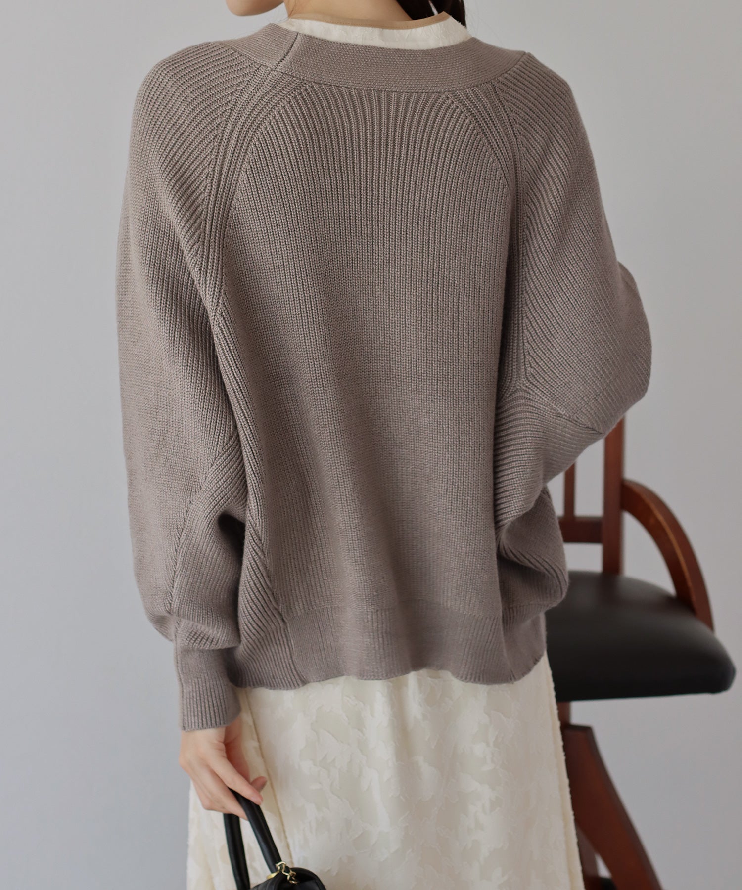 深めのVネックデザインで首元がスッキリ見えるのも嬉しいポイント。