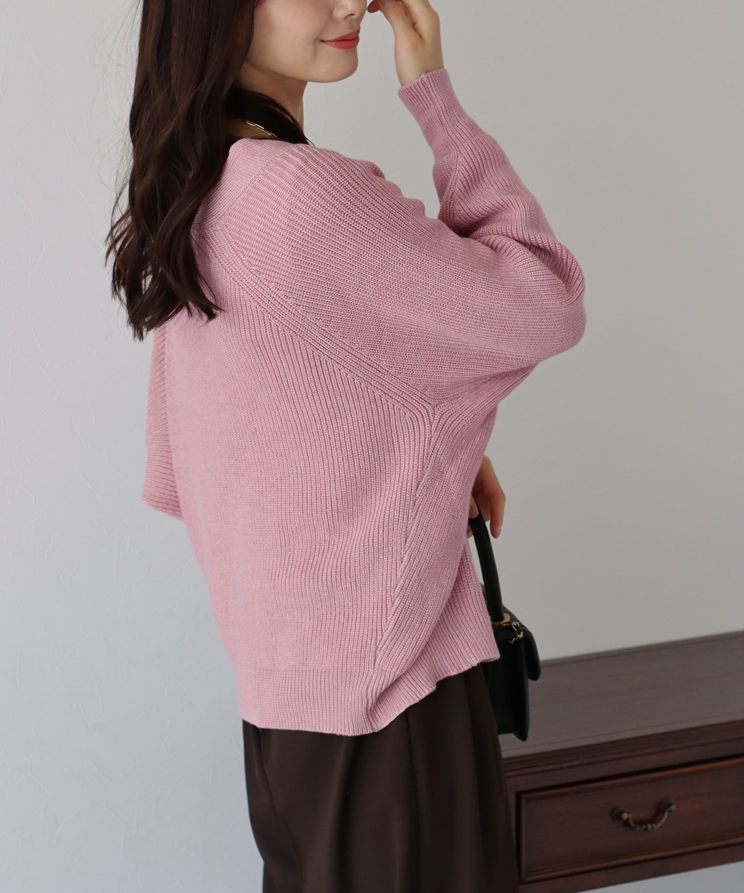 | 生地 | なめらかな手触りのニット素材 厚さ:普通 透け感:なし 伸縮性:あり |