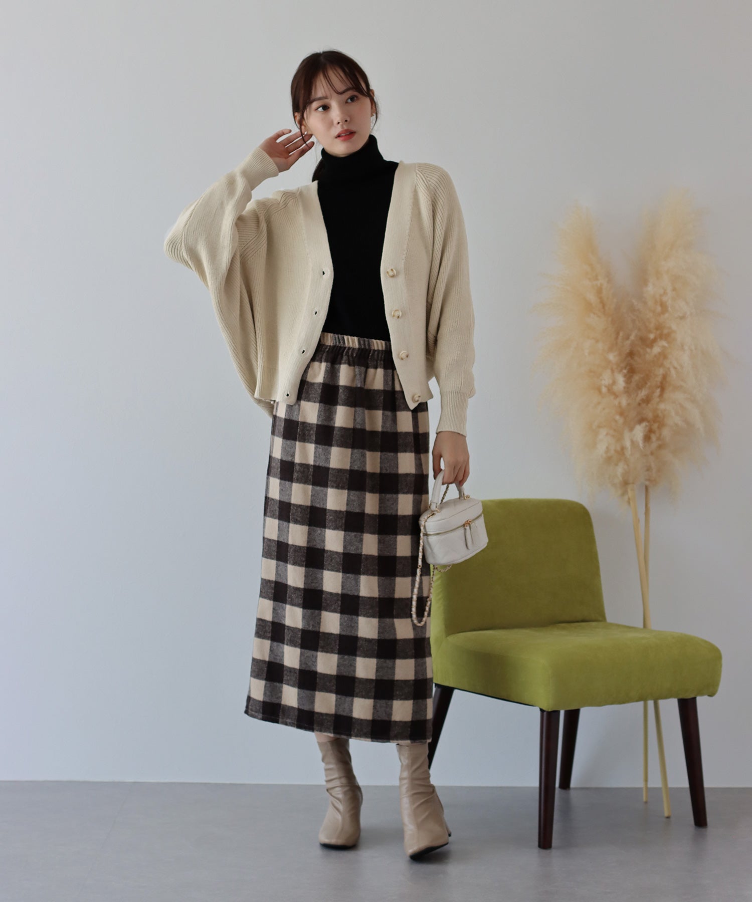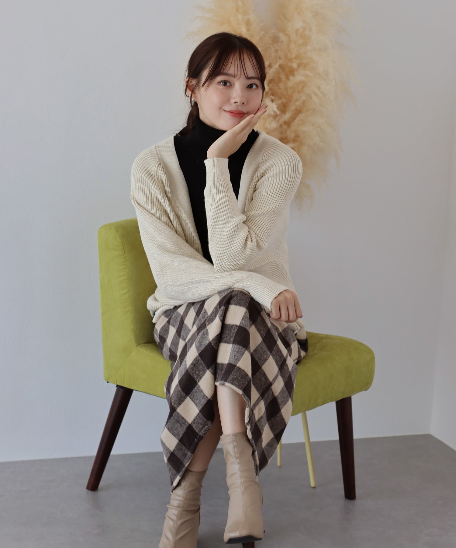 【TIME SALE】選べる2丈・チェックジャガードニットワンピース