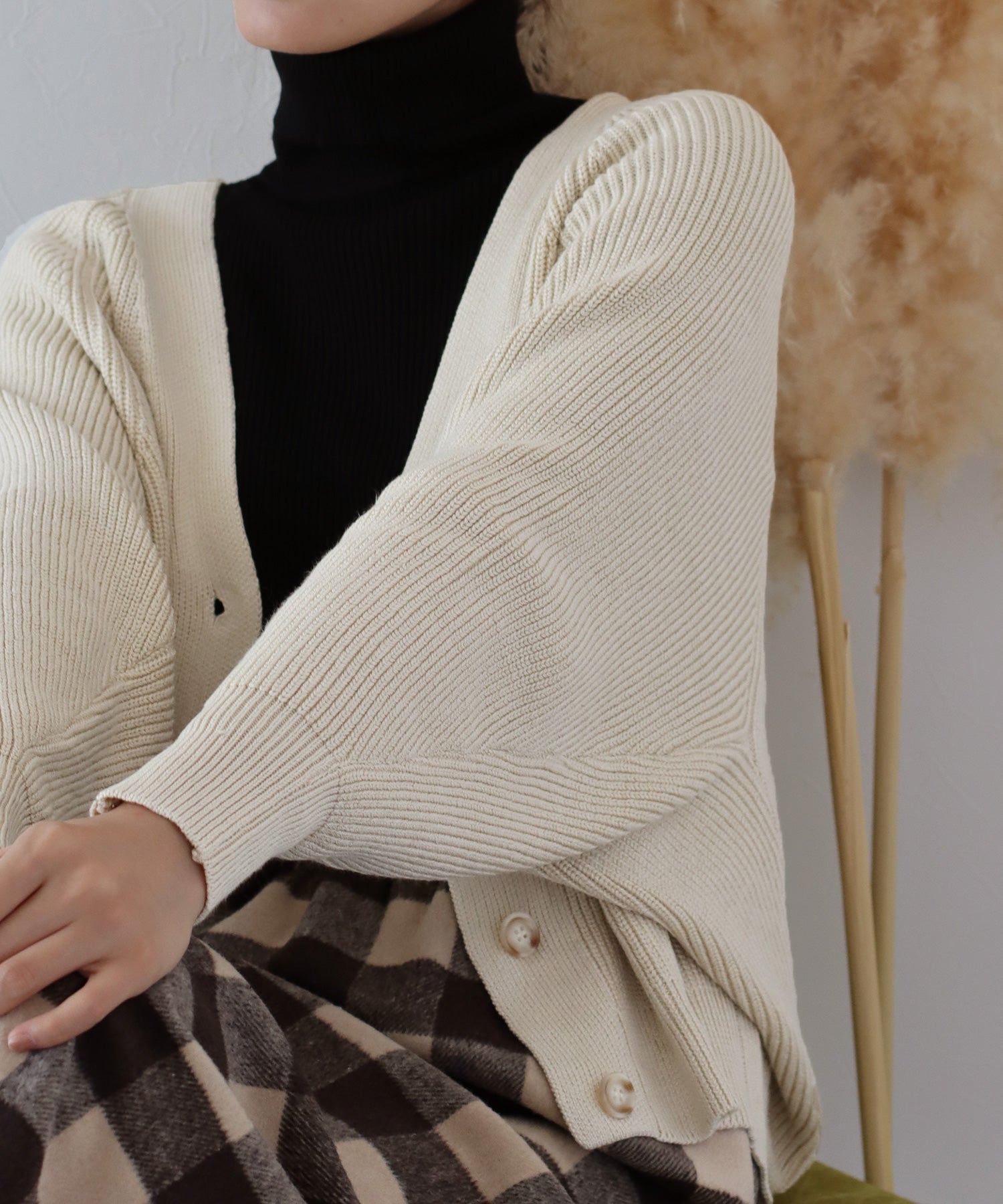 ゆとりのあるシルエットとお袖に、ショート丈なのでそのまま着るだけでボトムスとのバランスも良く、