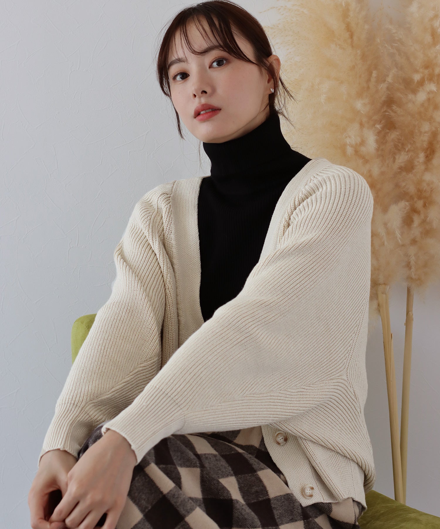 羽織るだけでなく、ボタンを留めてタートルをインすれば