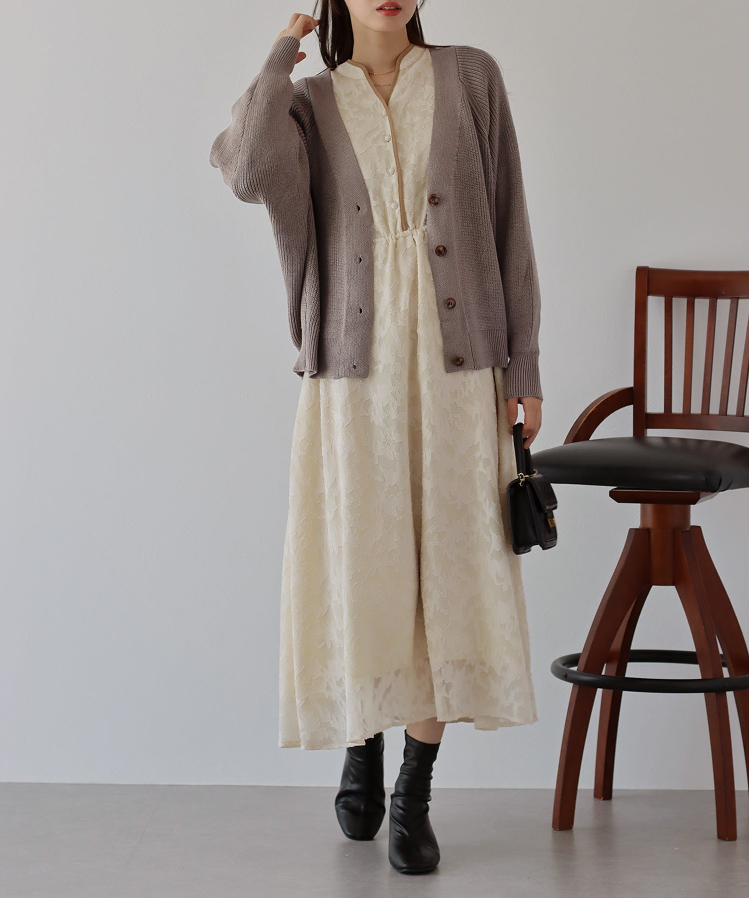 シャツやTシャツ、キャミソール、キャミワンピースなど、様々なアイテムとレイヤードを楽しめます。