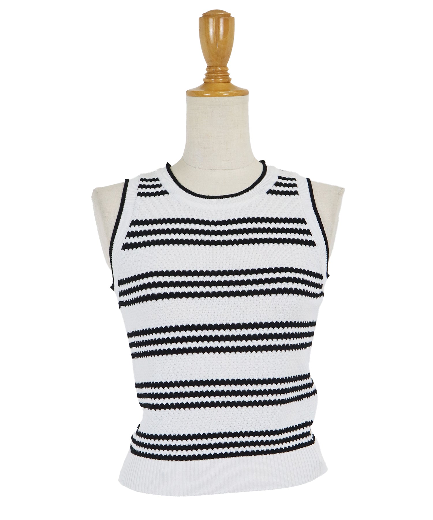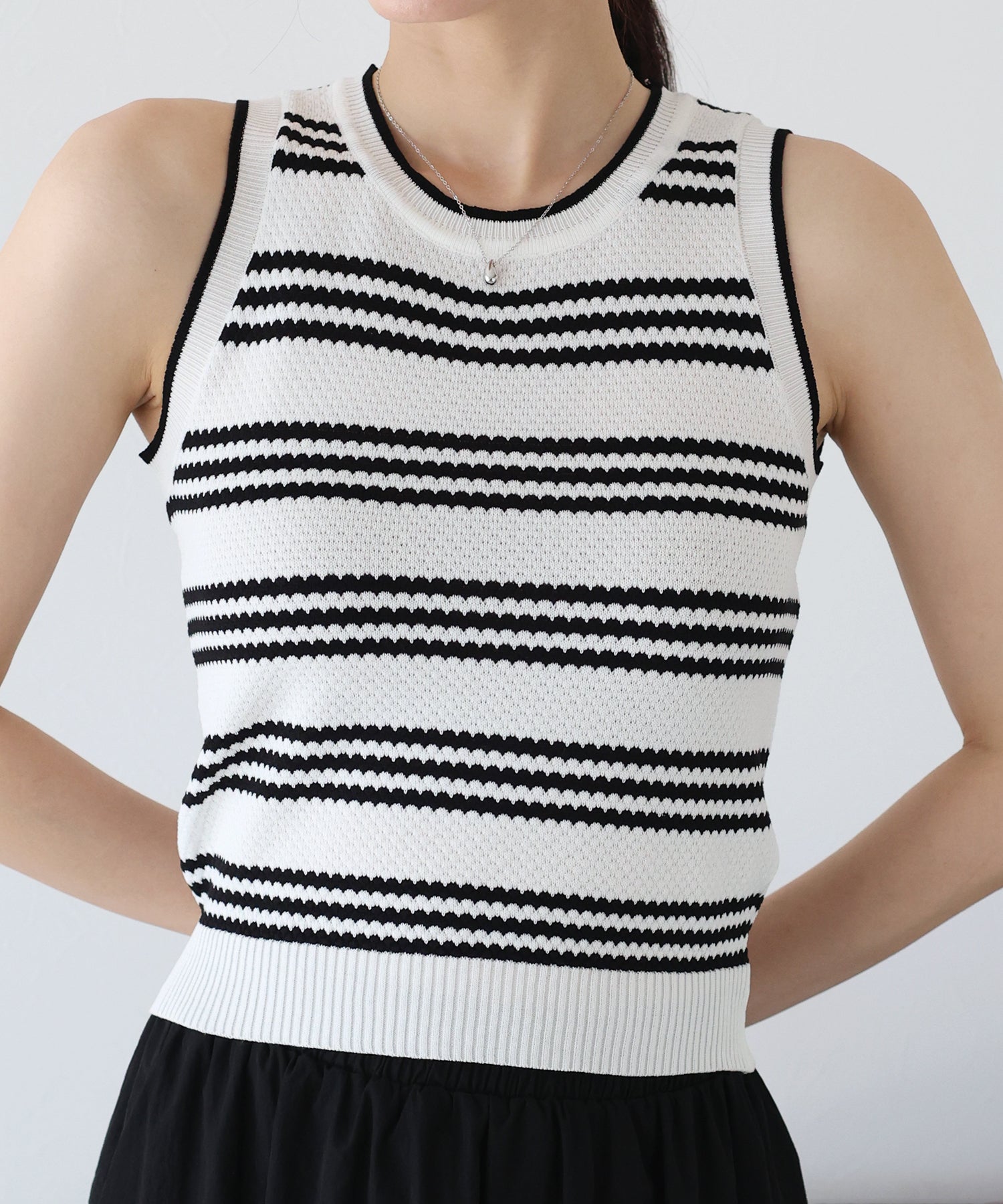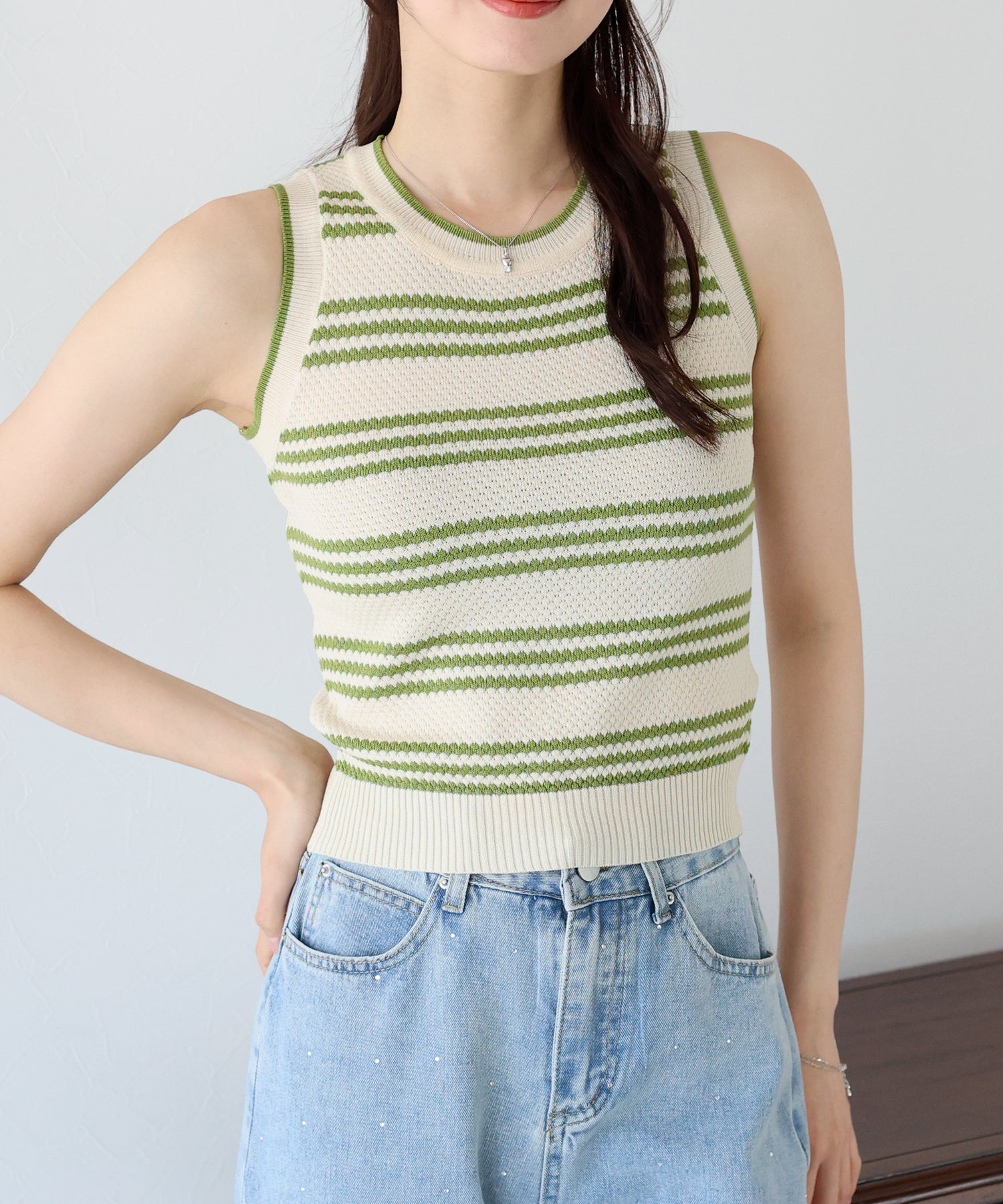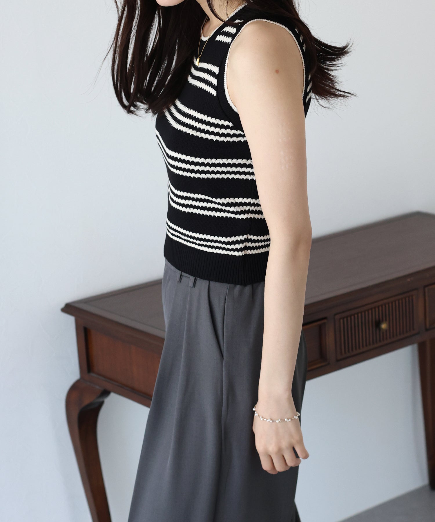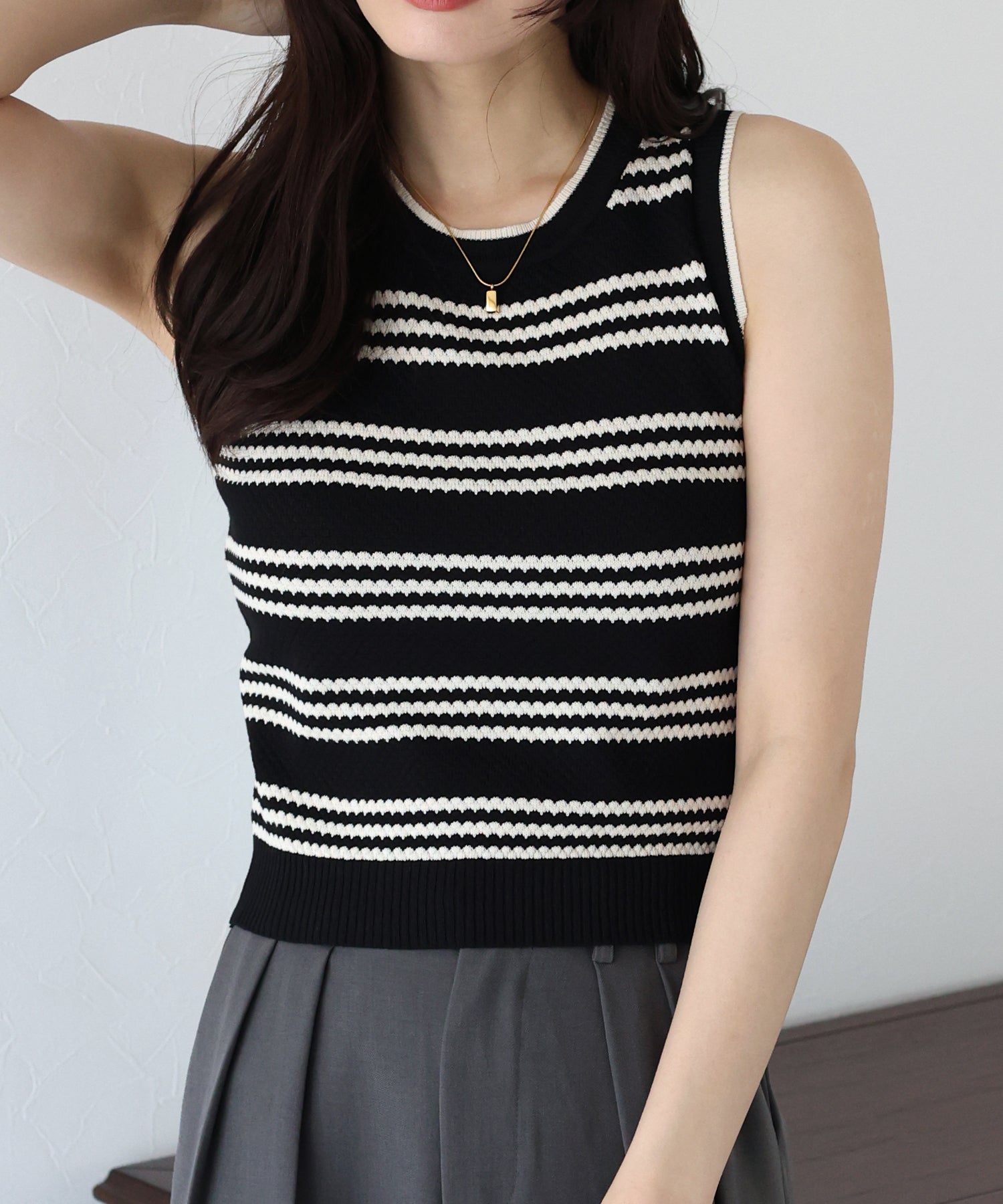 カジュアルで爽やかなボーダーが魅力的なノースリーブトップス。