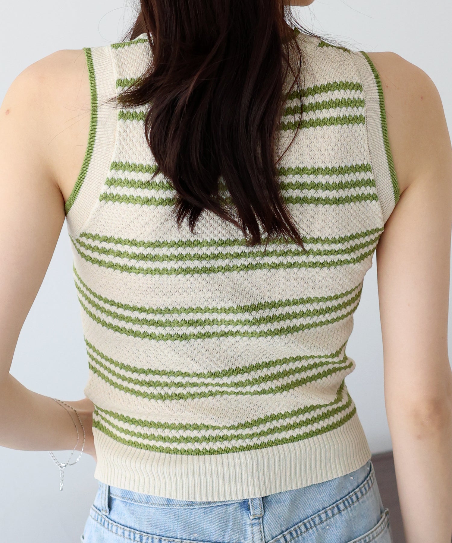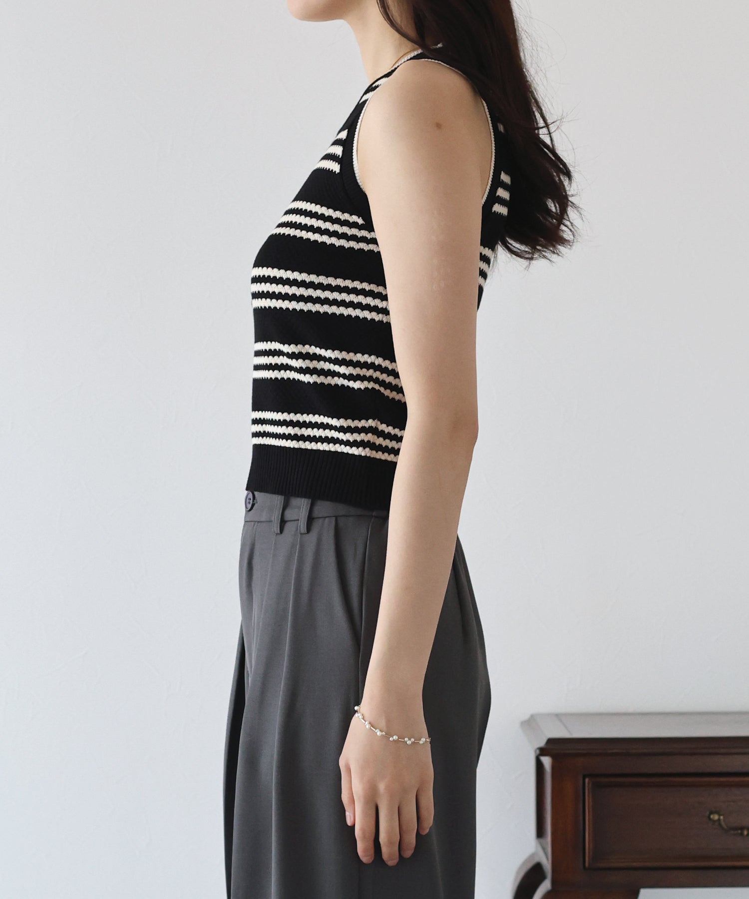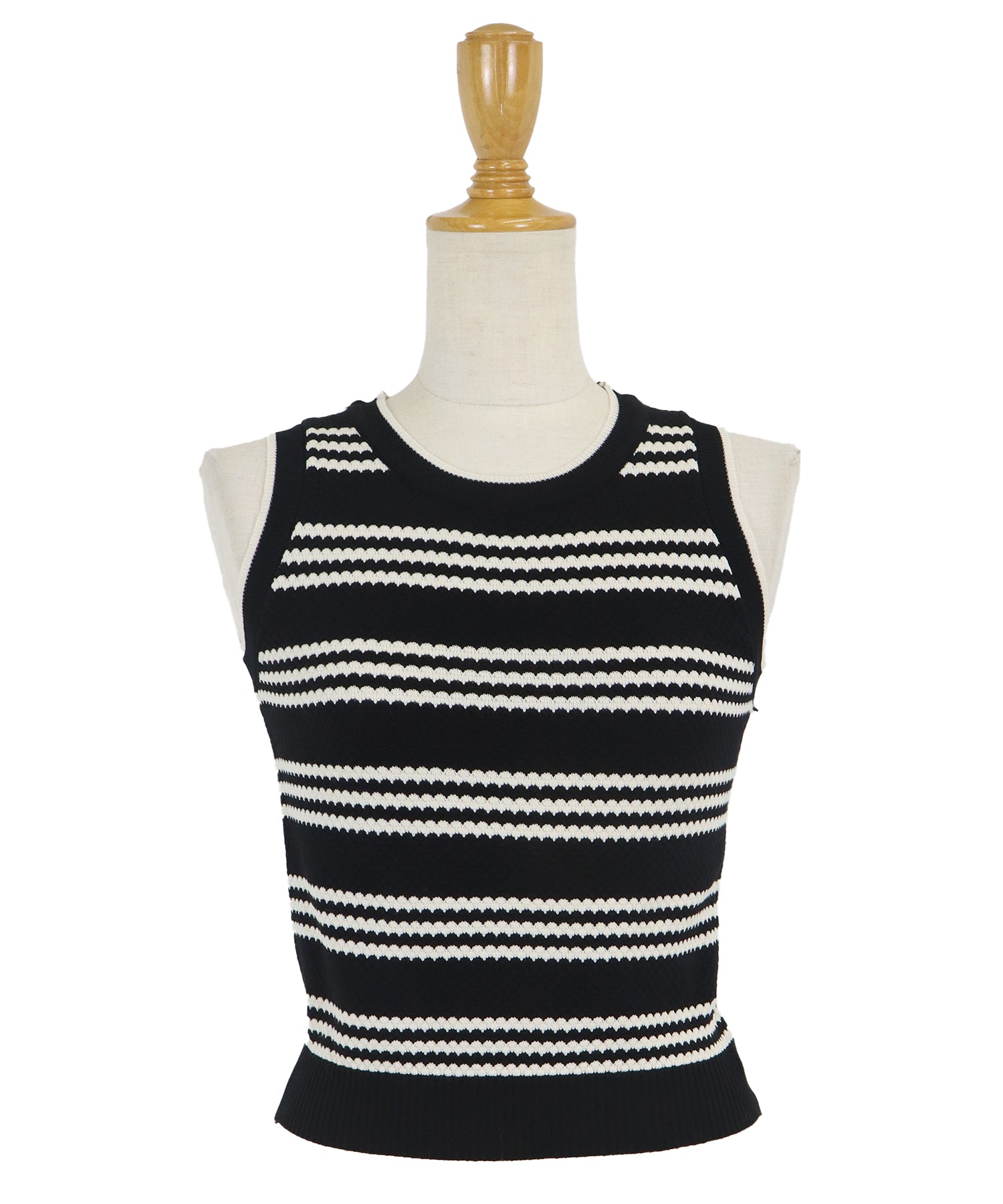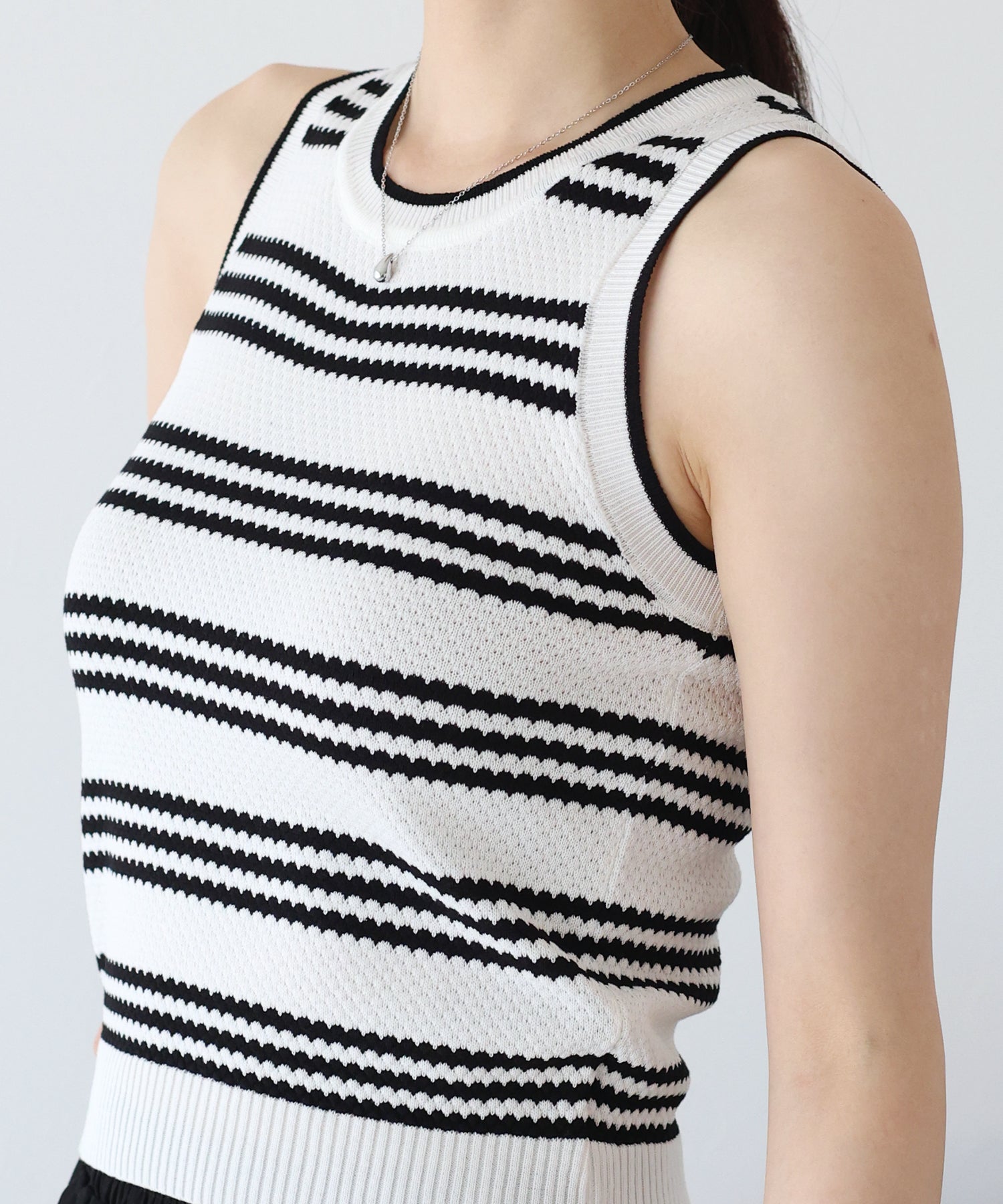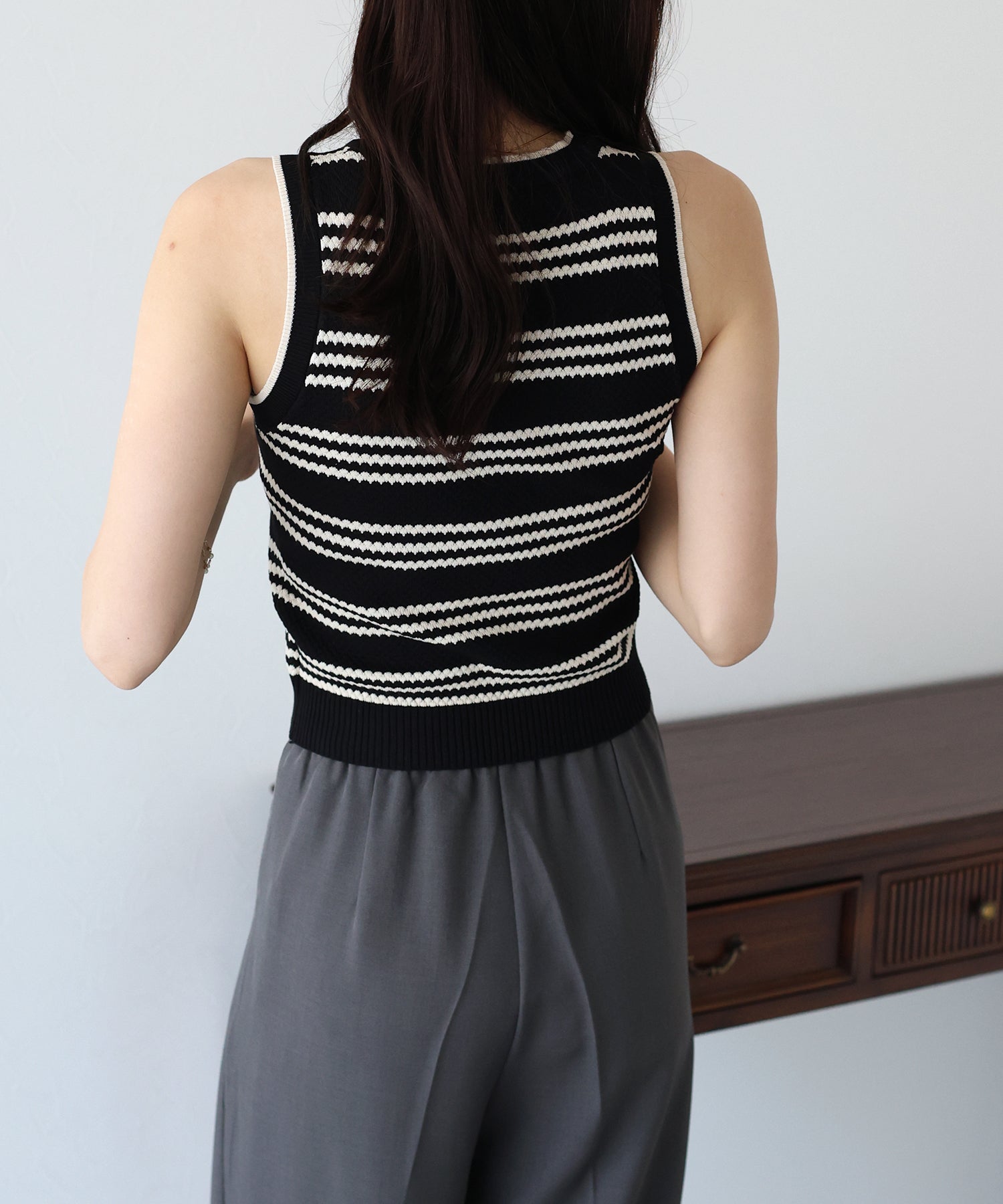 カジュアルで爽やかなボーダーが魅力的なノースリーブトップス。