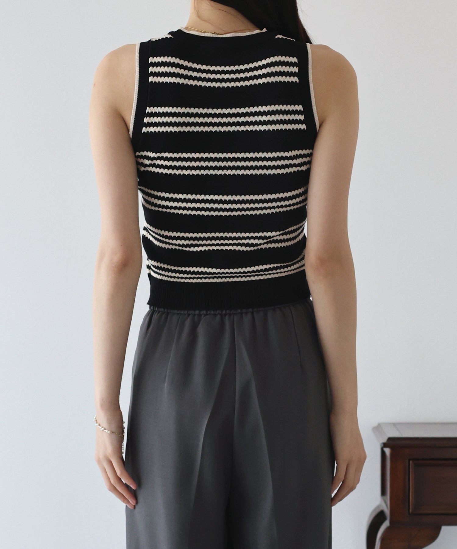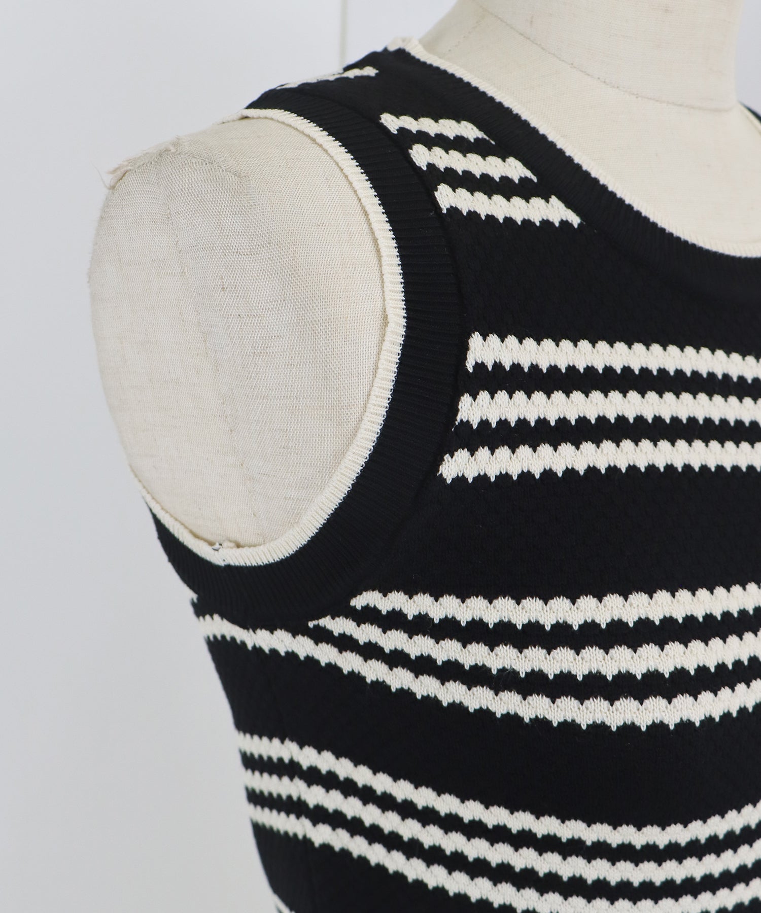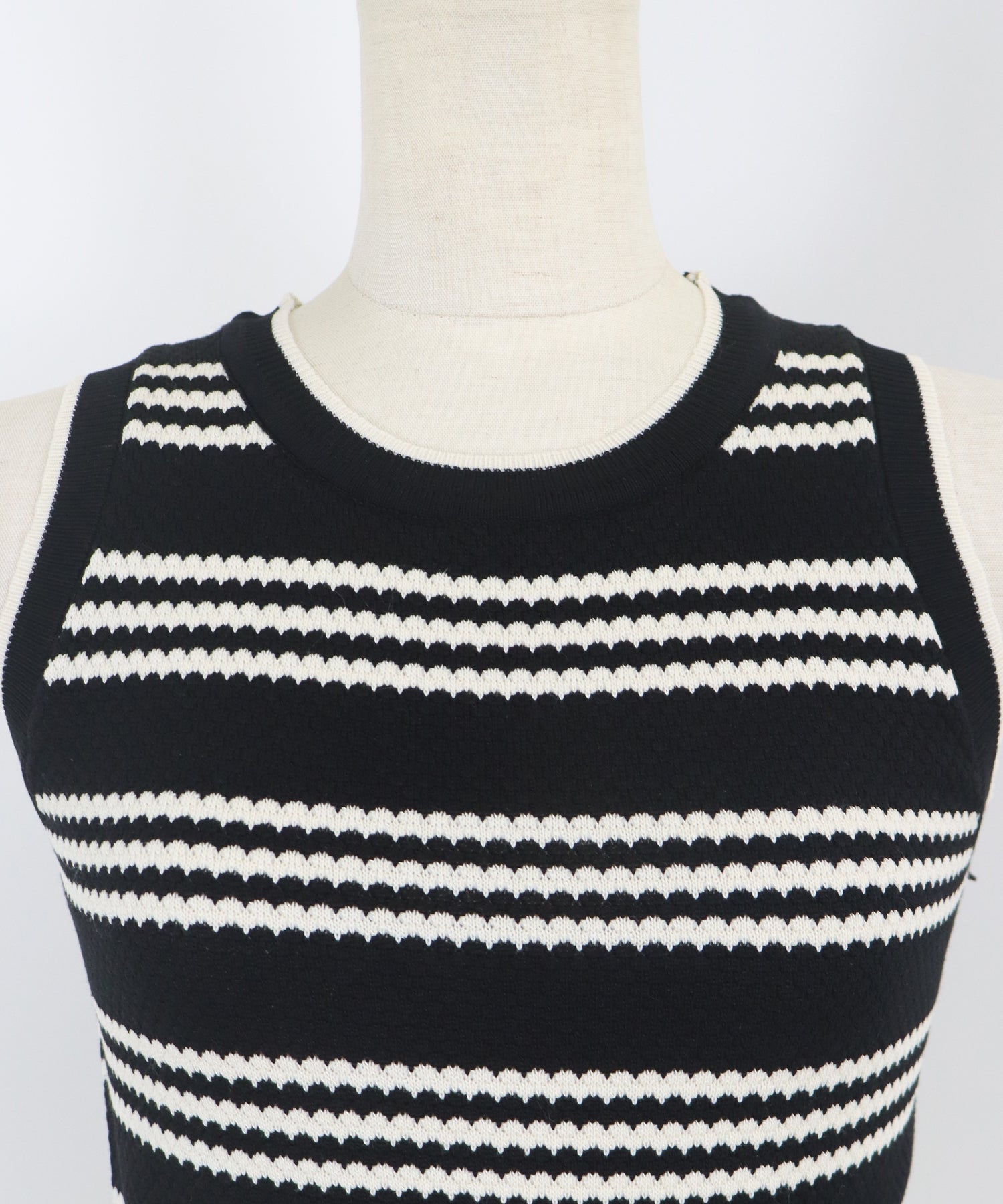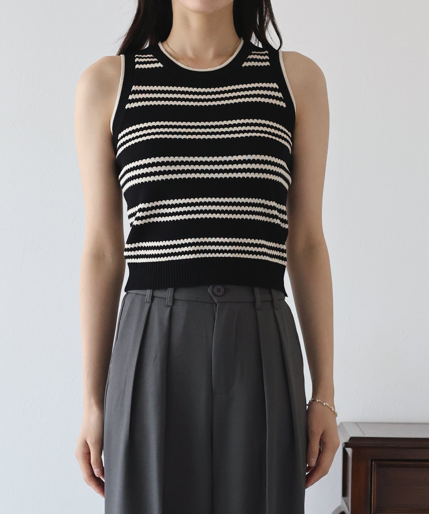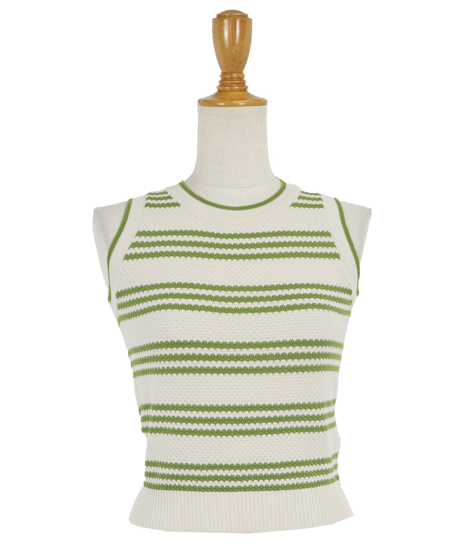カジュアルで爽やかなボーダーが魅力的なノースリーブトップス。