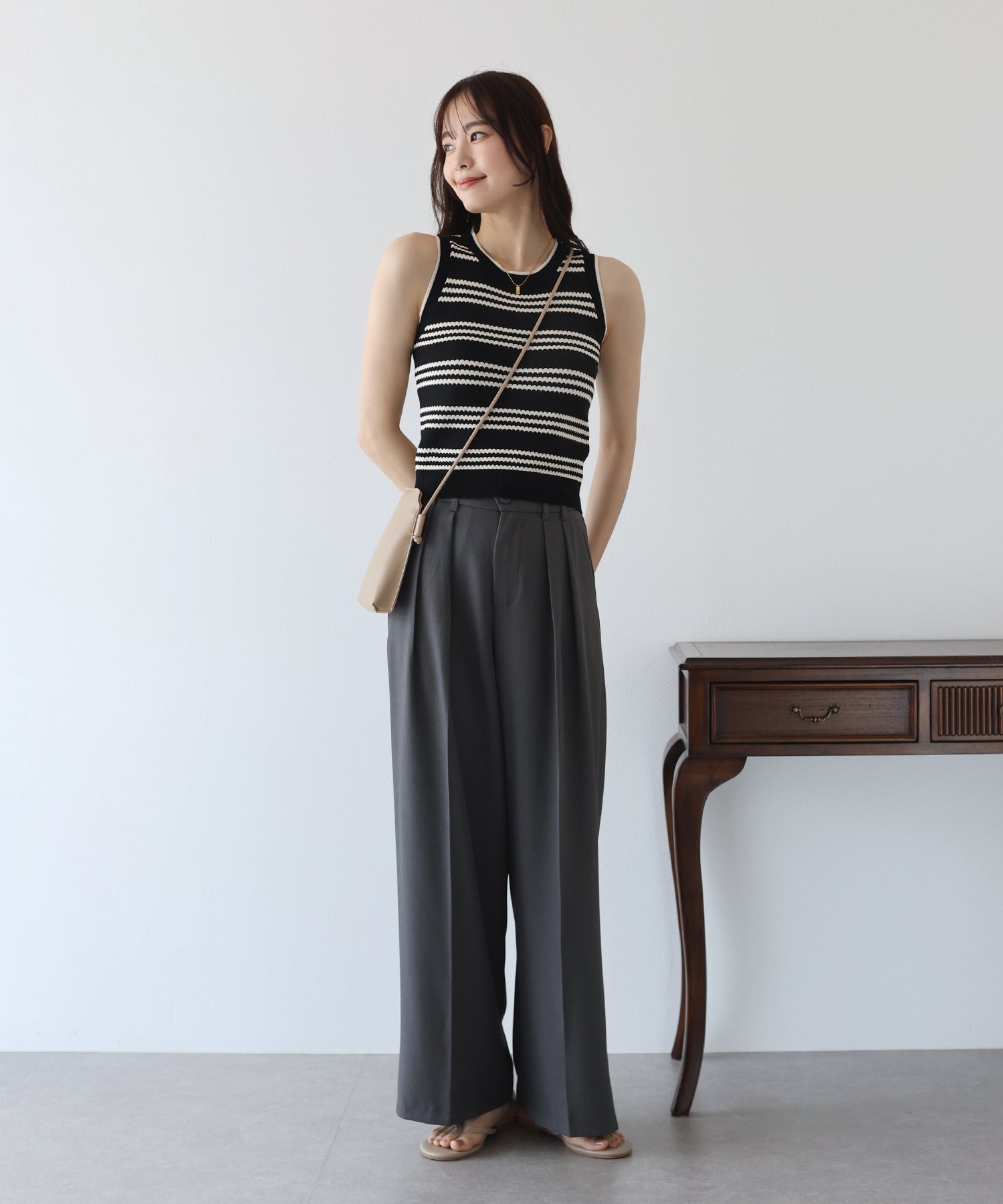 カジュアル&清涼感のあるボーダーノースリーブトップス