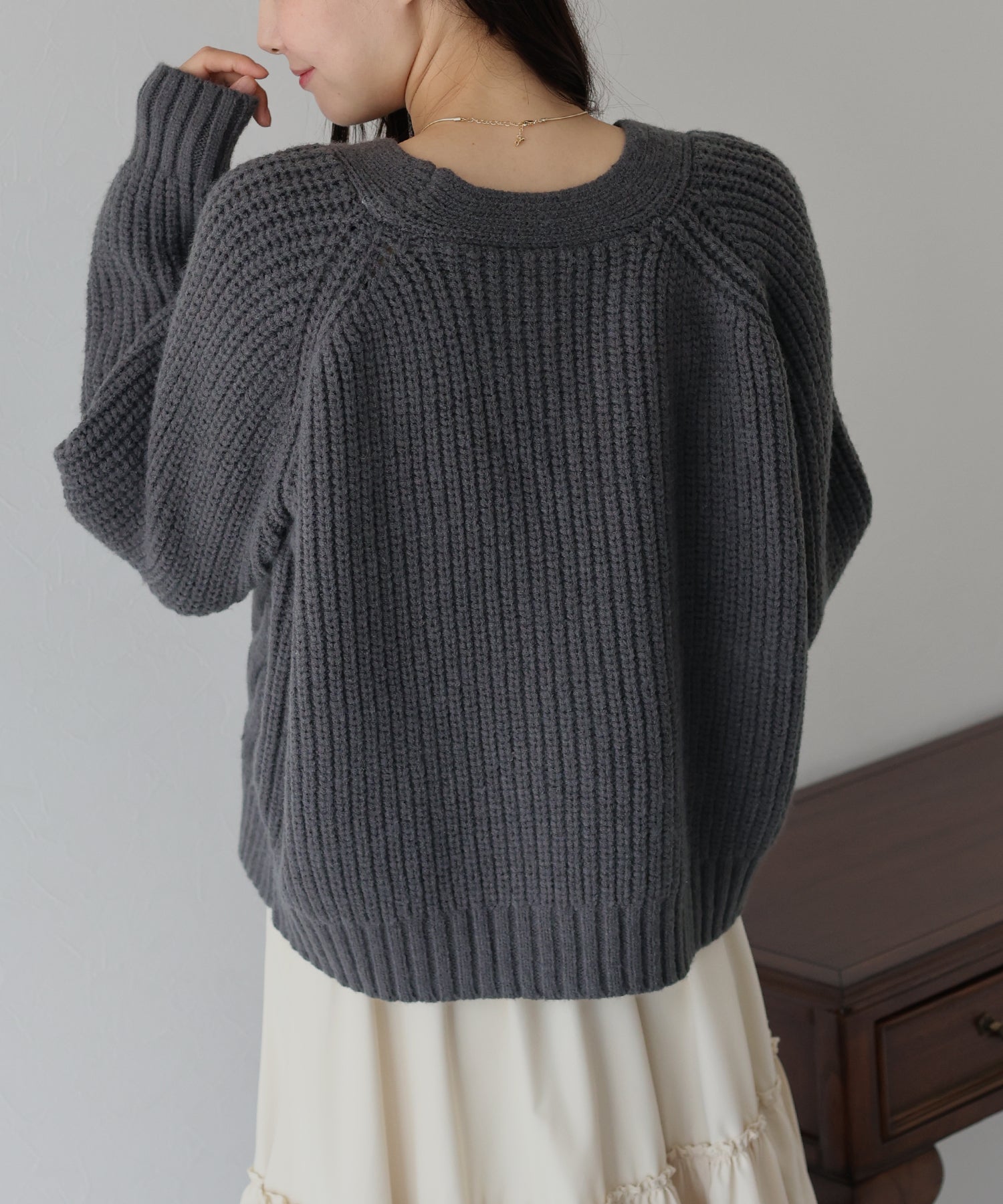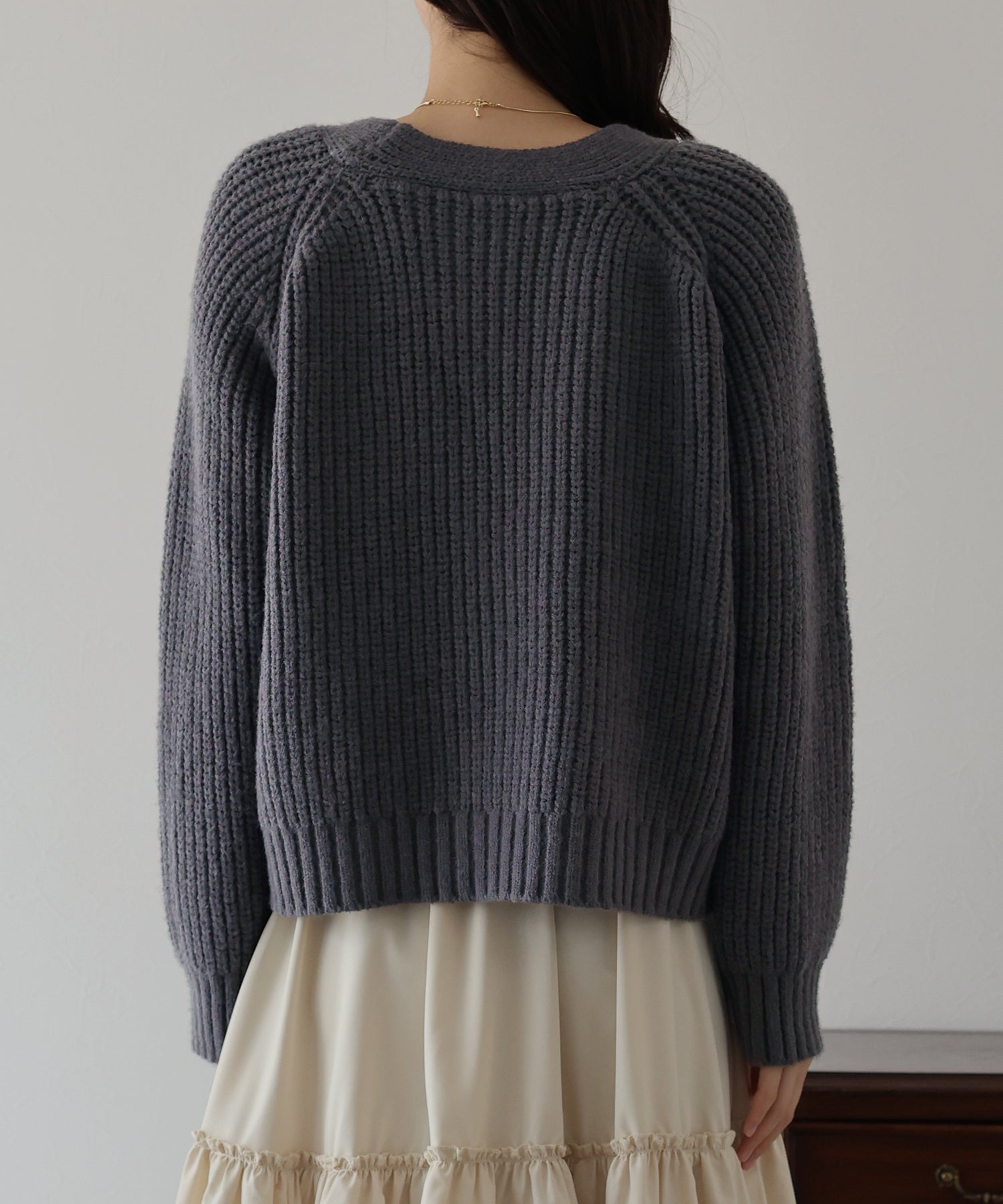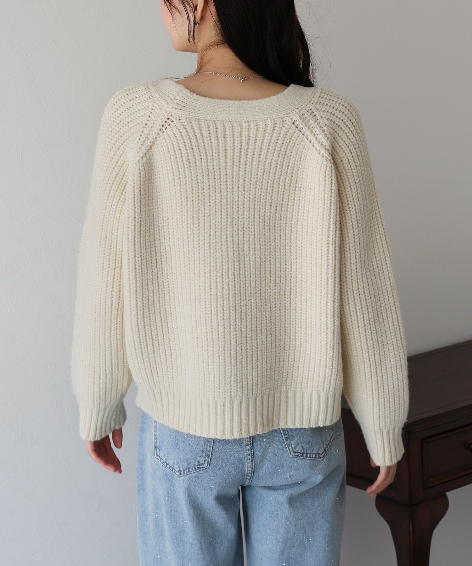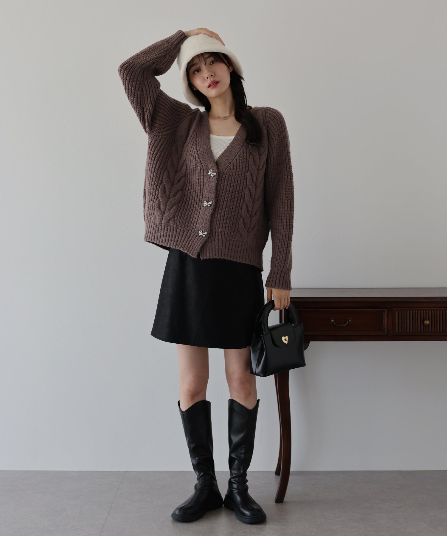 ビジューリボンボタンが今年らしいケーブルカーディガン