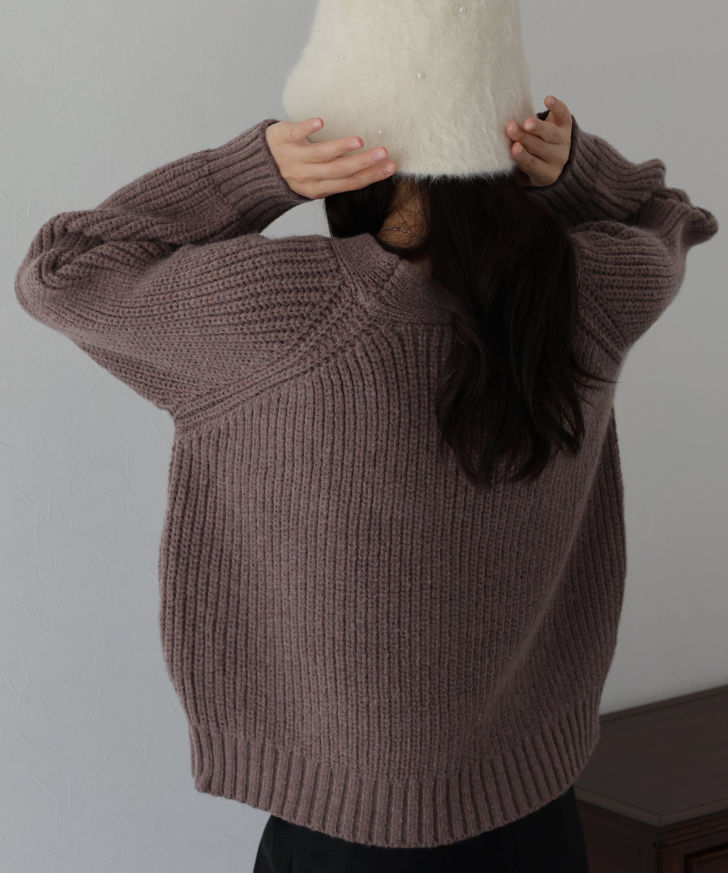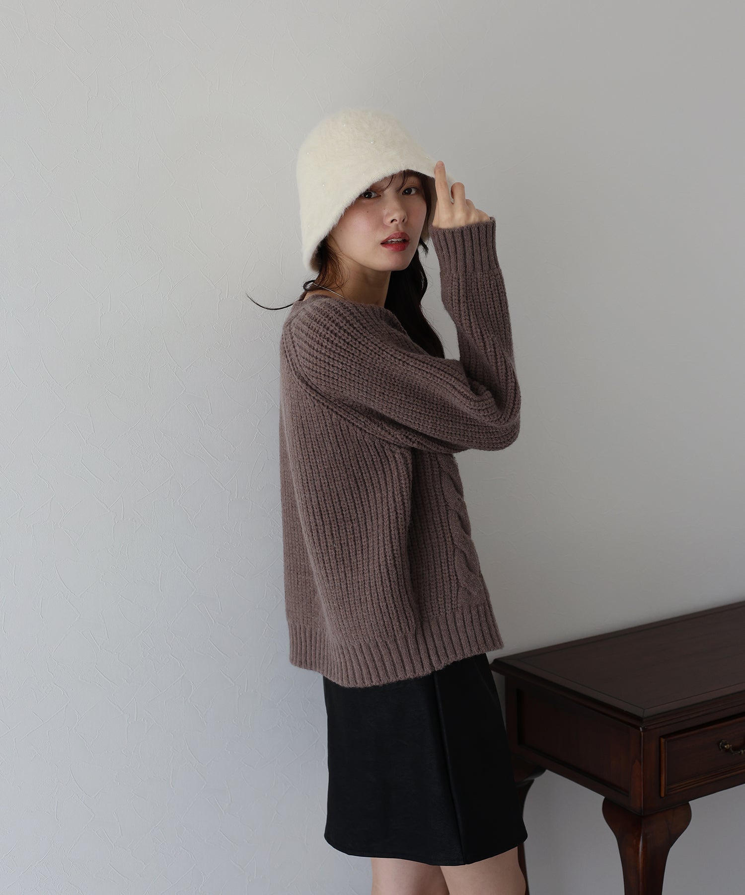 大きめのケーブル編みで温かみのあるアクセントをプラス。