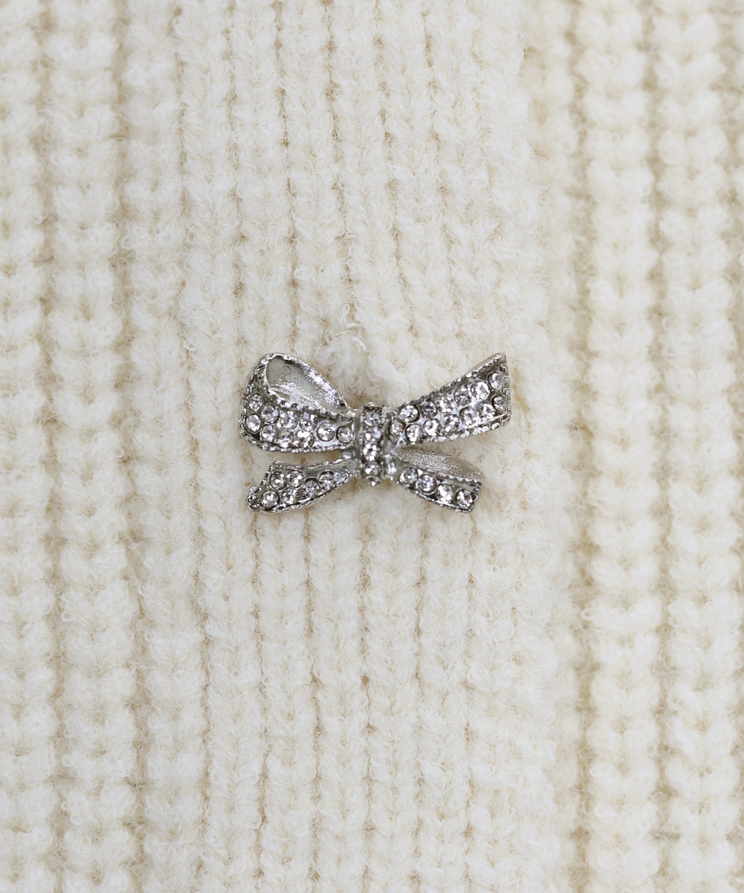 フロントに華やかなビジューのリボンボタンをあしらい、アクセサリーのようにきらきらと輝きコーデを華やかに演出。