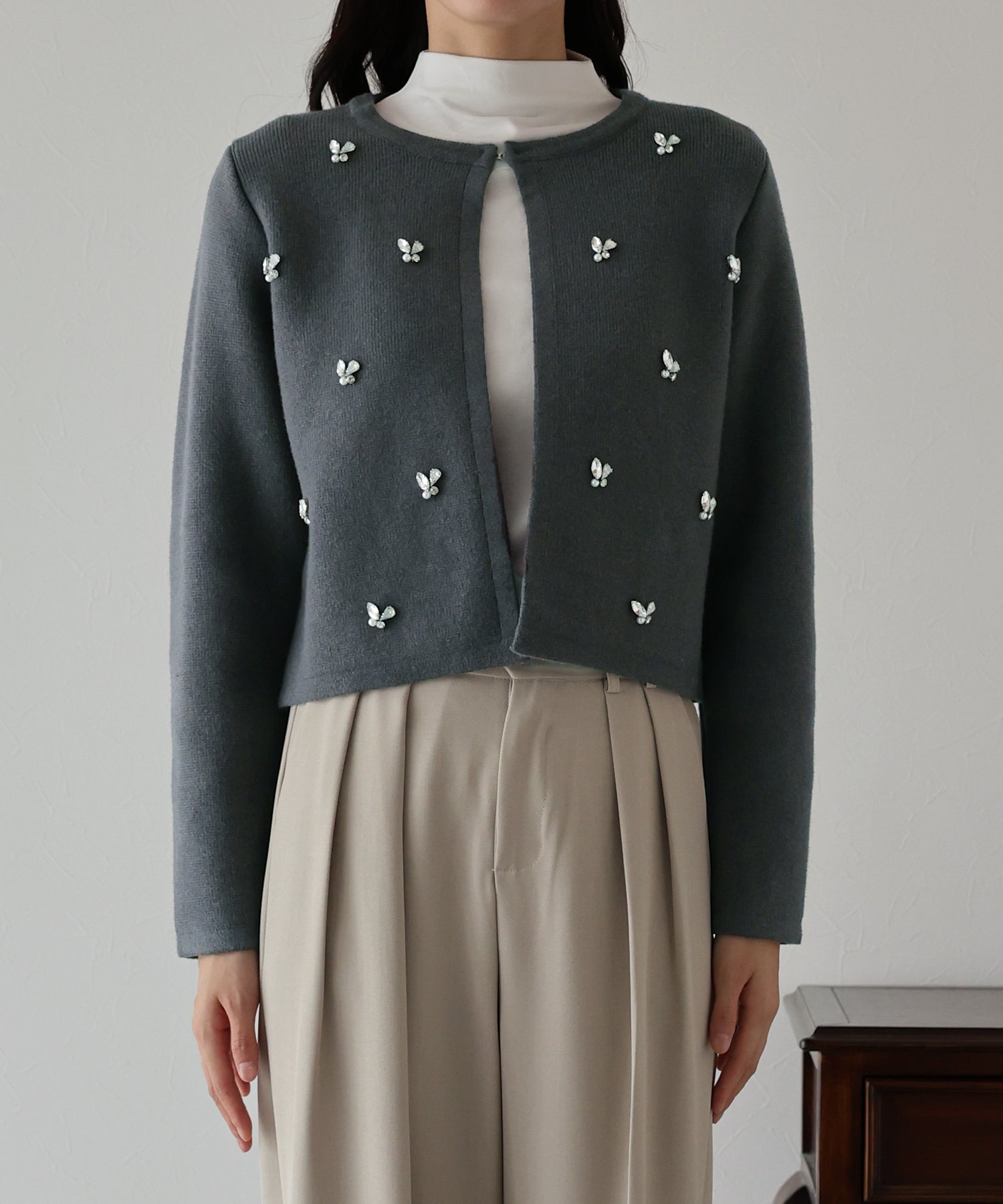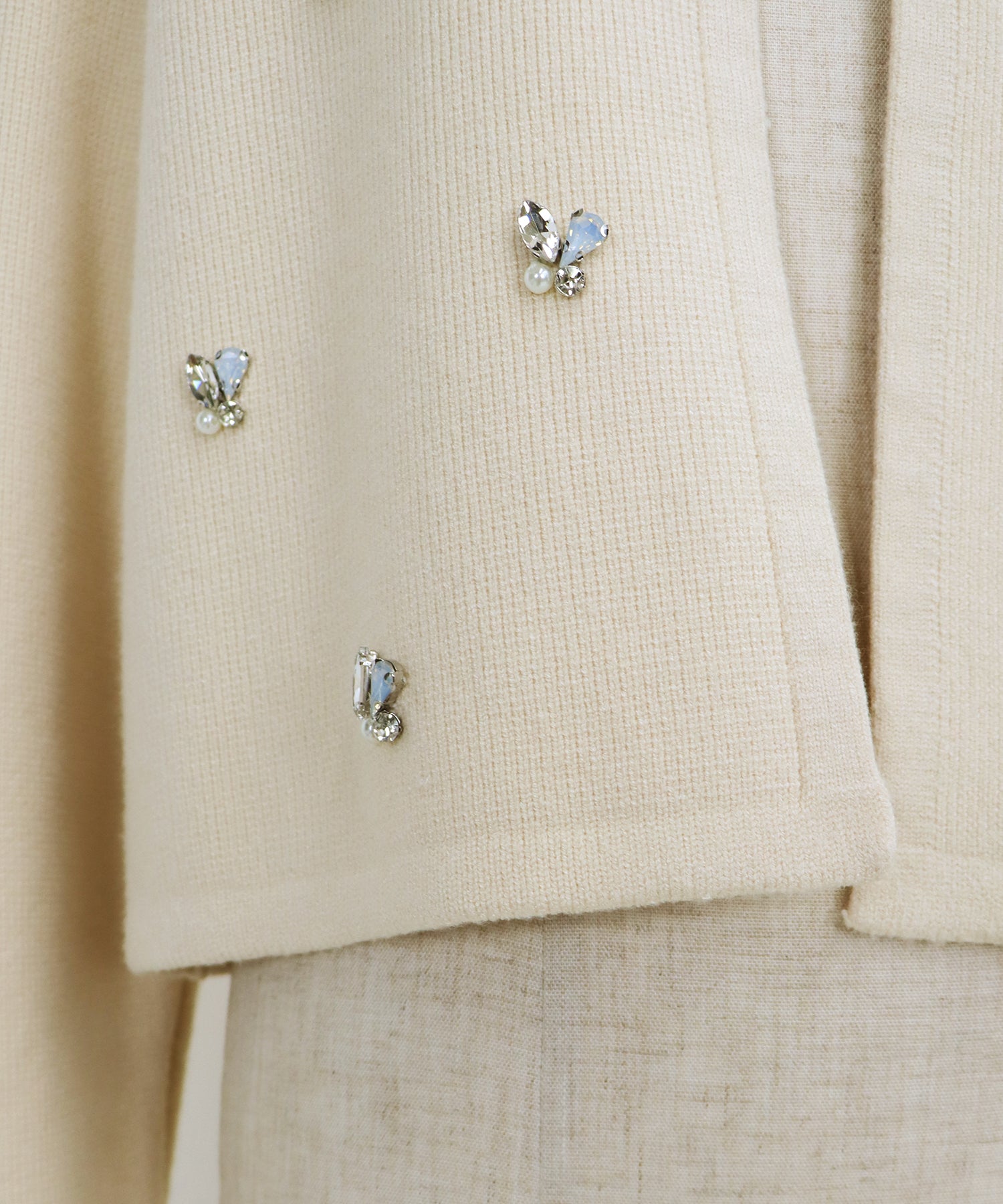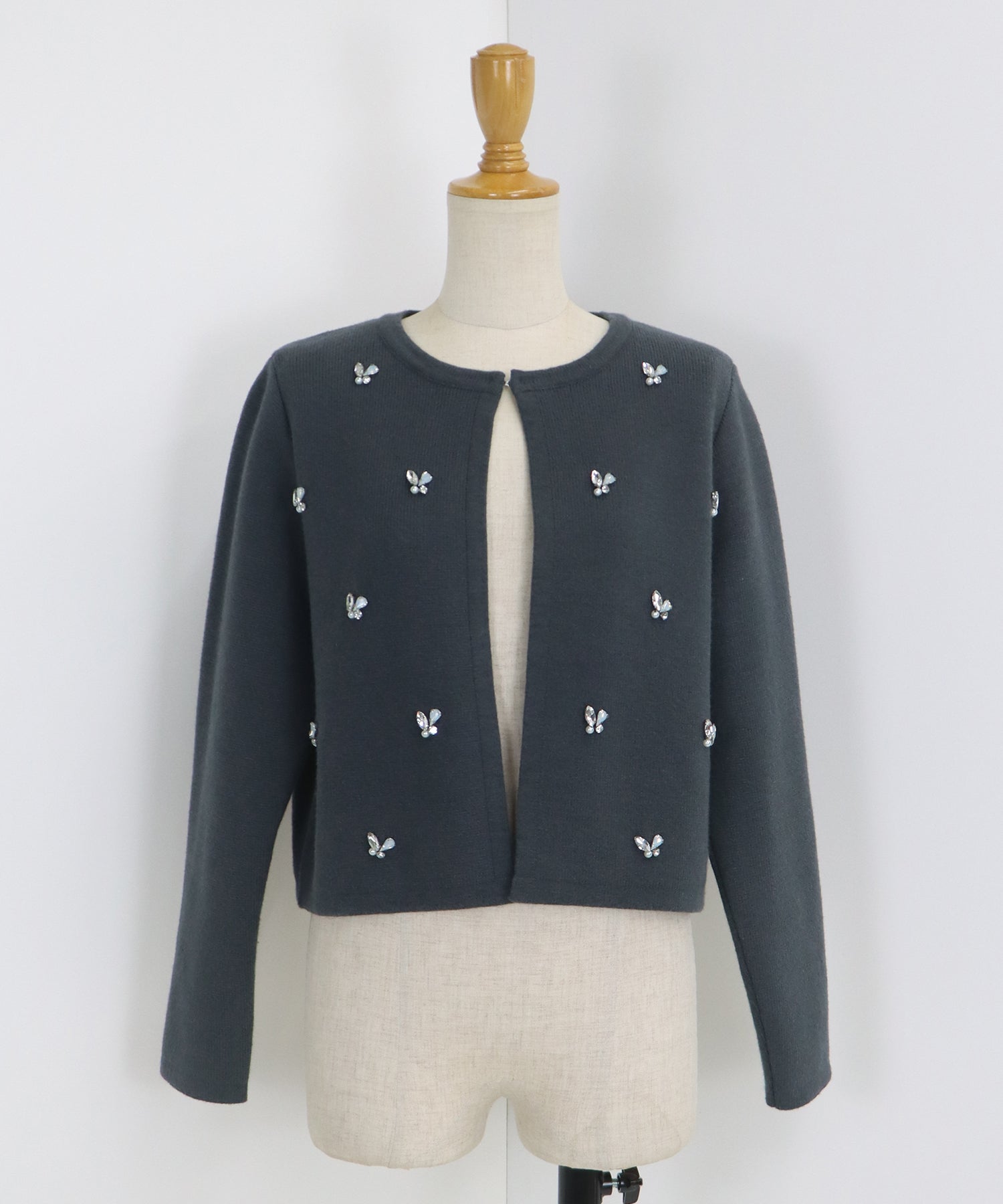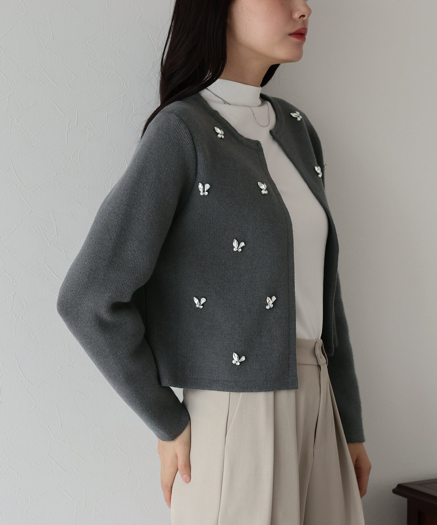 ビジューノーカラーニットジャケット