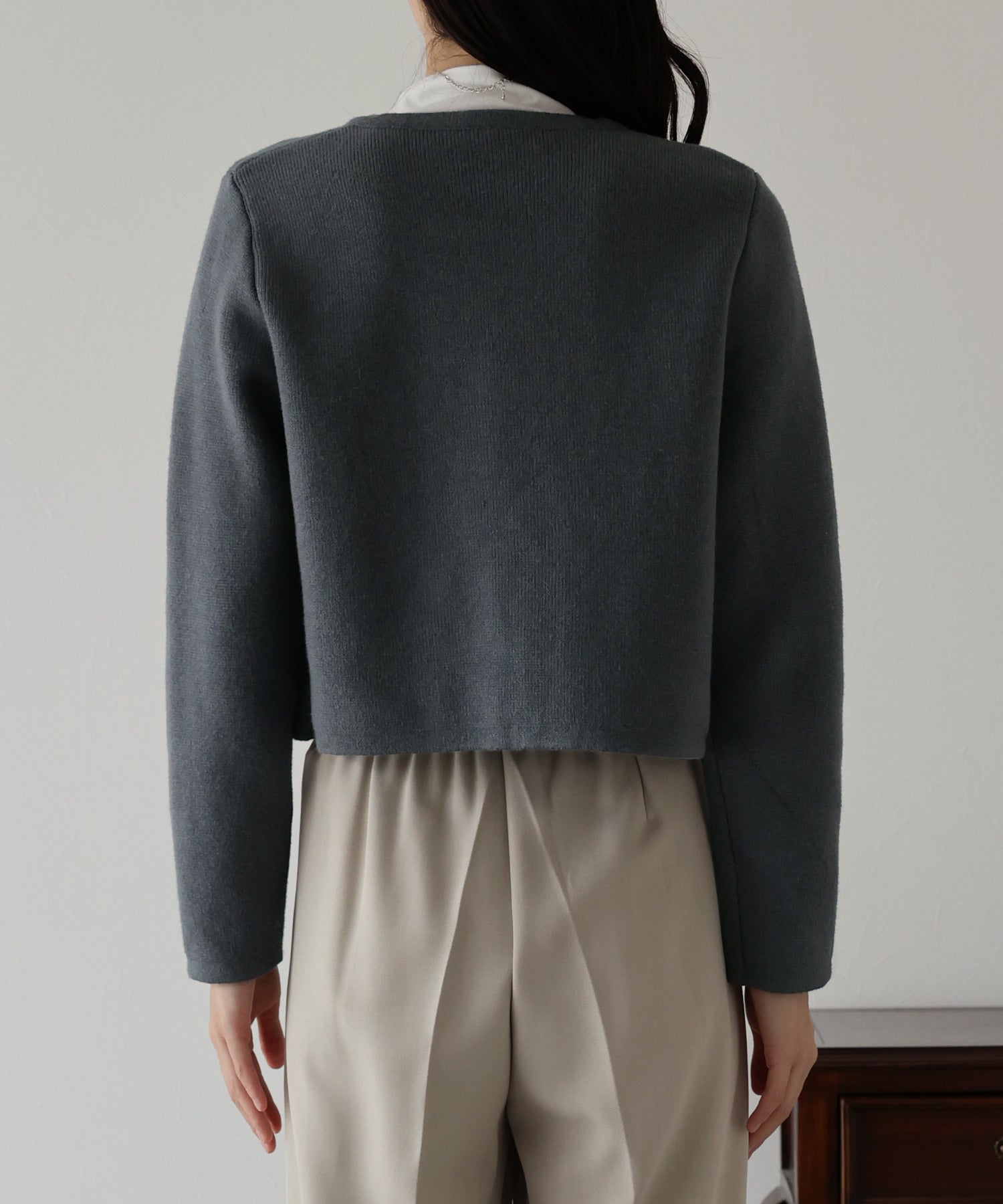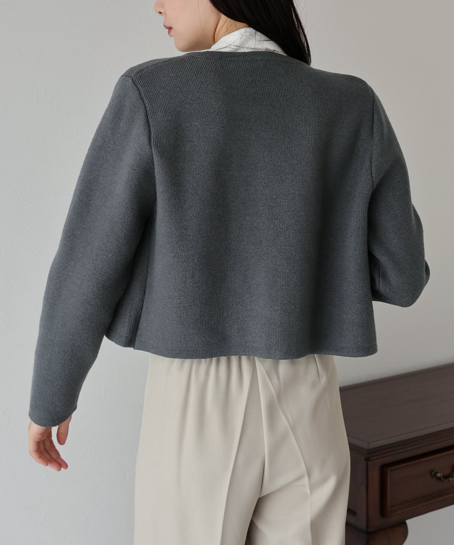 適度に肉感があり、カーディガンとジャケットの中間の羽織りとして着用できます。