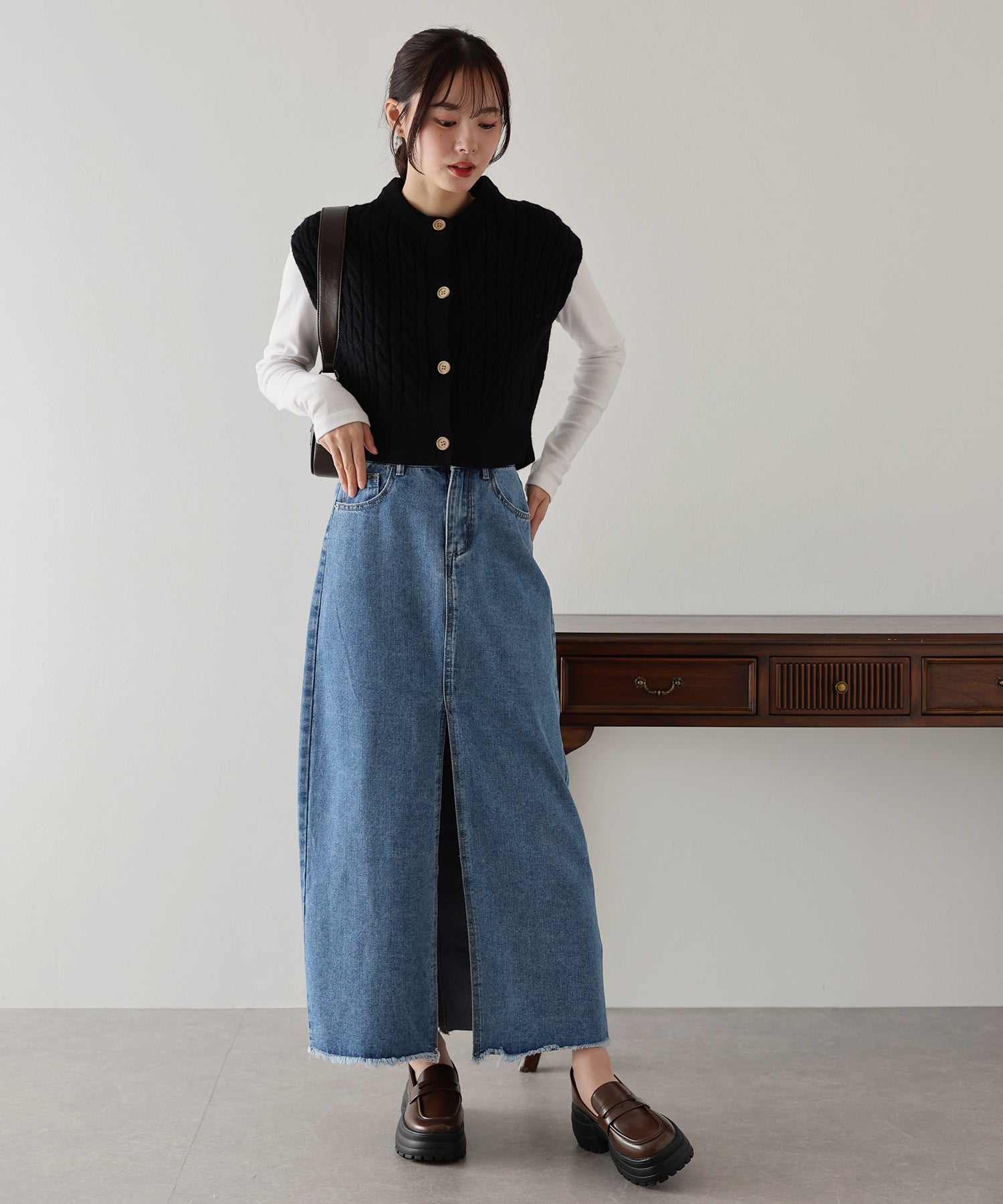 【TIME SALE】ミックスフリンジニットベスト[ J by blue ]