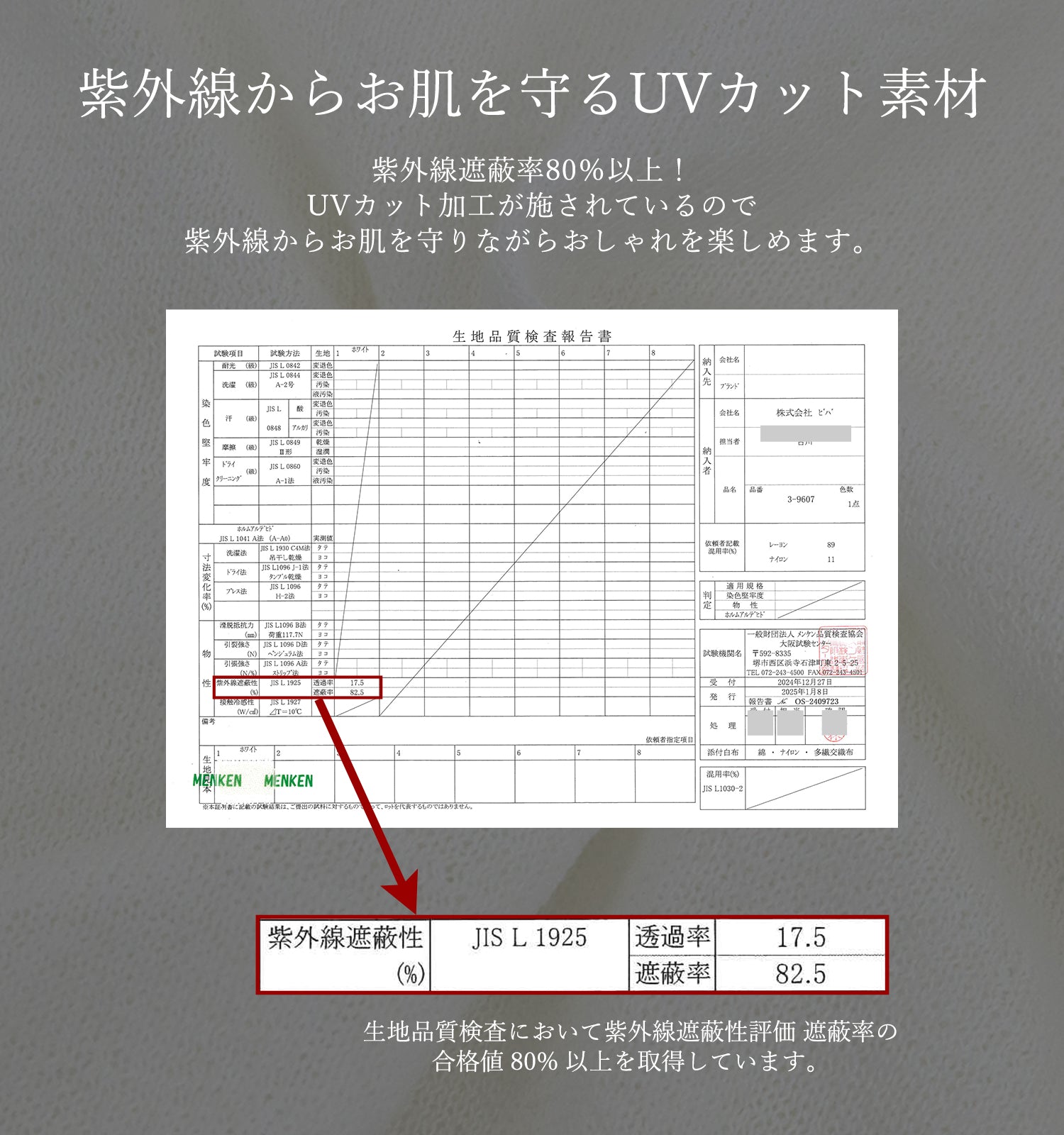 紫外線の遮蔽率が80%以上なので日焼けしにくく、春~秋までロングシーズン快適に着用いただけます。