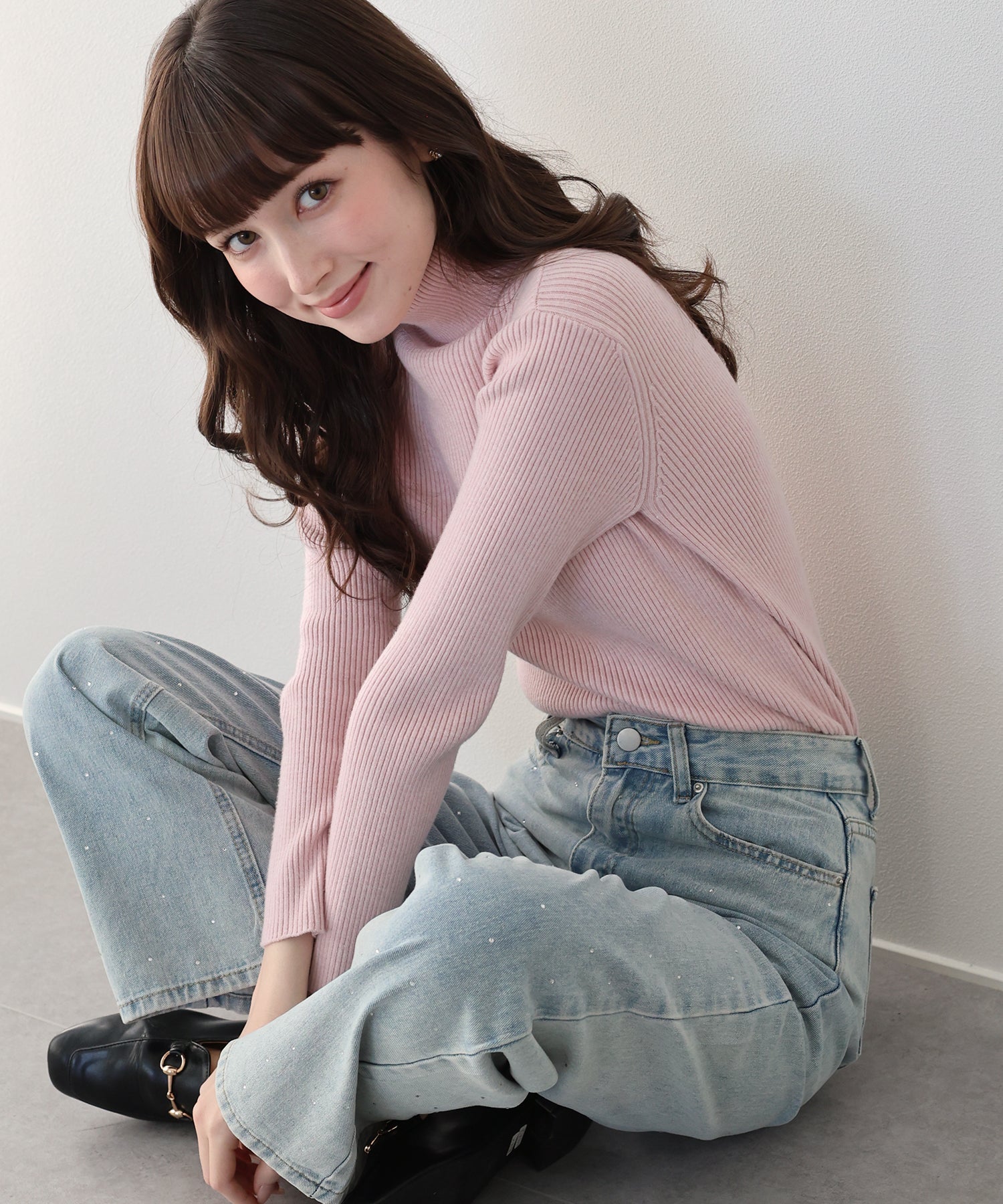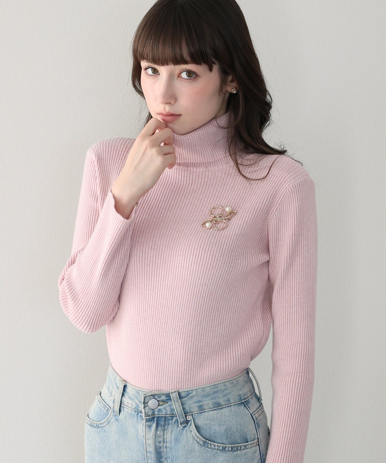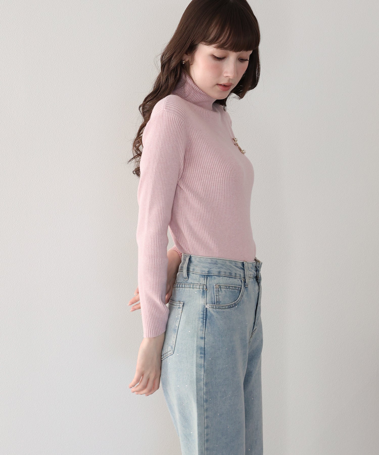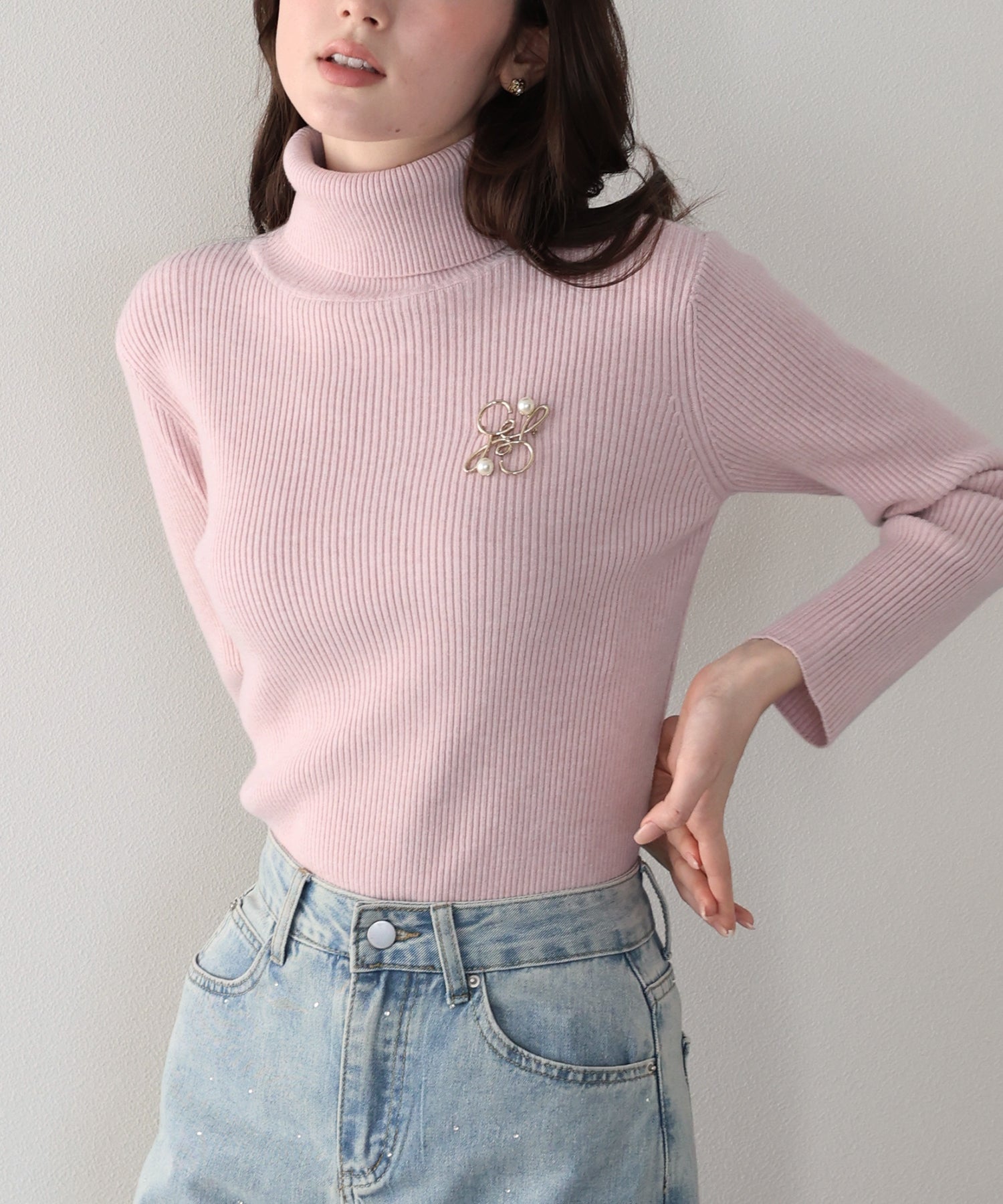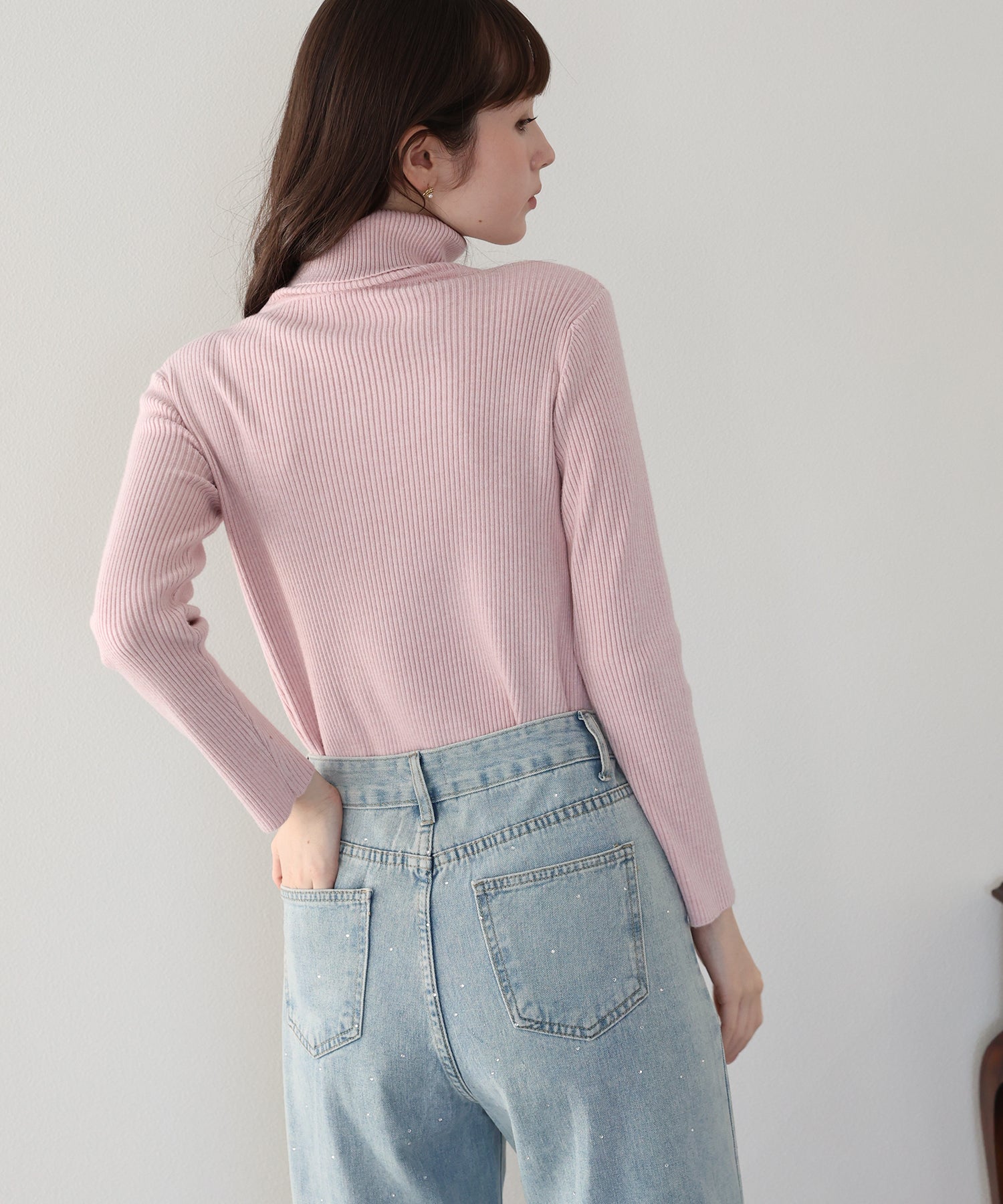 なめらかタートルネックリブニット