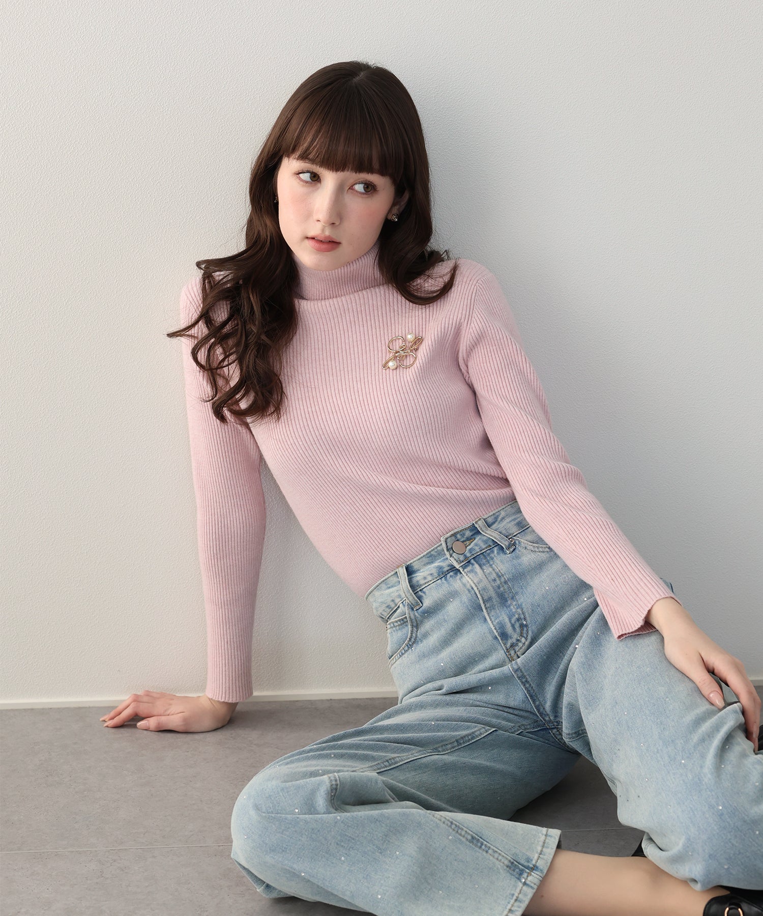 リブ編みの程よいフィット感で女性らしい印象を与えてくれます。