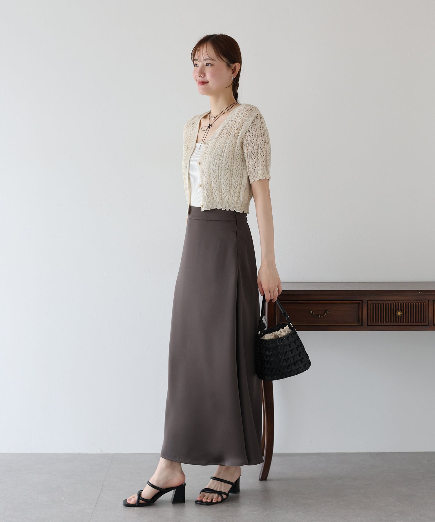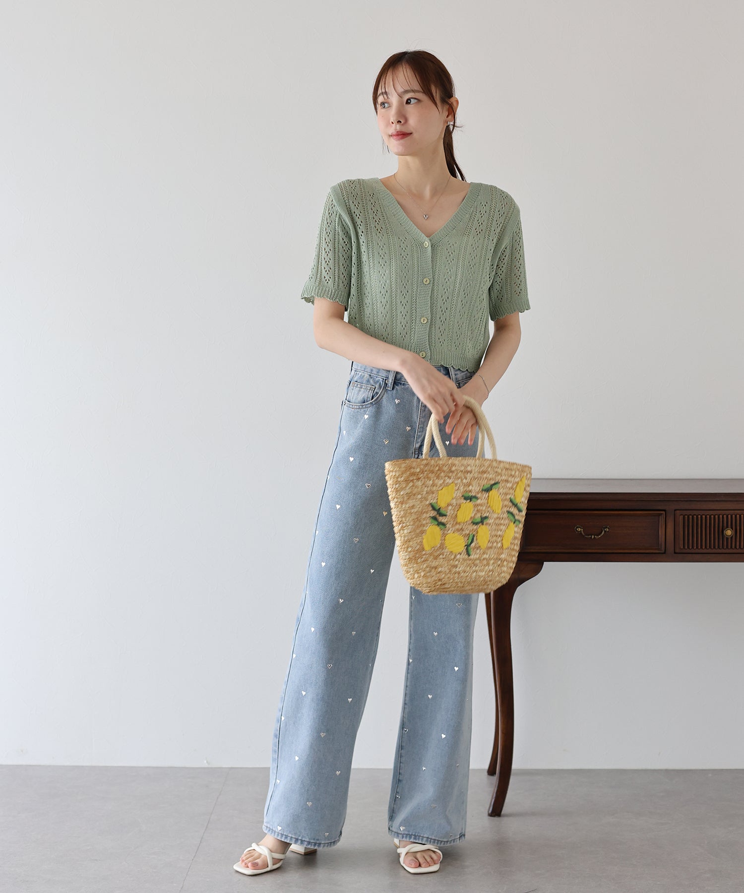 ざっくりとした網目が涼しげで、さらっと羽織るだけでカジュアルフェミニンなコーデを演出できます。