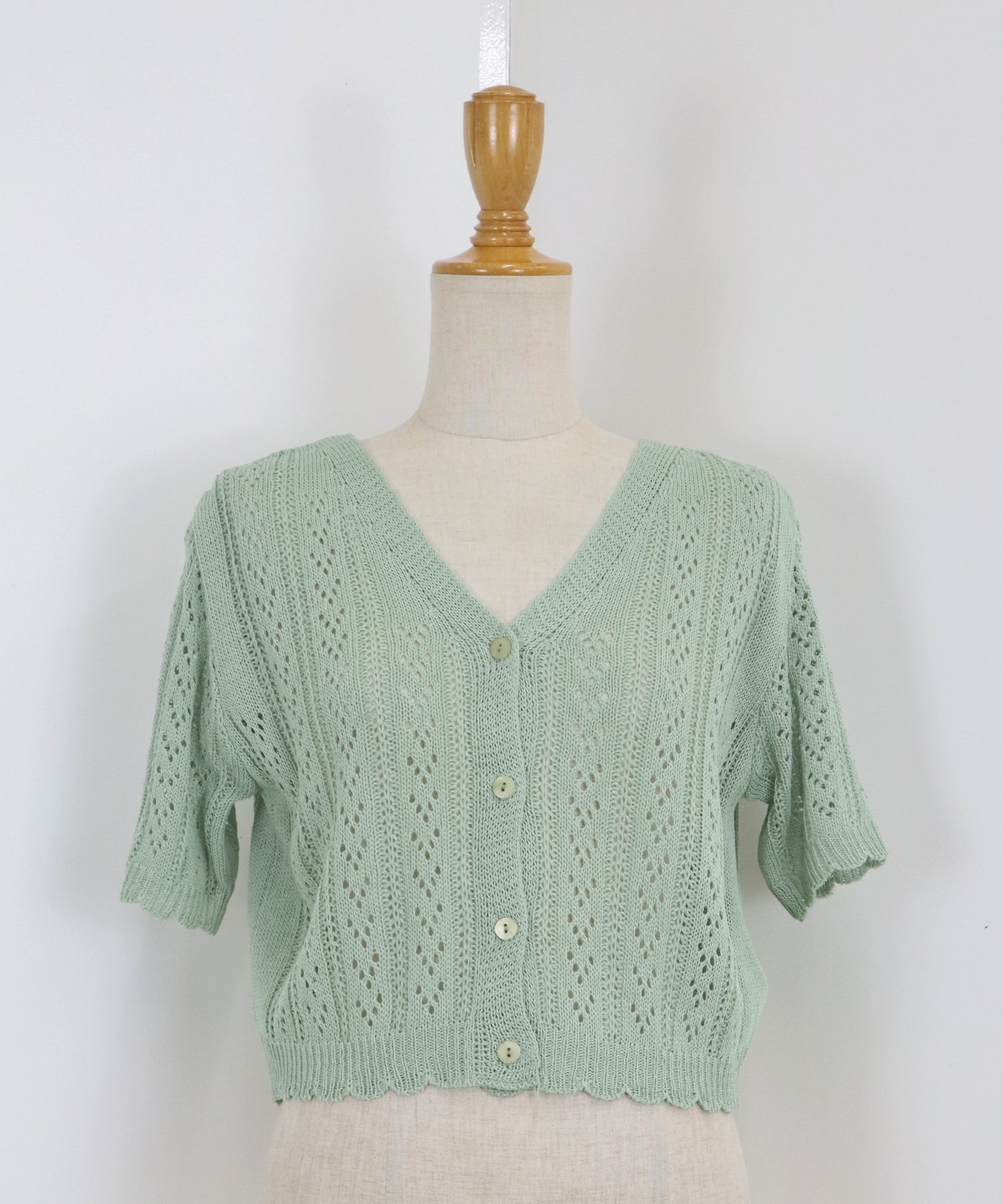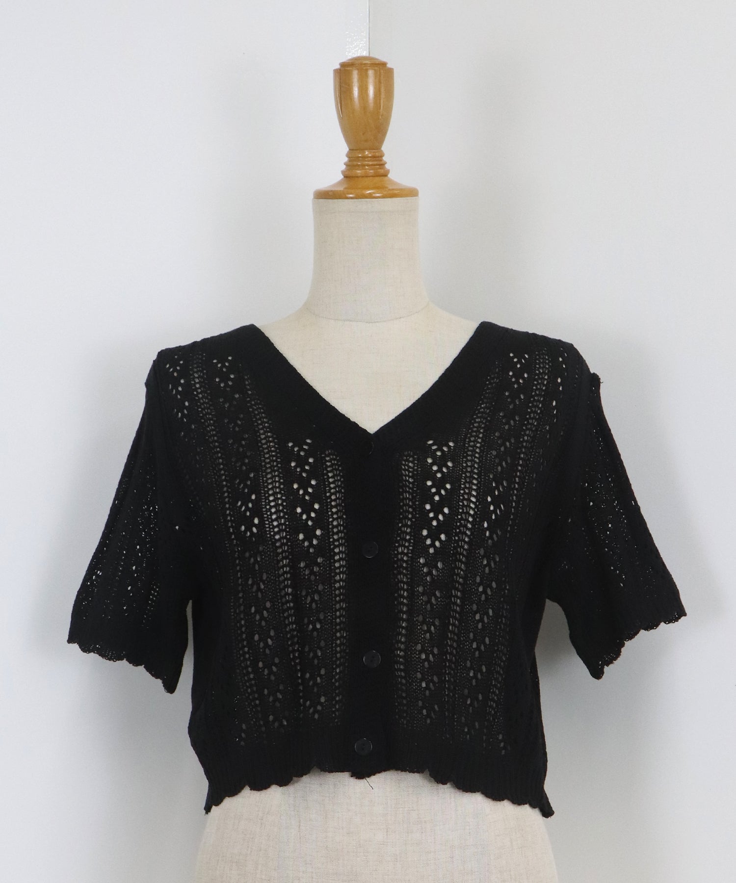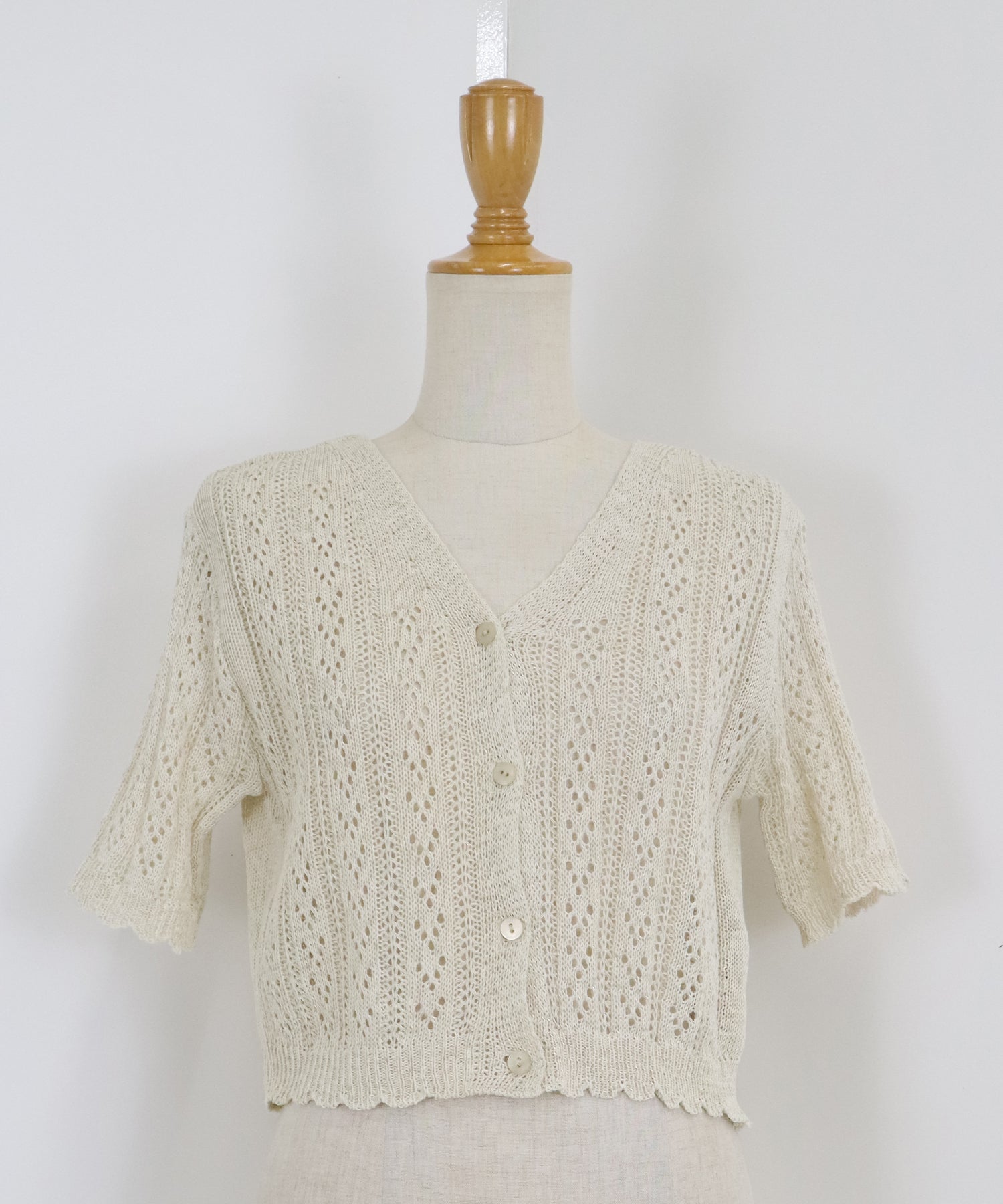 【TIME SALE】透かし編みVネック半袖カーディガン