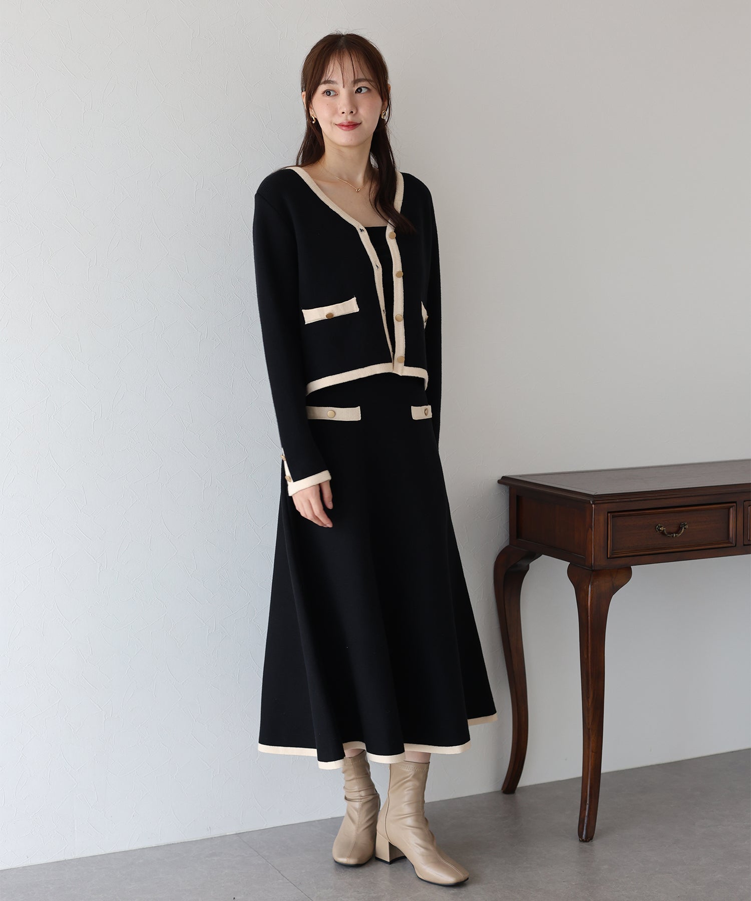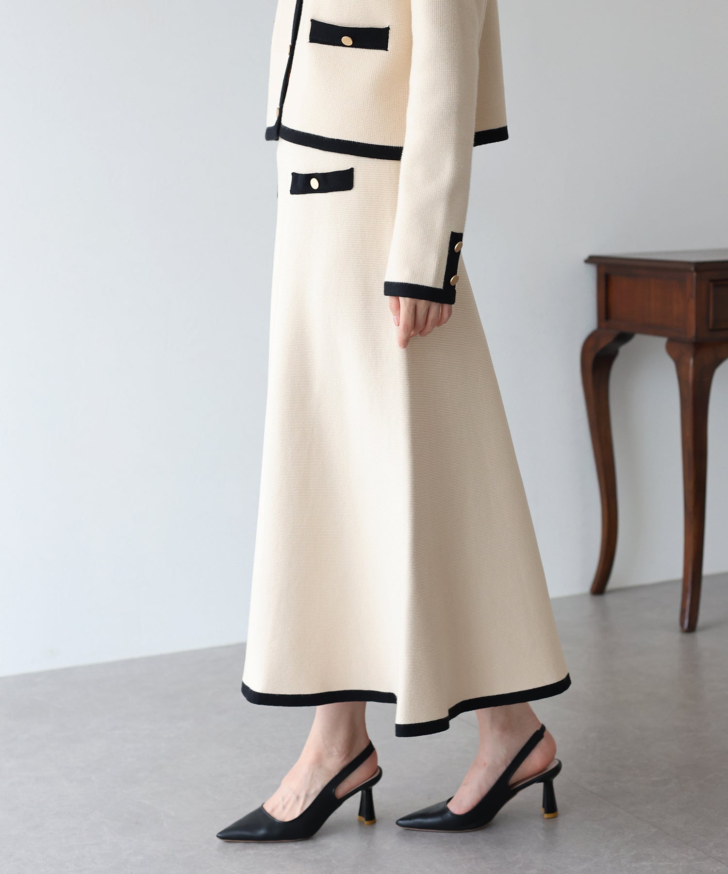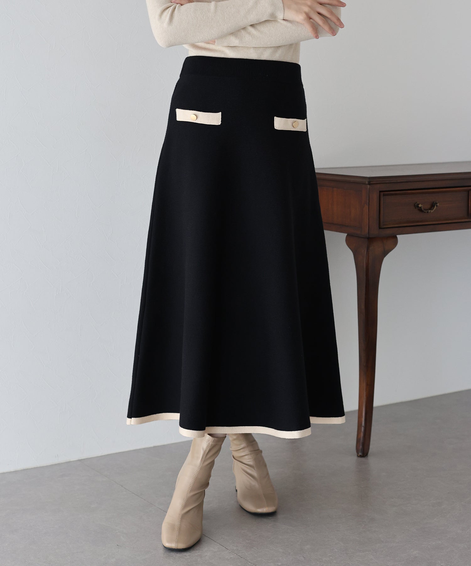 【早割5%OFF】金ボタンバイカラーニットスカート