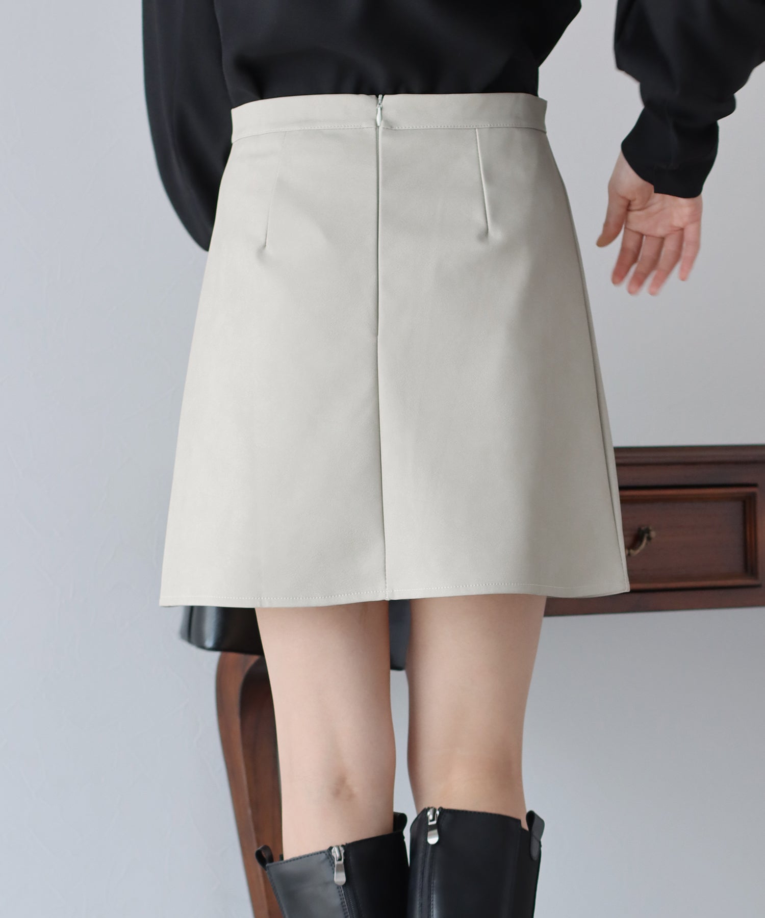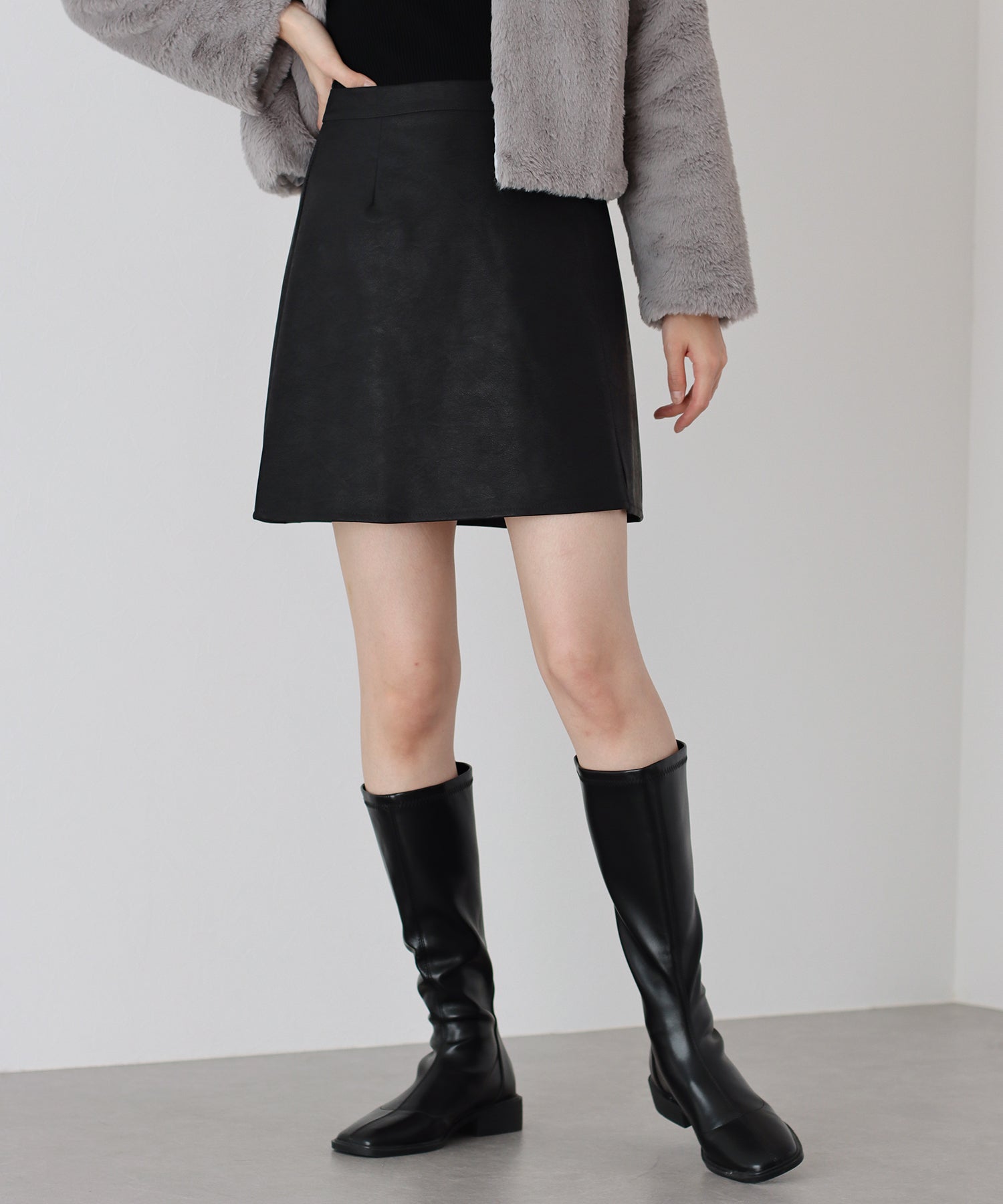 大人な印象をプラスし、腰回りのすっきり見えを叶えてくれるレザーミニスカート