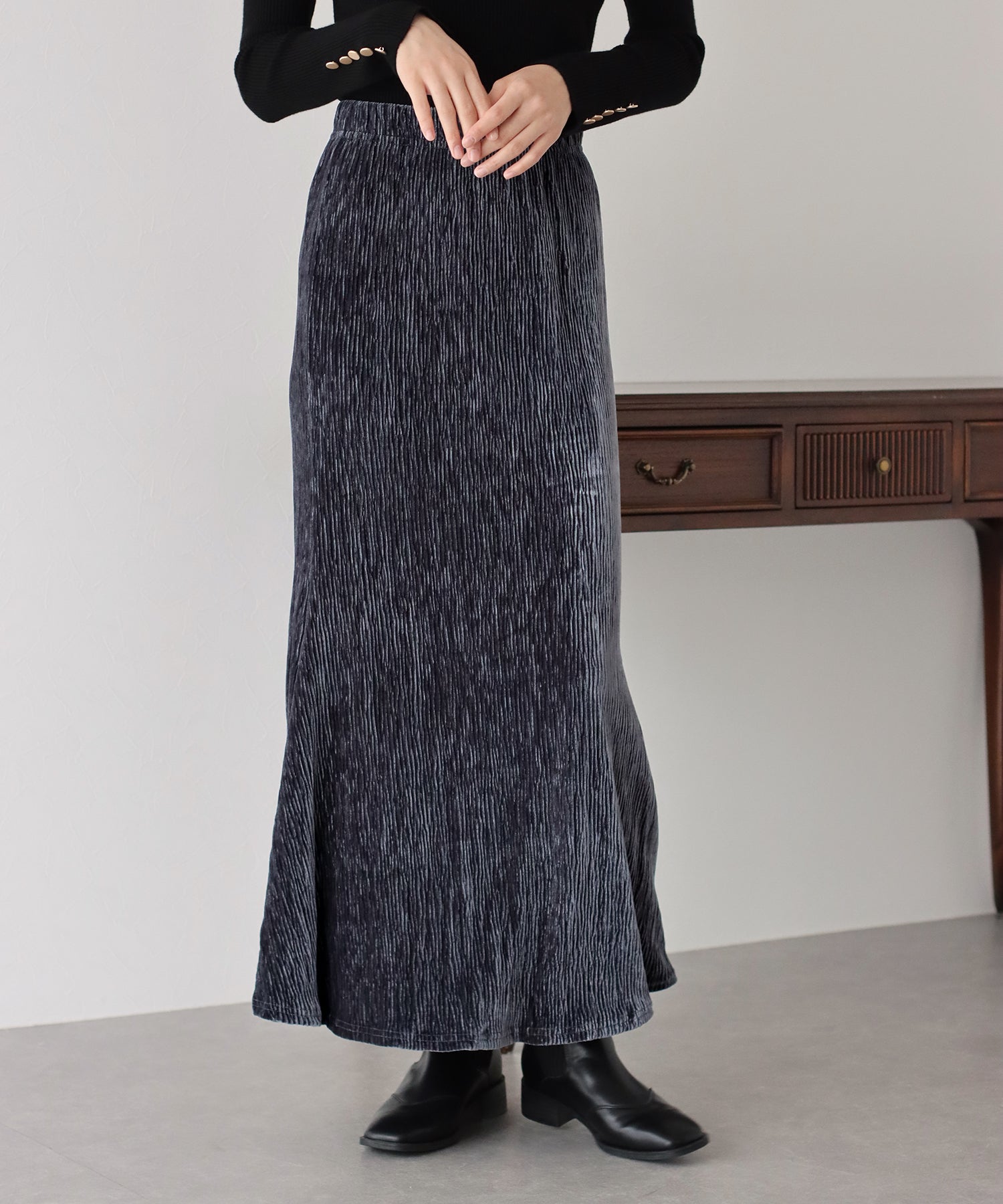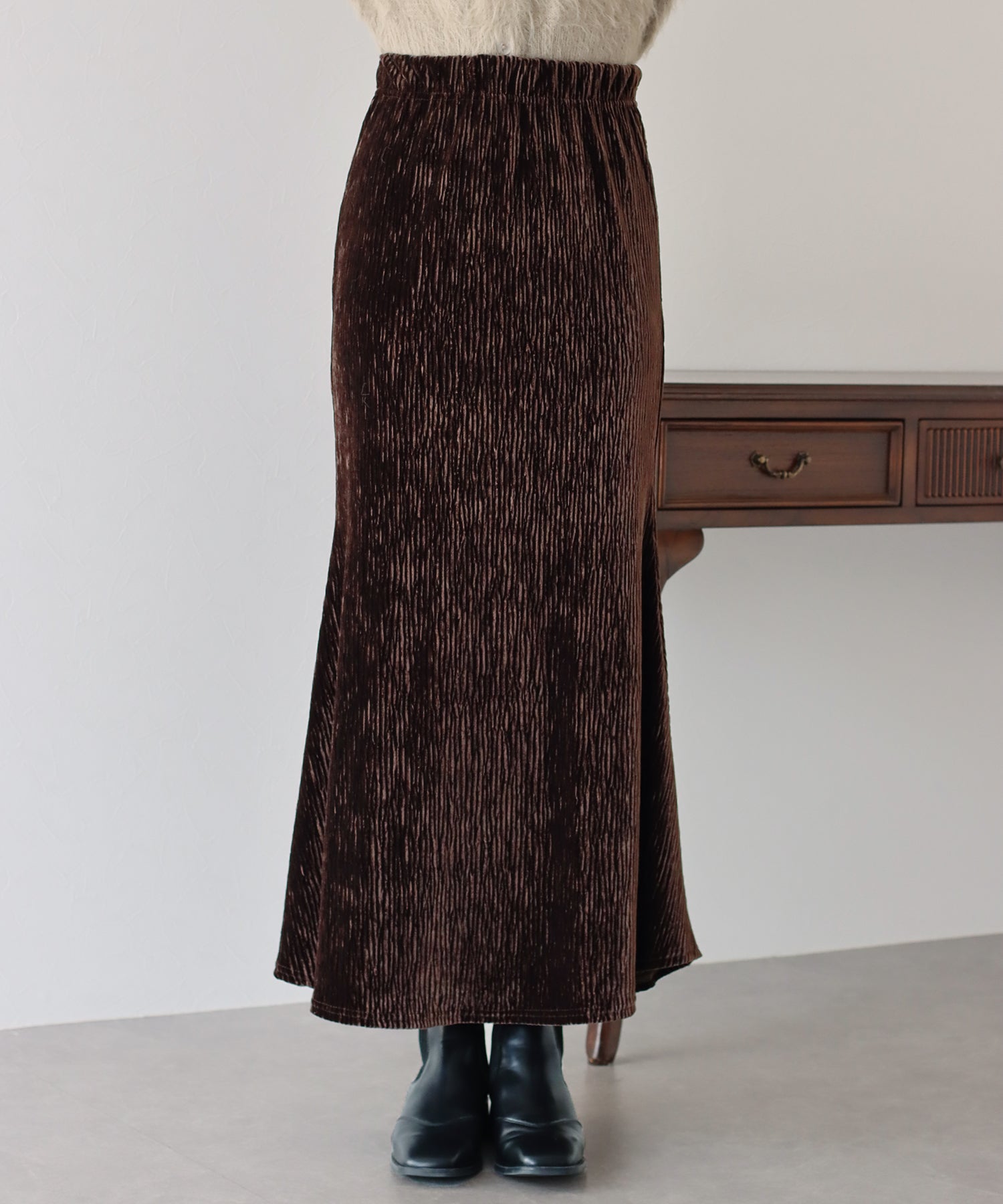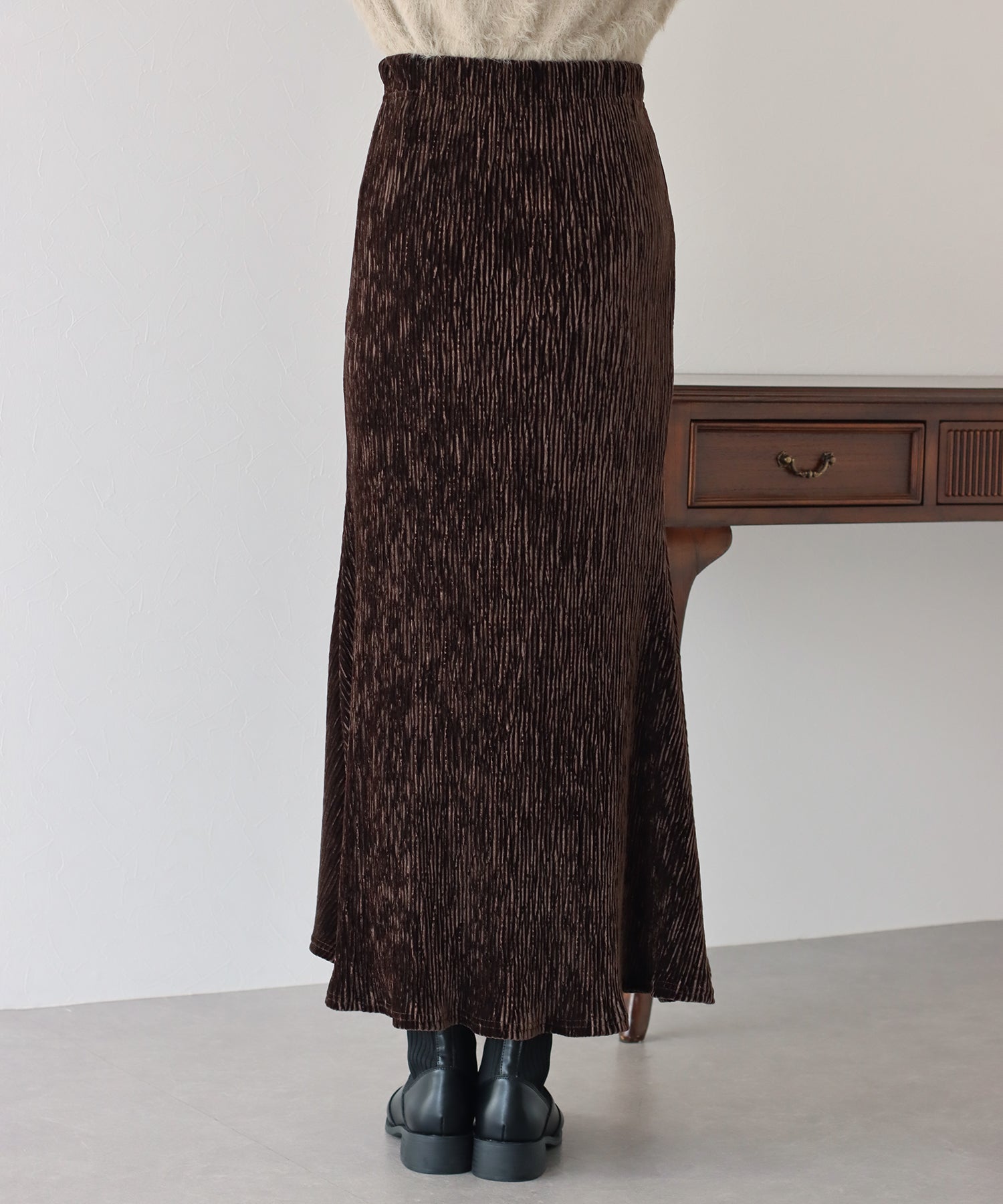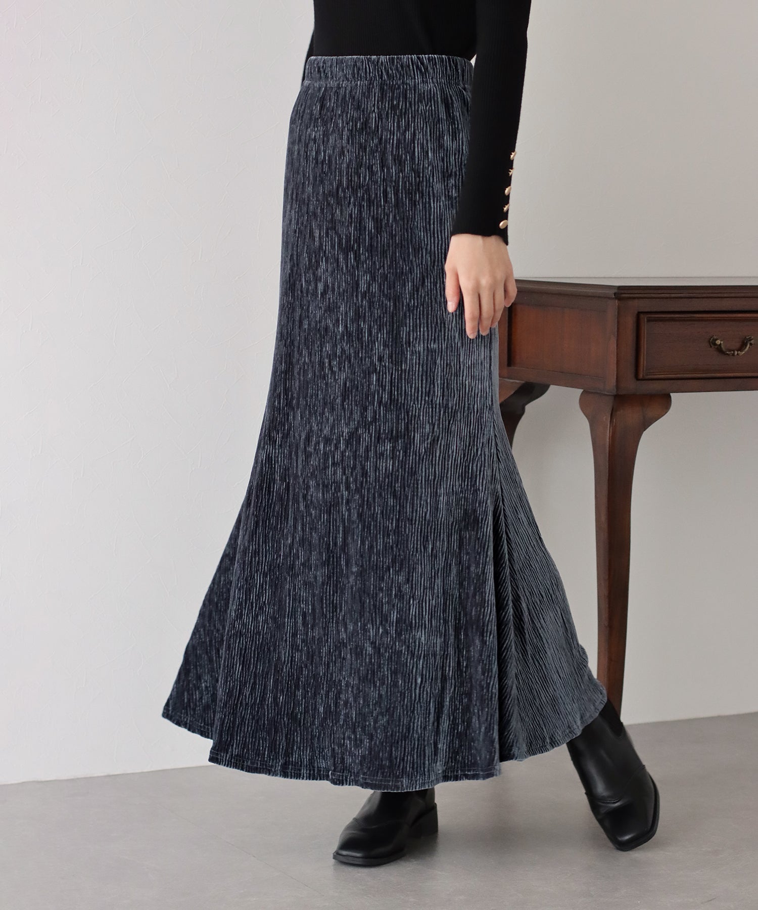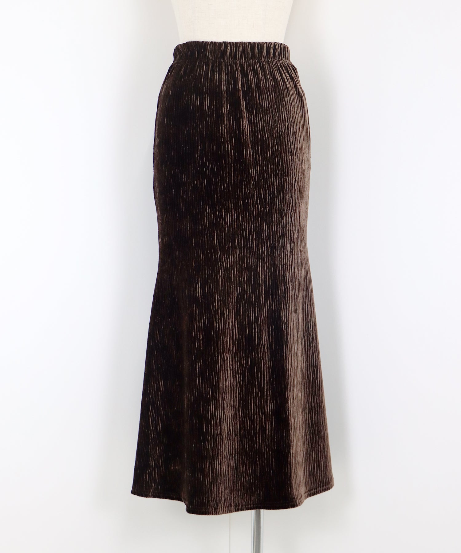 プリーツベロア素材のマーメイドスカート
